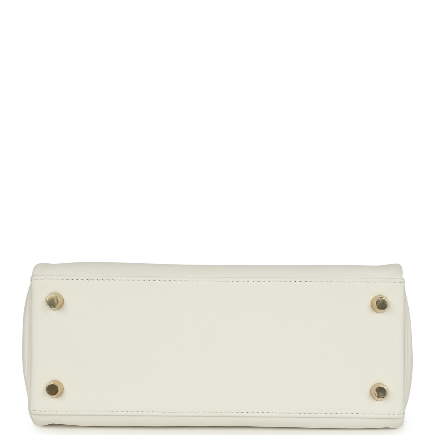 This Kelly. in the Retourne style. is in New White swift leather with gold hardware and has tonal stitching. two straps with front toggle closure. clochette with lock and two keys. single rolled handle and removable shoulder strap.