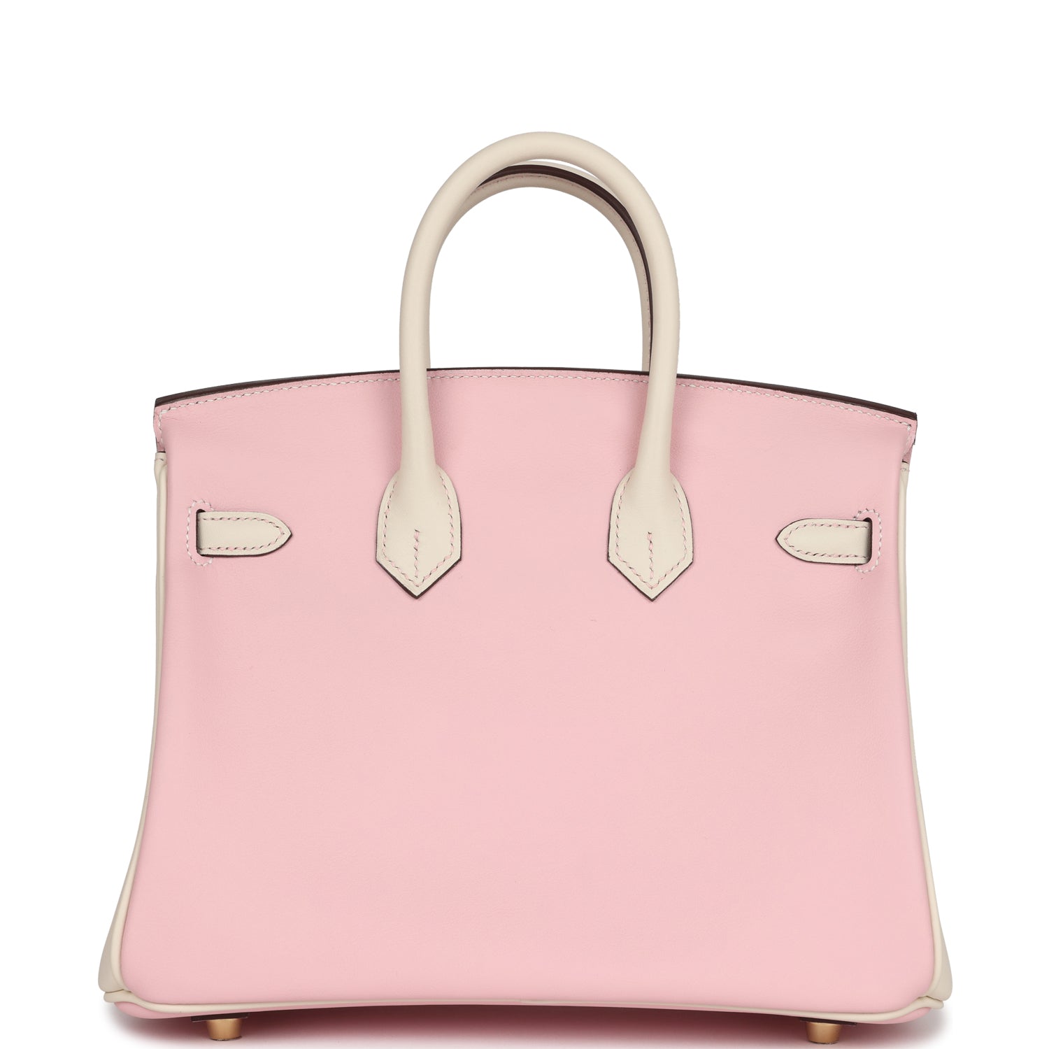 This Special Order Birkin is in Rose Sakura and Nata swift leather with permabrass hardware. has contrast pink and white stitching. front flap. two straps with center toggle closure. clochette with lock and two keys. and double rolled handles.