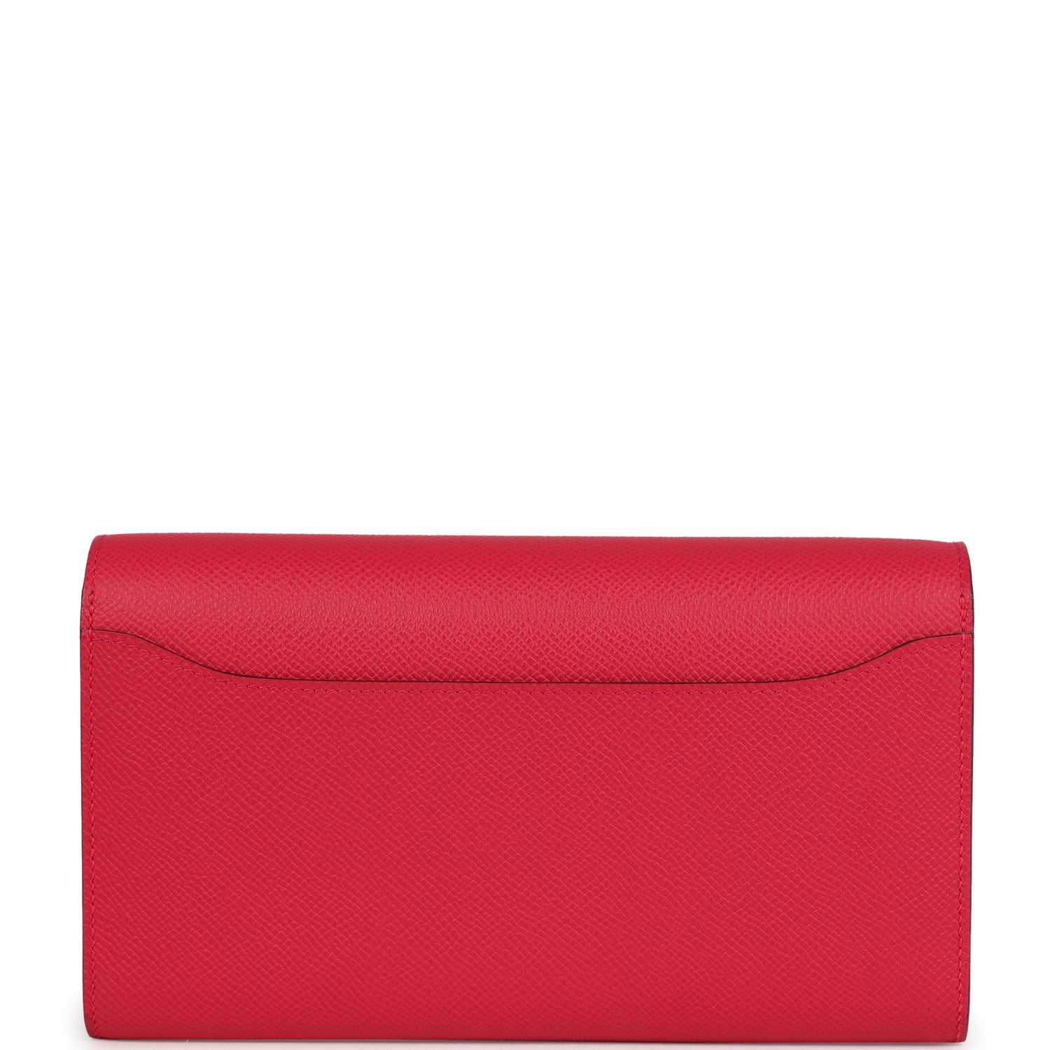 This Constance Wallet To Go is in Rose Extreme epsom leather with palladium and Rose Pourpre Shiny Alligator. Etru Shiny Alligator and Ombre Lizard hardware and has tonal stitching. metal "H" snap lock closure. open front compartment and removable crossbody strap.