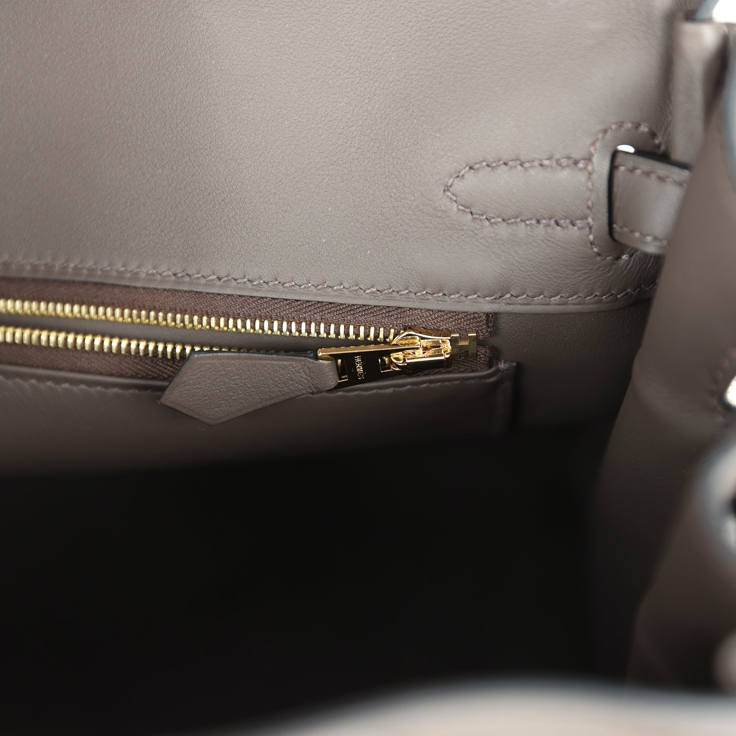 The interior is lined with Ecorce swift and has a zip pocket with an Hermes engraved zipper pull and an open pocket on the opposite side.