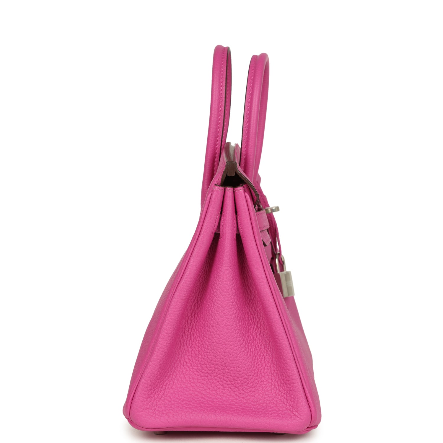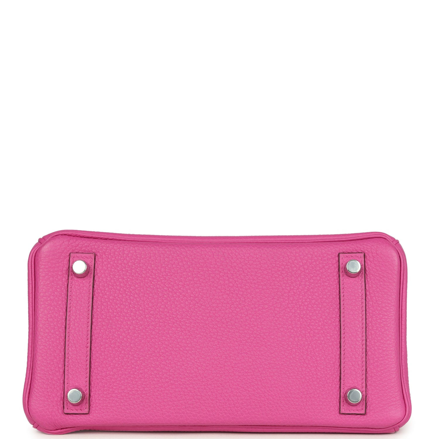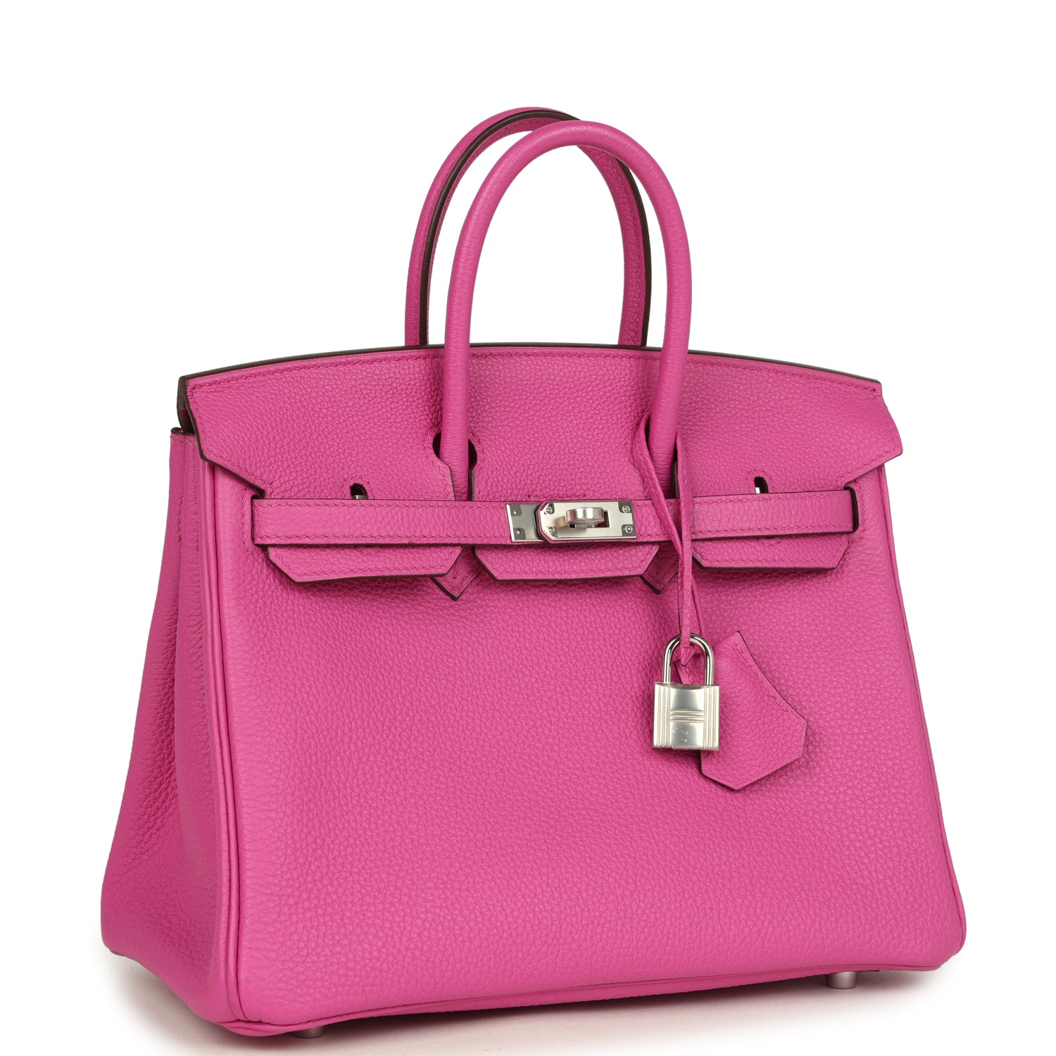 This Birkin is in Magnolia togo leather with Palladium hardware. has tonal stitching. front flap. two straps with center toggle closure. clochette with lock and two keys. and double rolled handles.