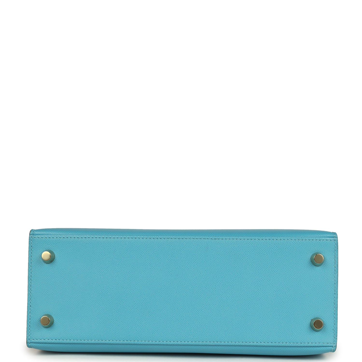 This Kelly. in the Sellier style. is in Bleu Du Nord Madame leather with gold hardware and has tonal stitching. front flap. two straps with center toggle closure. clochette with lock and two keys a single rolled handle and removable shoulder strap.
