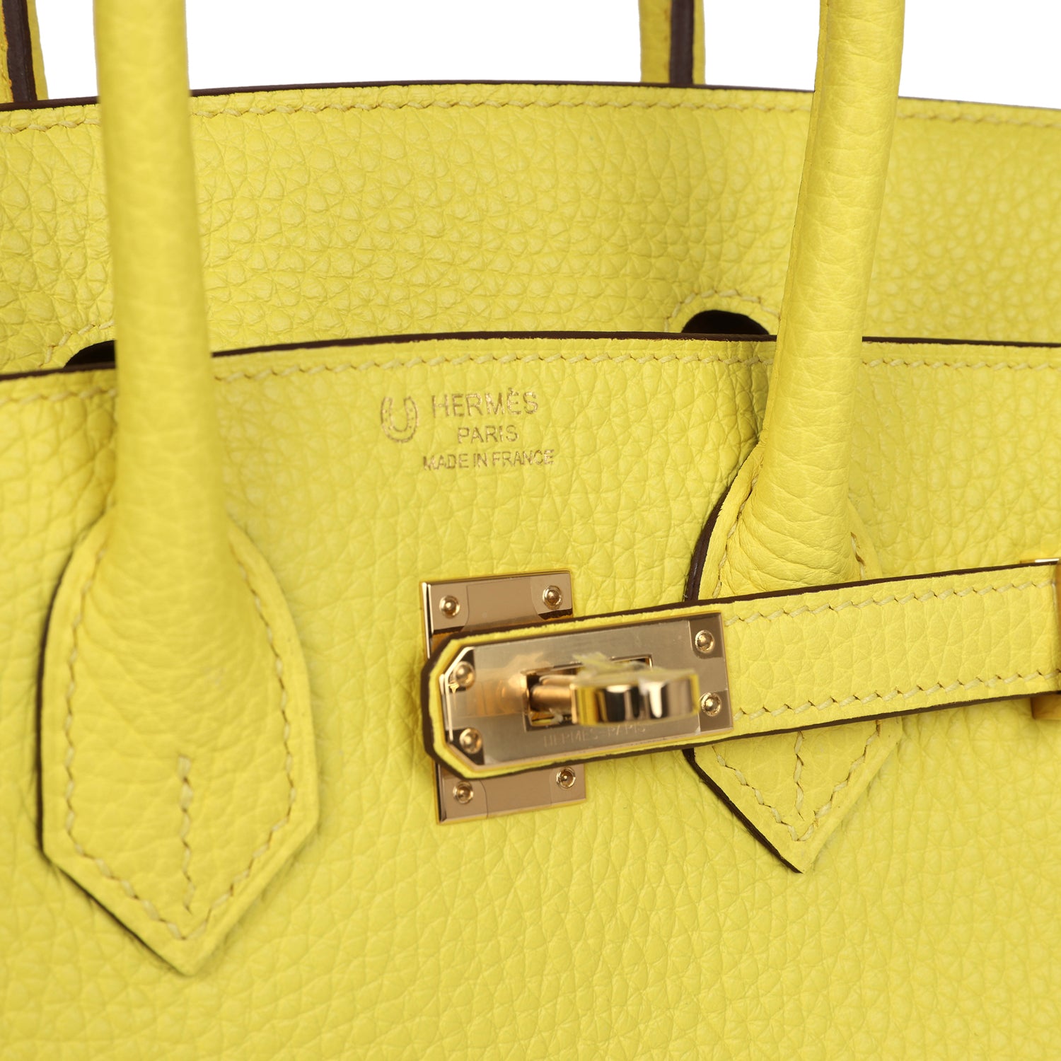 This Special Order Birkin is in Lime clemence leather with permabrass hardware and has tonal stitching. front flap. two straps with center toggle closure. clochette with lock and two keys. and double rolled handles.