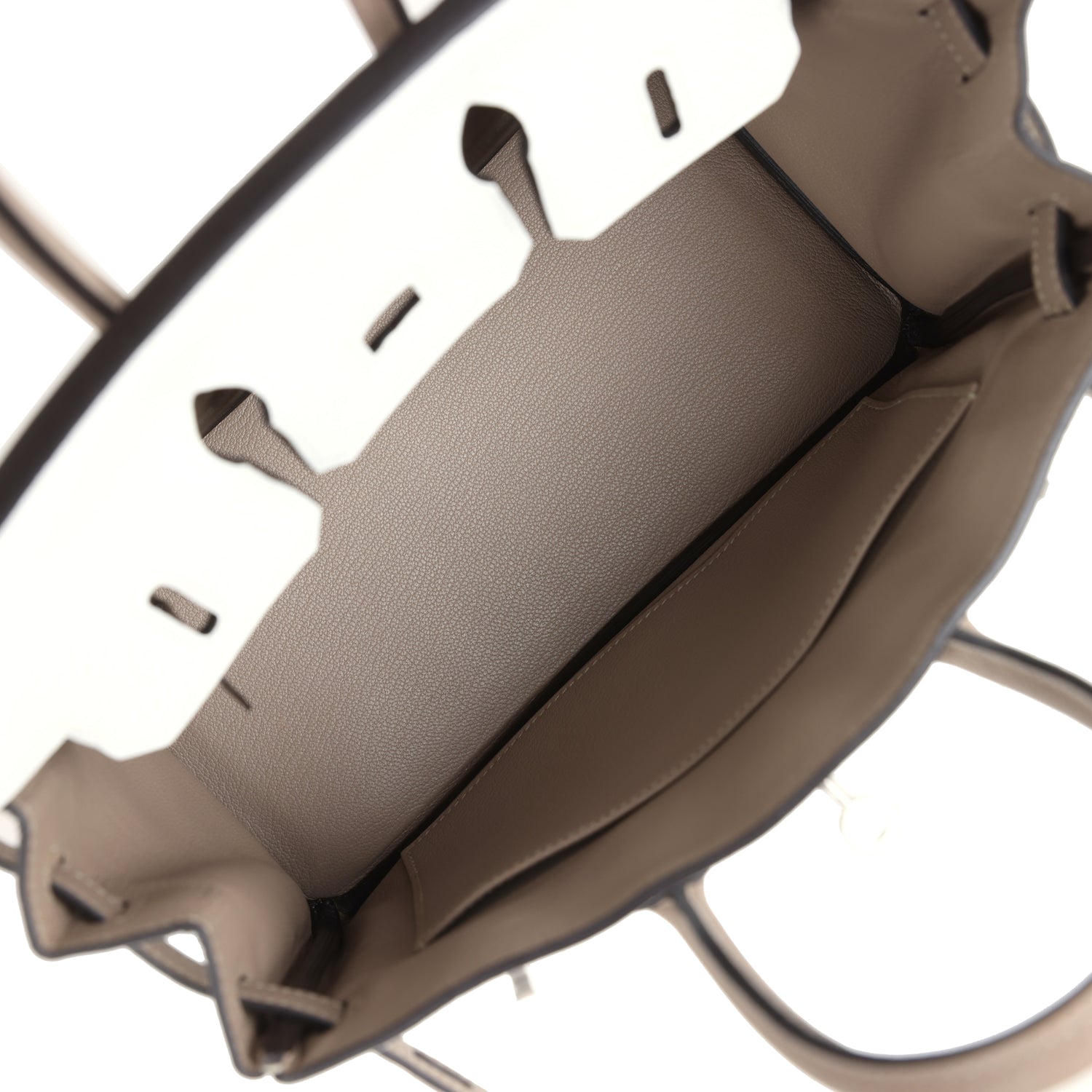 Hermes Special Order (HSS) Birkin 25 White and Etoupe Clemence Brushed Palladium Hardware