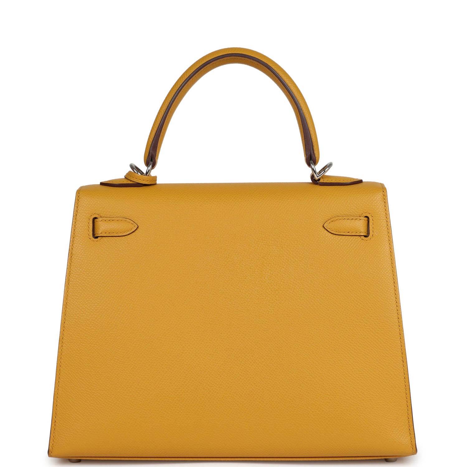 • Pre-owned Hermes Kelly Sellier 25 Jaune Ambre Epsom Palladium Hardware
