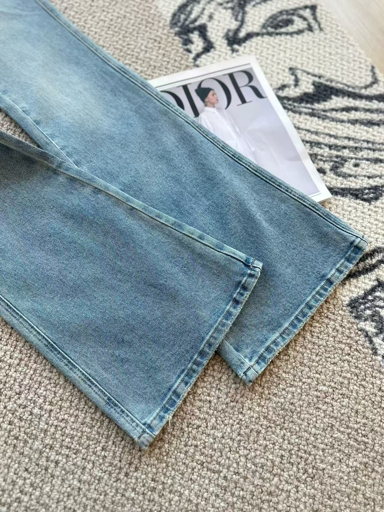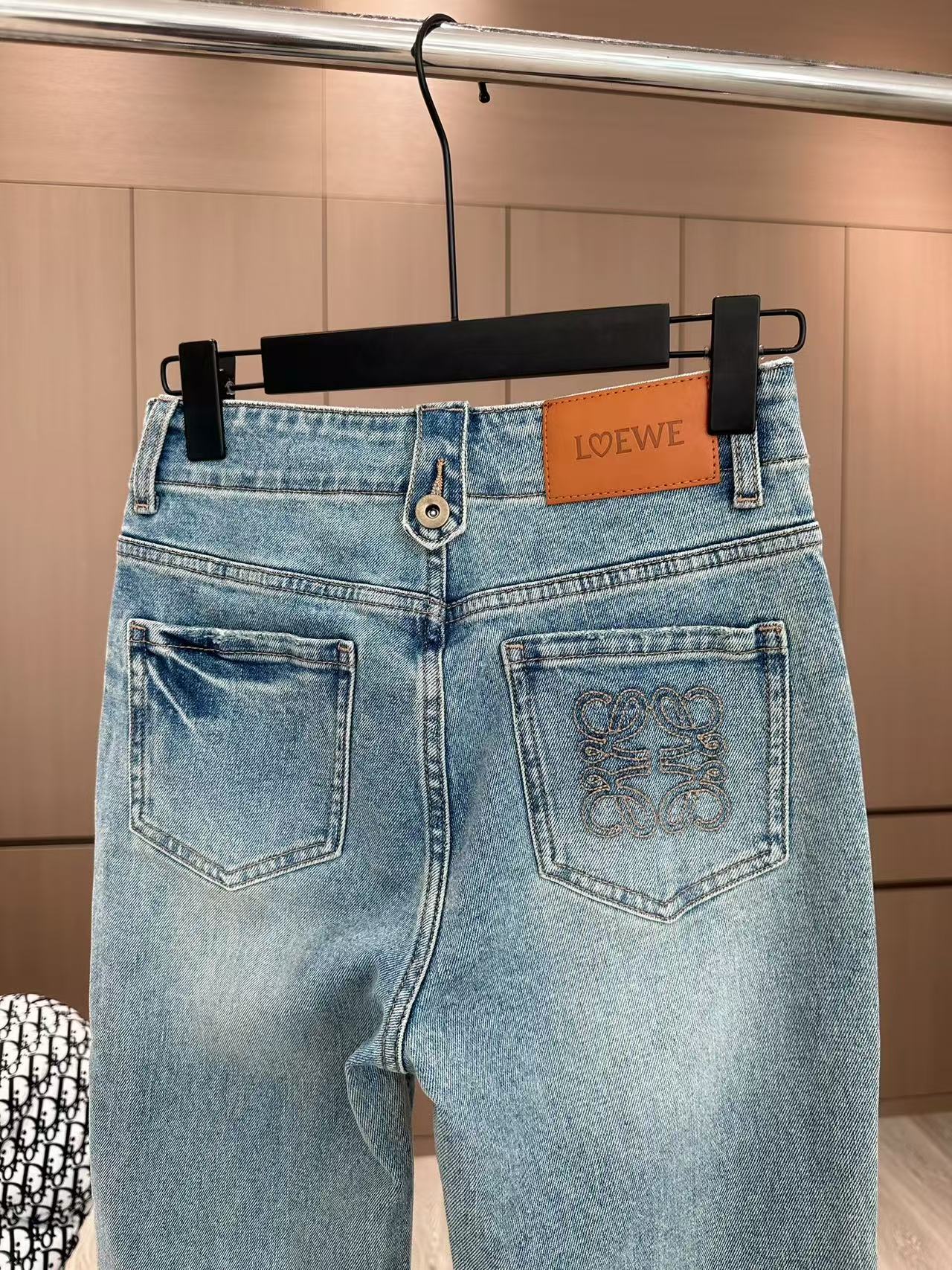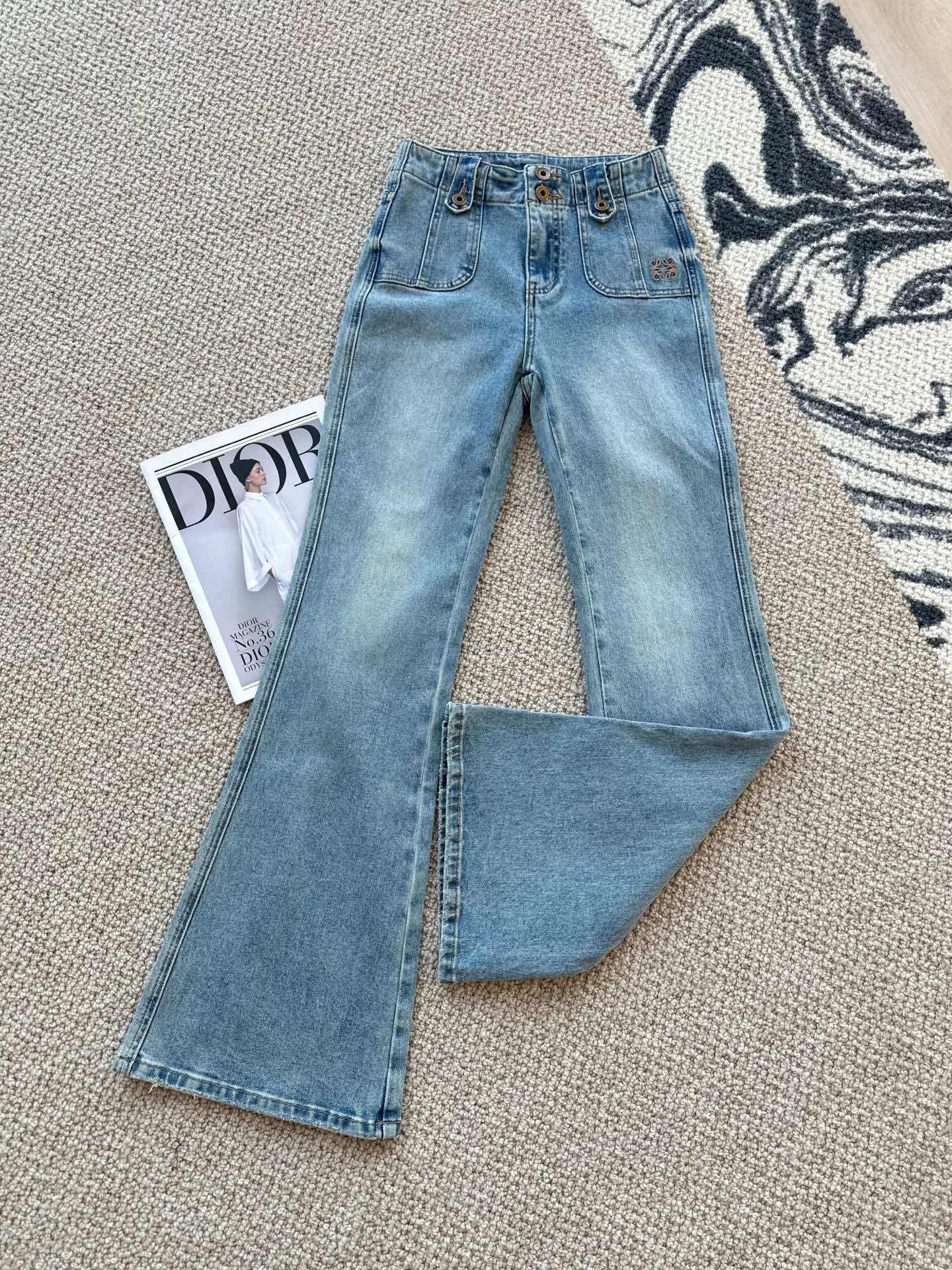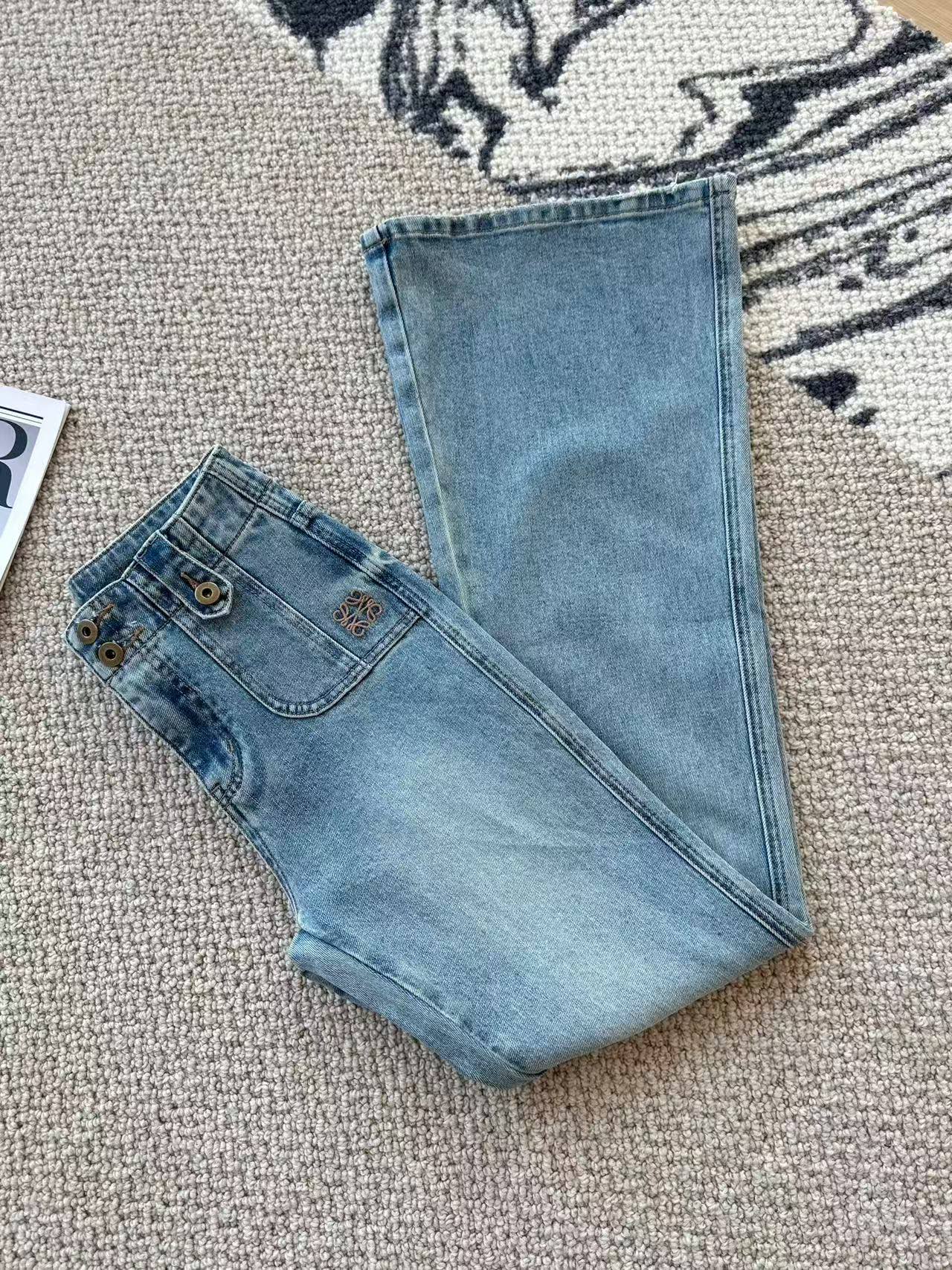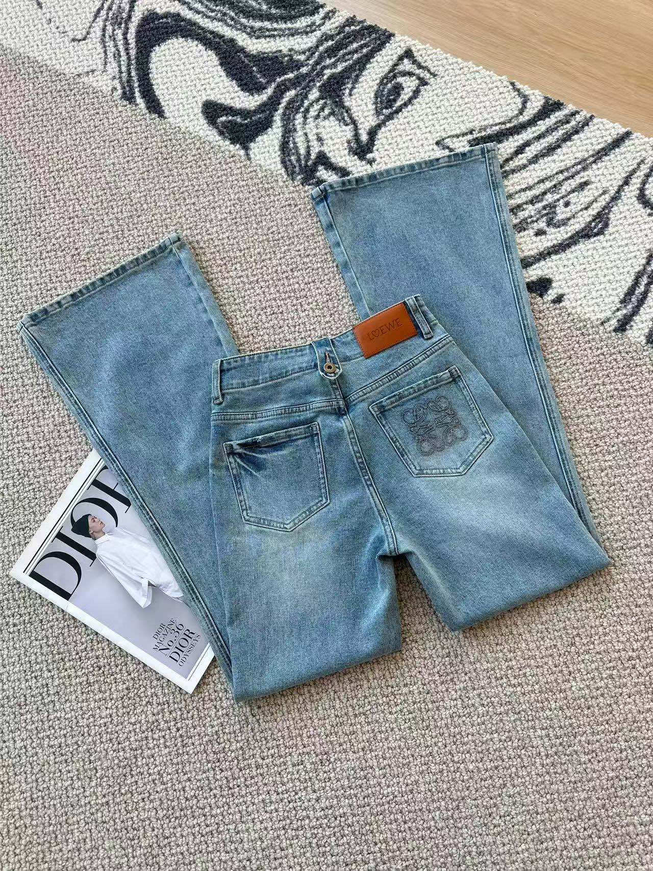 Loewe Embroidered Flared Jeans Blue Cotton