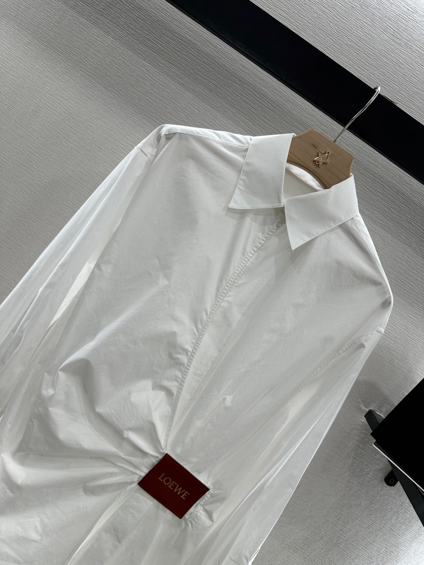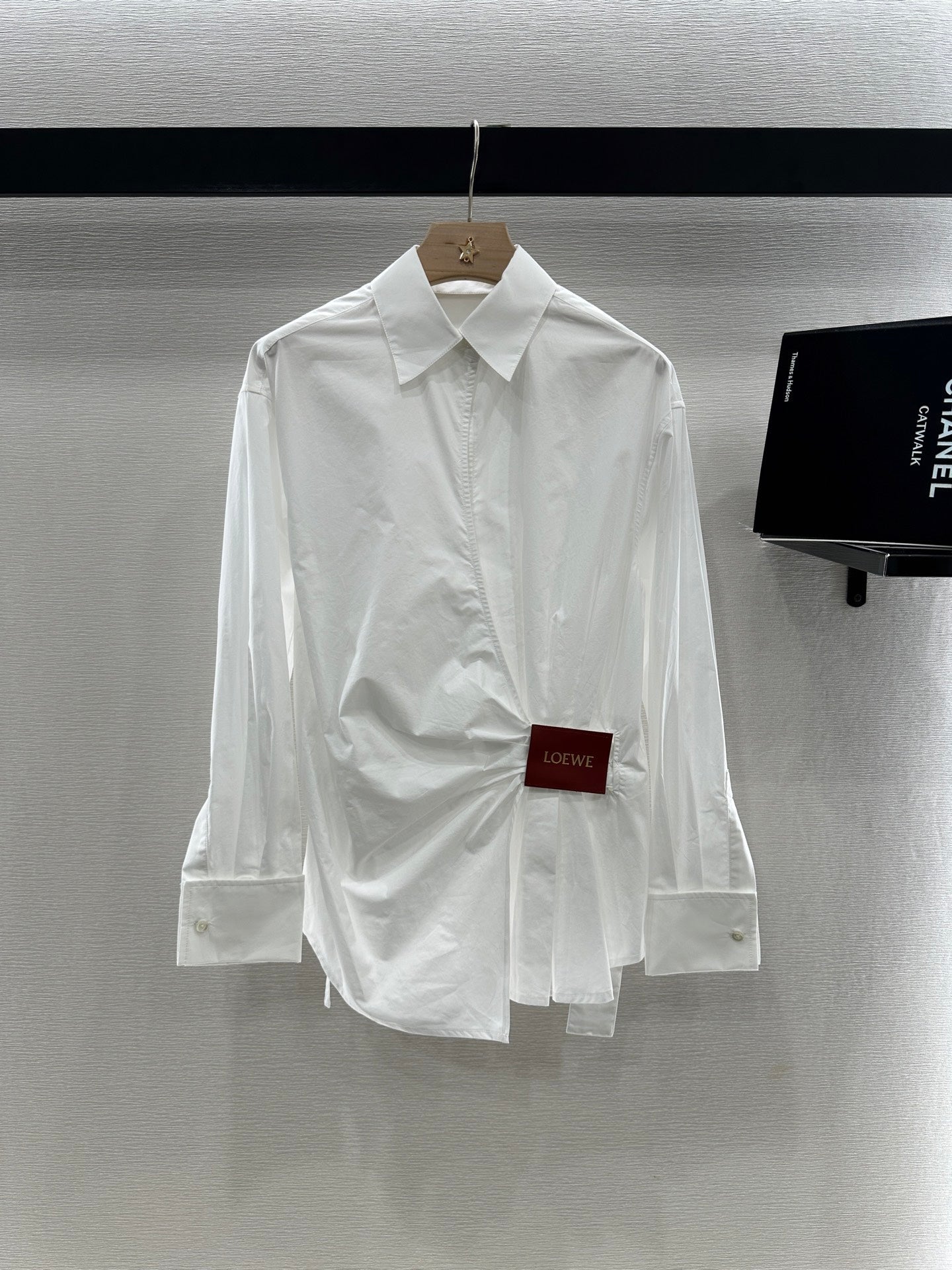 LOEWE WHITE LONG SLEEVE SHIRT WITH PLEATED WAIST