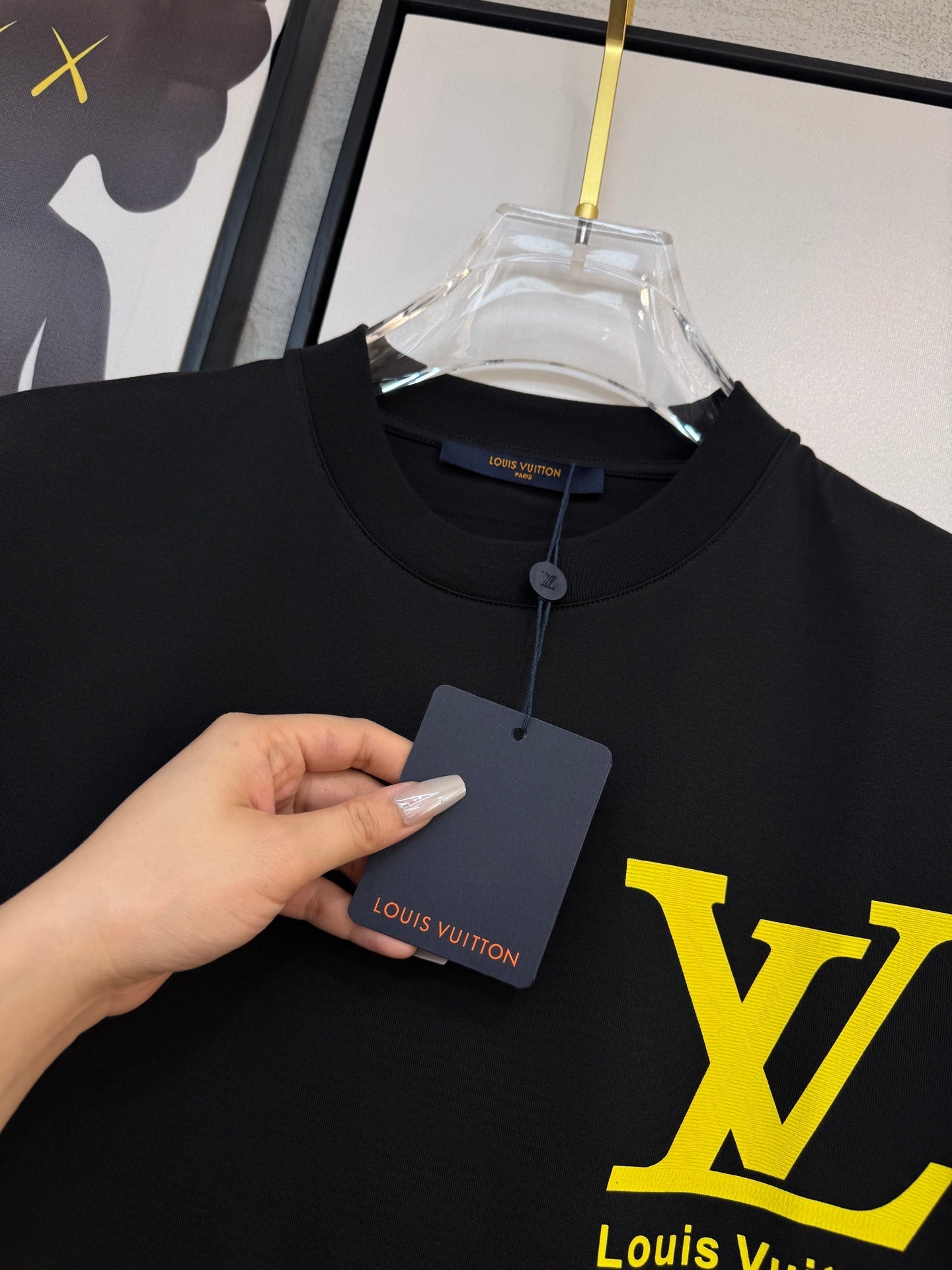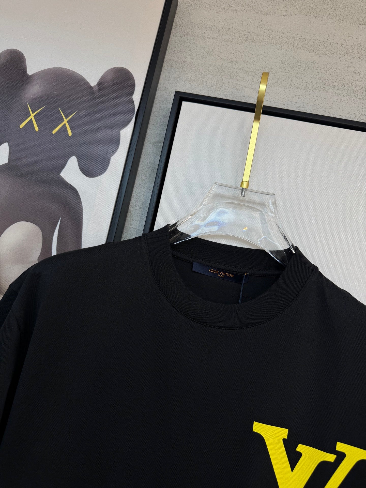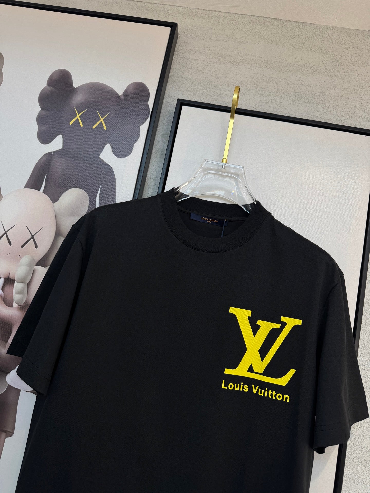 LV BLACK COTTON T-SHIRT YELLOW LOGO 238915