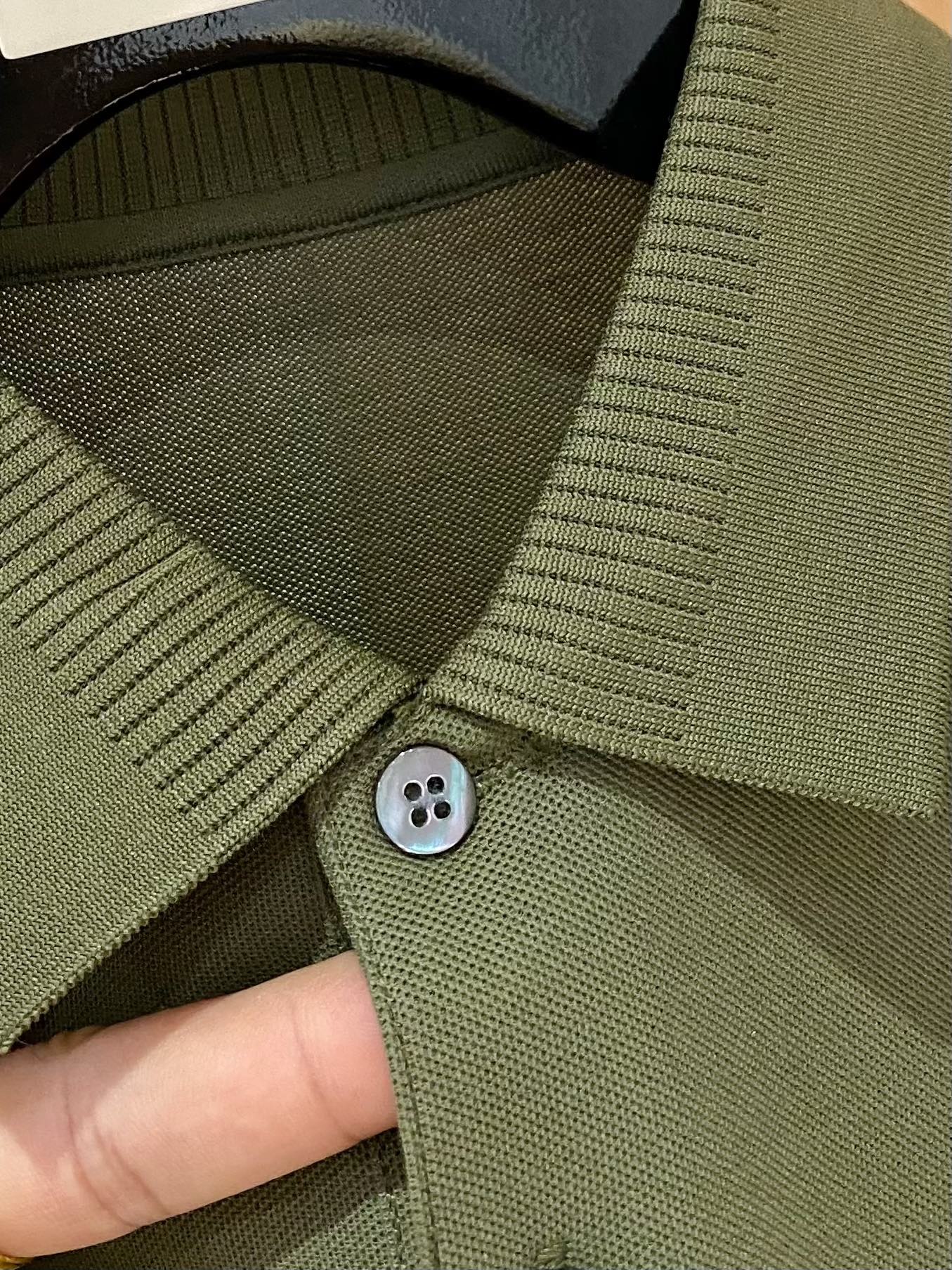 LV POLO SHIRT IN ARMY GREEN MESH BEADED COTTON FABRIC 238855