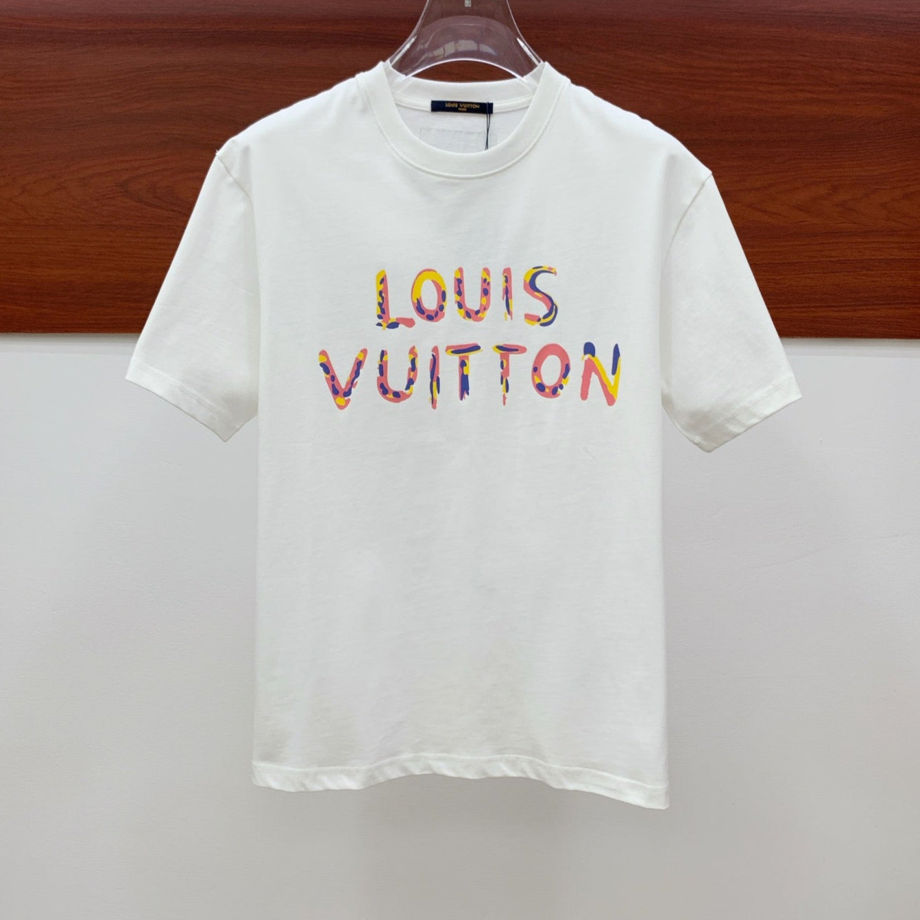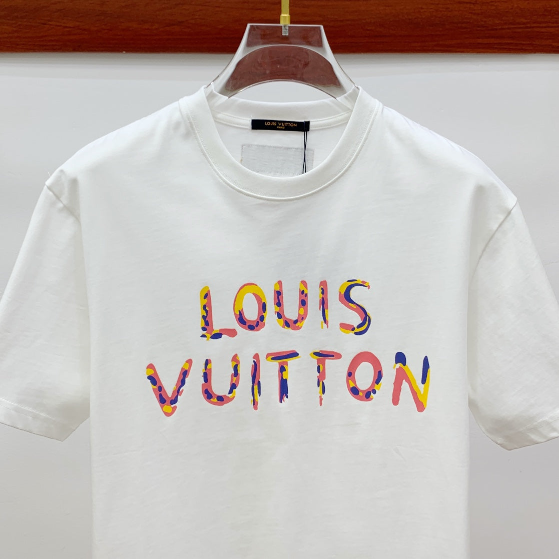 LV T-SHIRT COLORFUL LOGO IN WHITE COTTON 238876