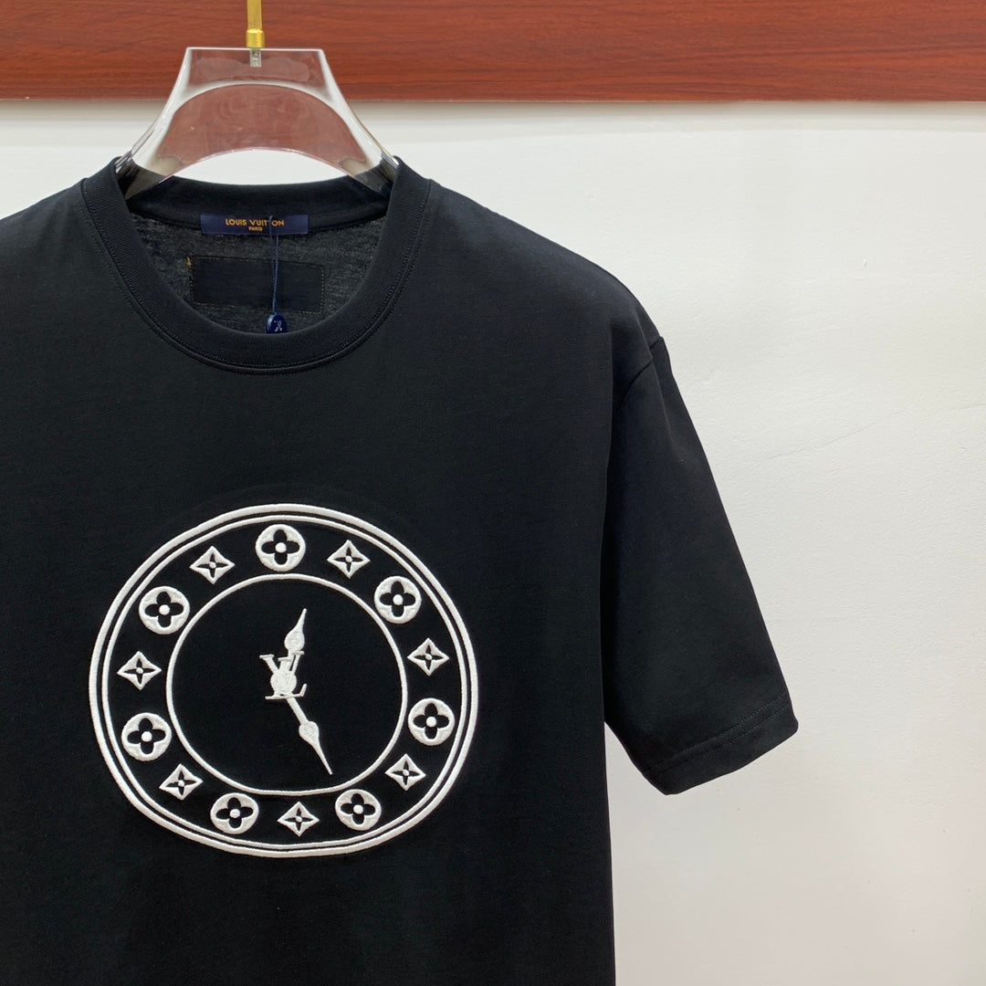 LV T-SHIRT IN BLACK PURE COTTON EMBROIDERED LOGO 238889