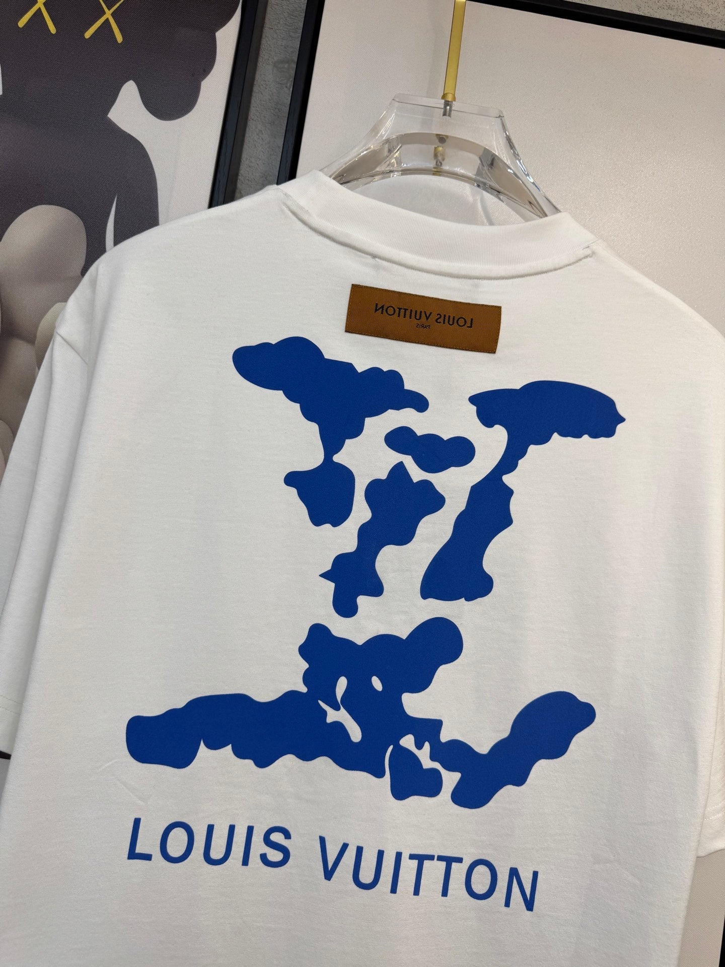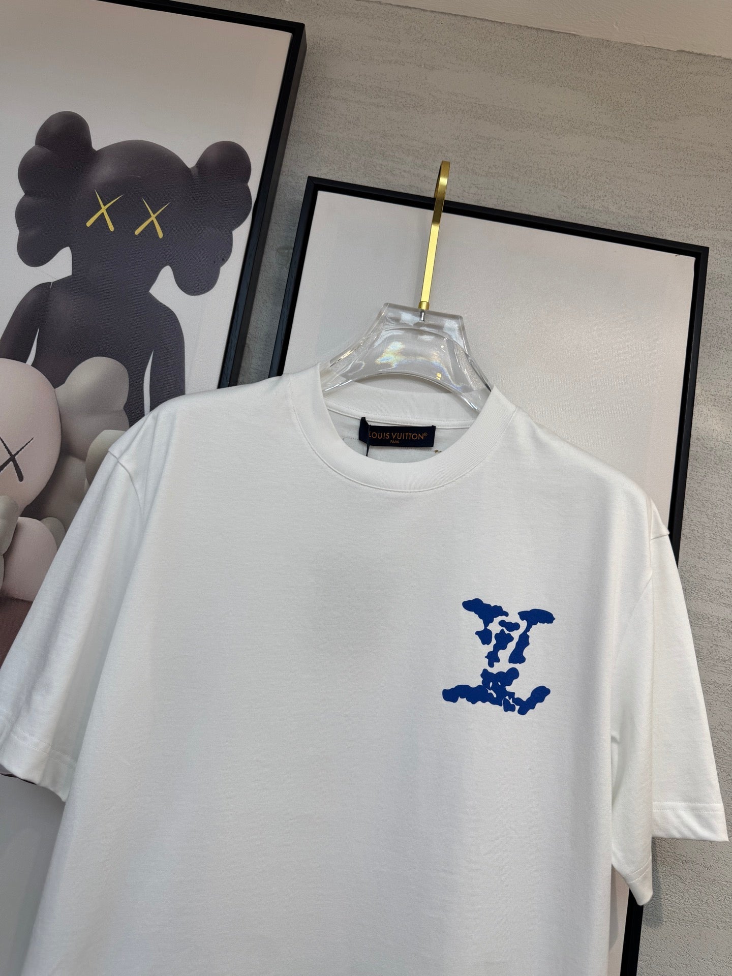 LV WHITE COTTON T-SHIRT BLUE STYLIZED LOGO 238917