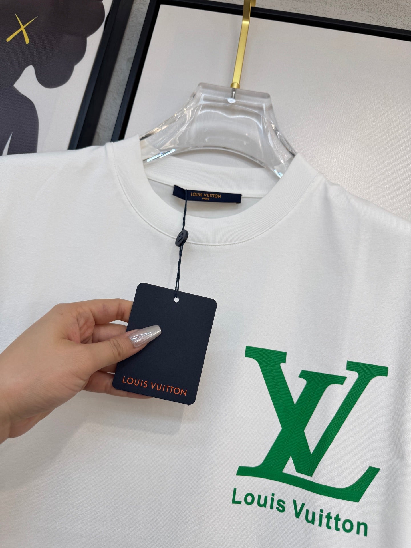 LV WHITE COTTON T-SHIRT GREEN LOGO 238914