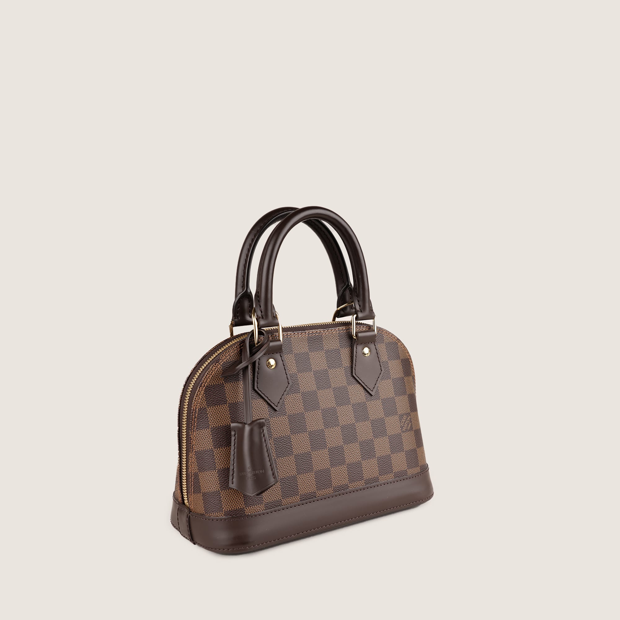 This is an authentic Louis Vuitton Alma BB Top Handle in Damier Ebene Canvas.