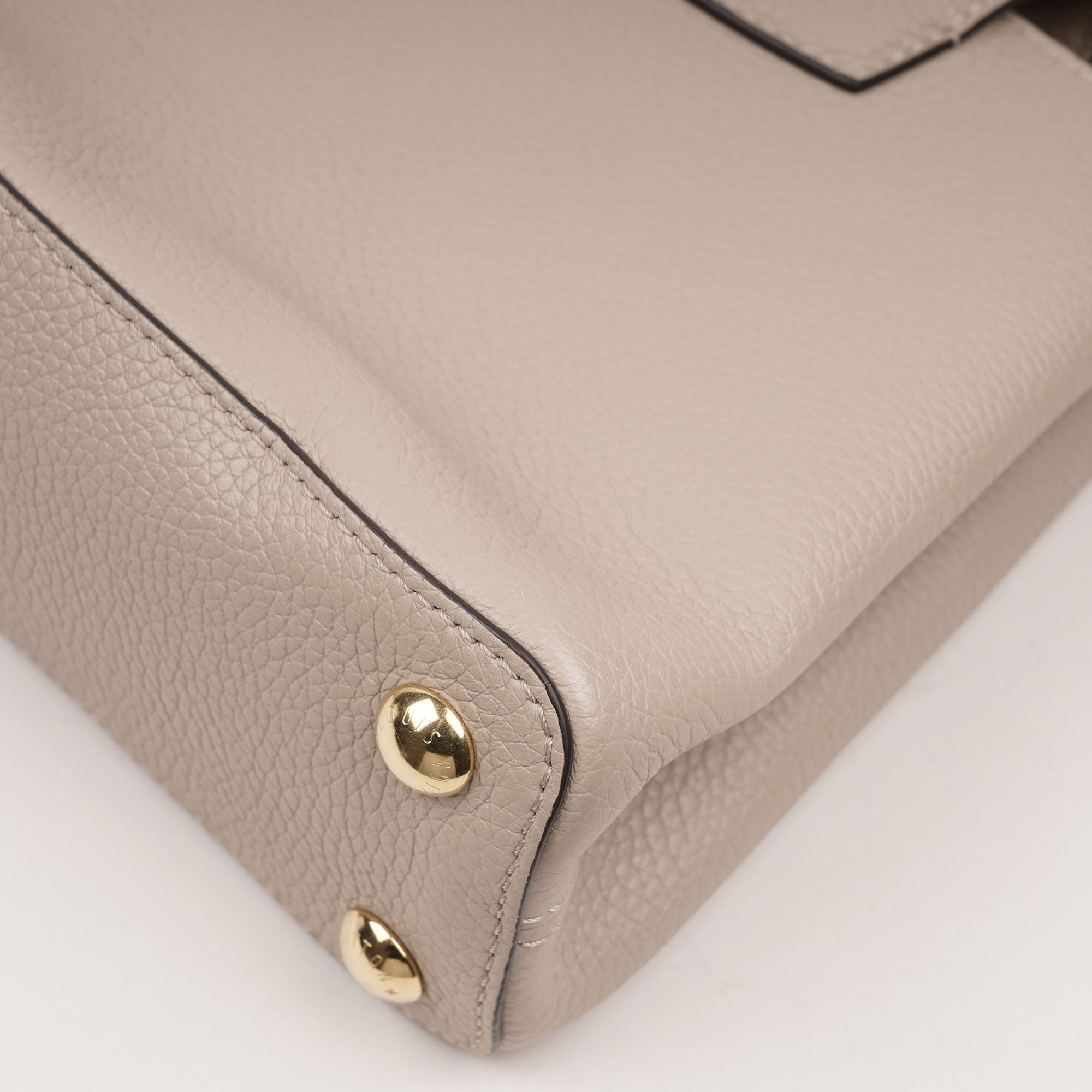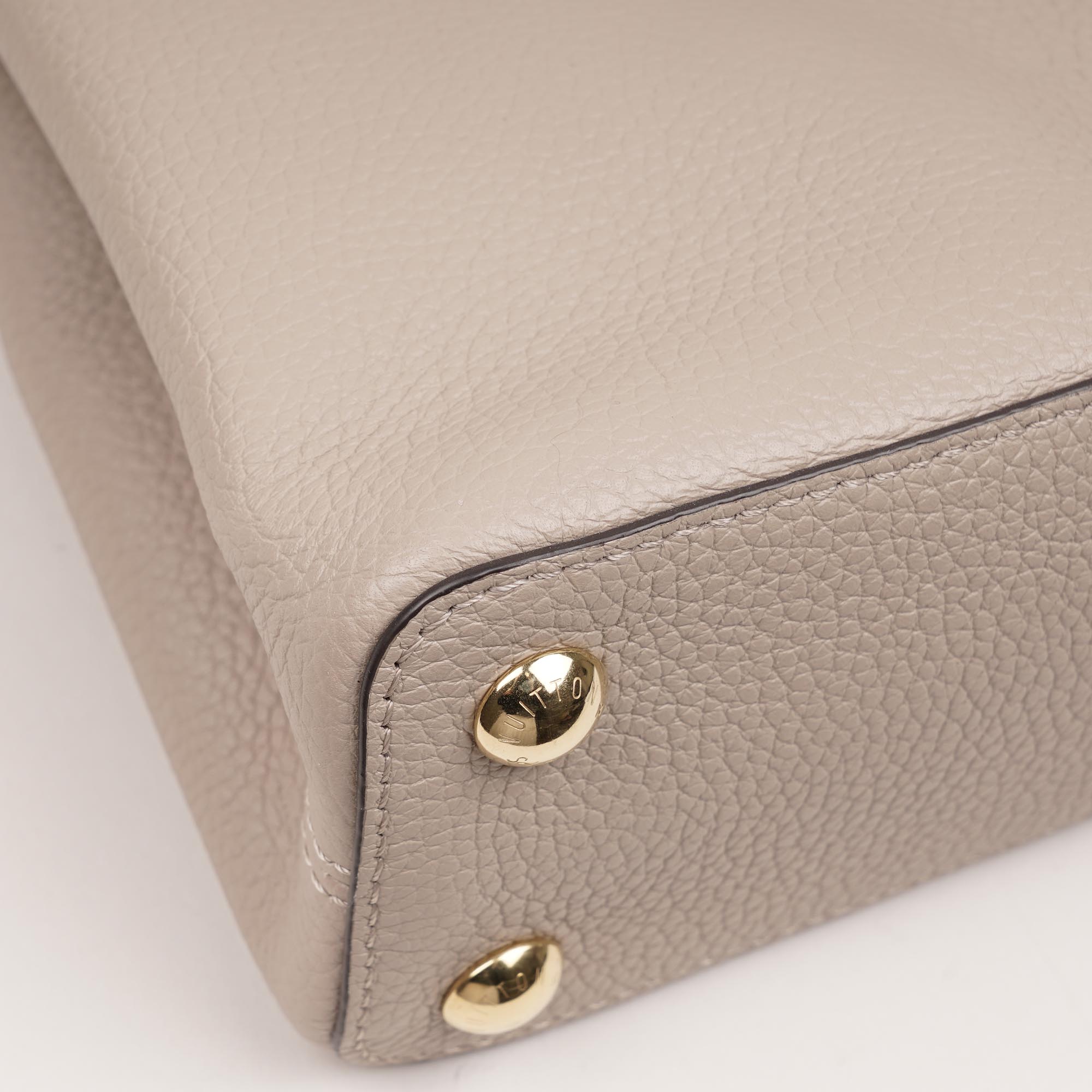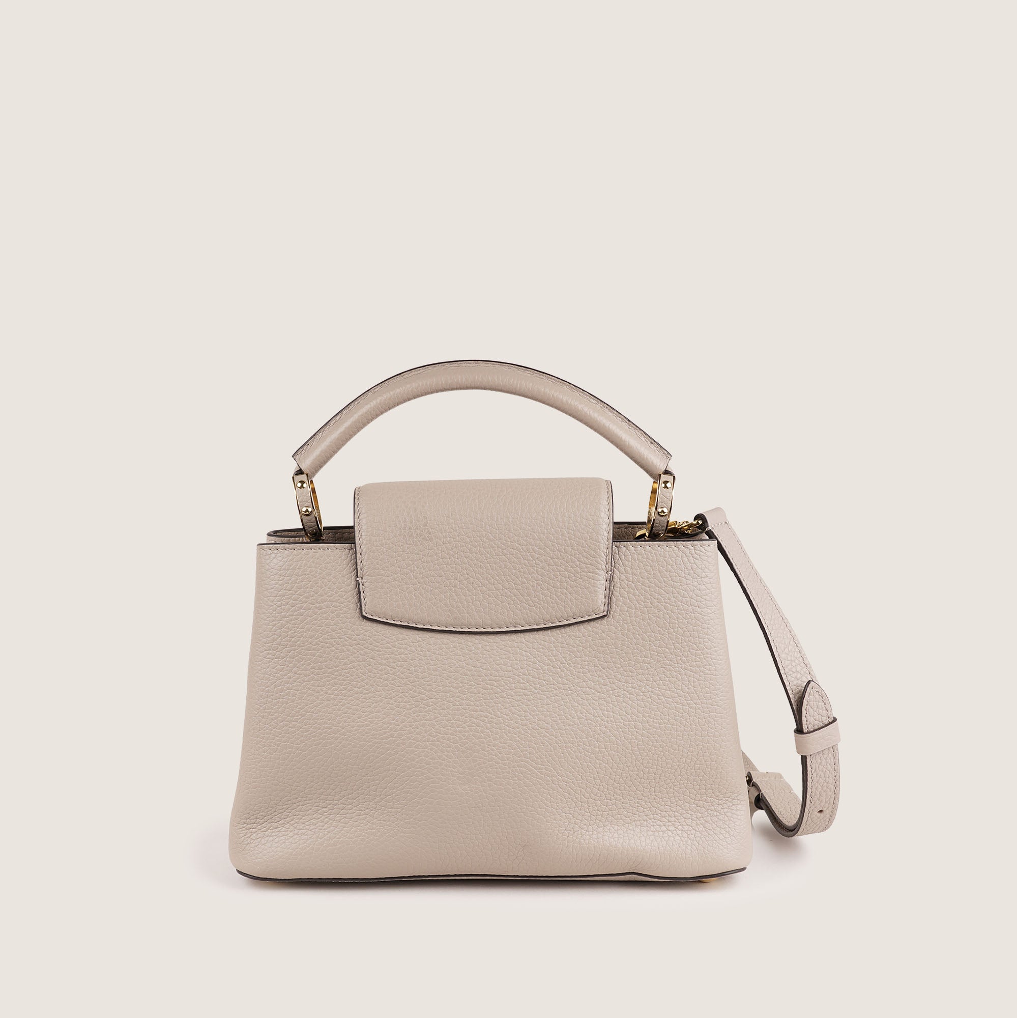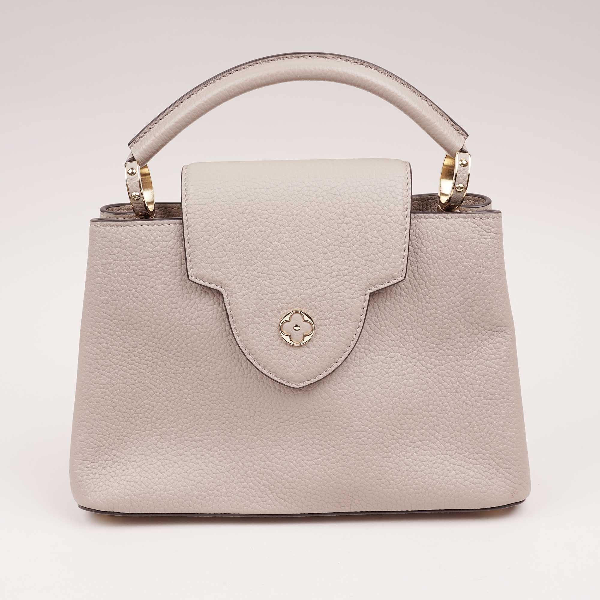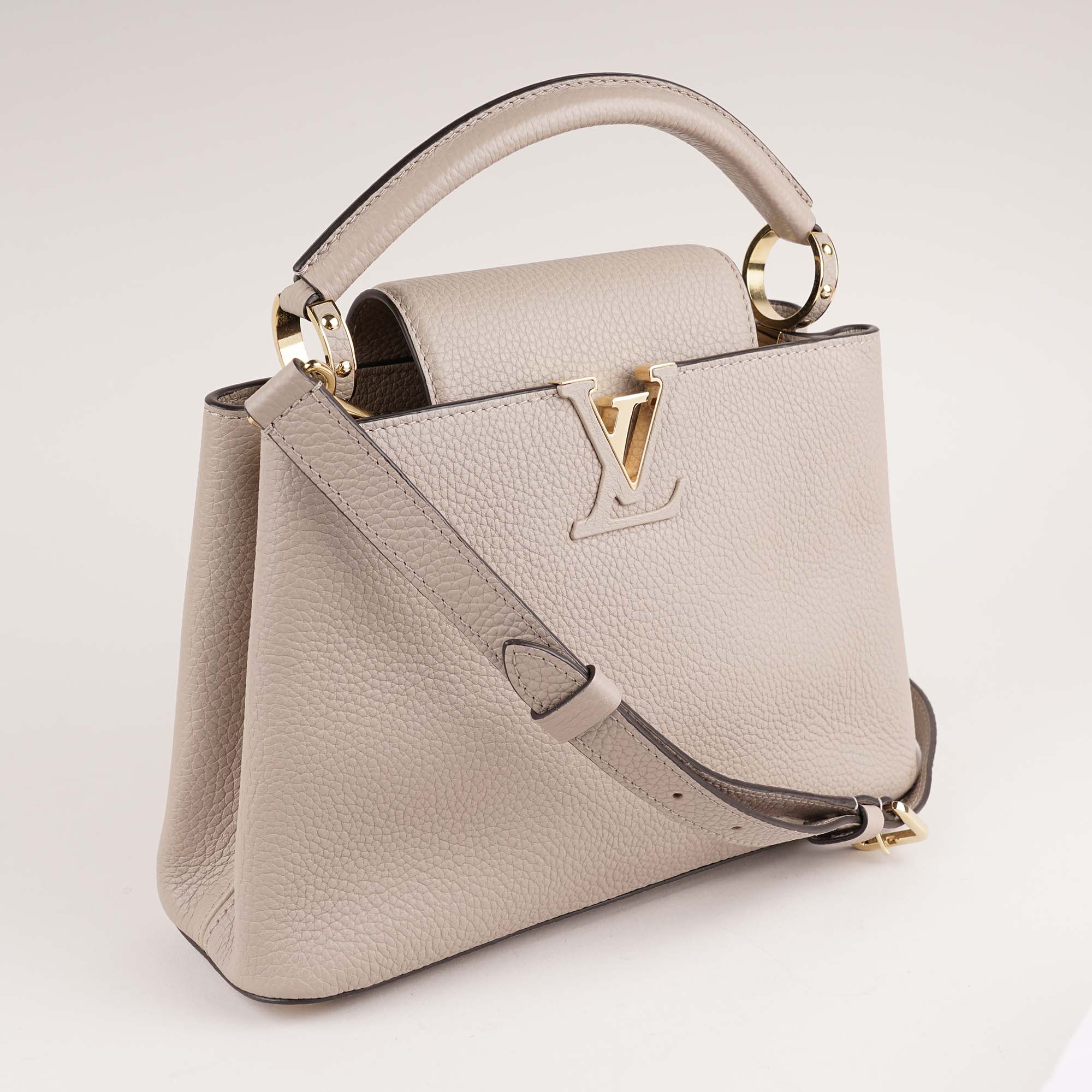 This is an authentic Louis Vuitton Capucines BB Handbag in Galet Taurillon leather.