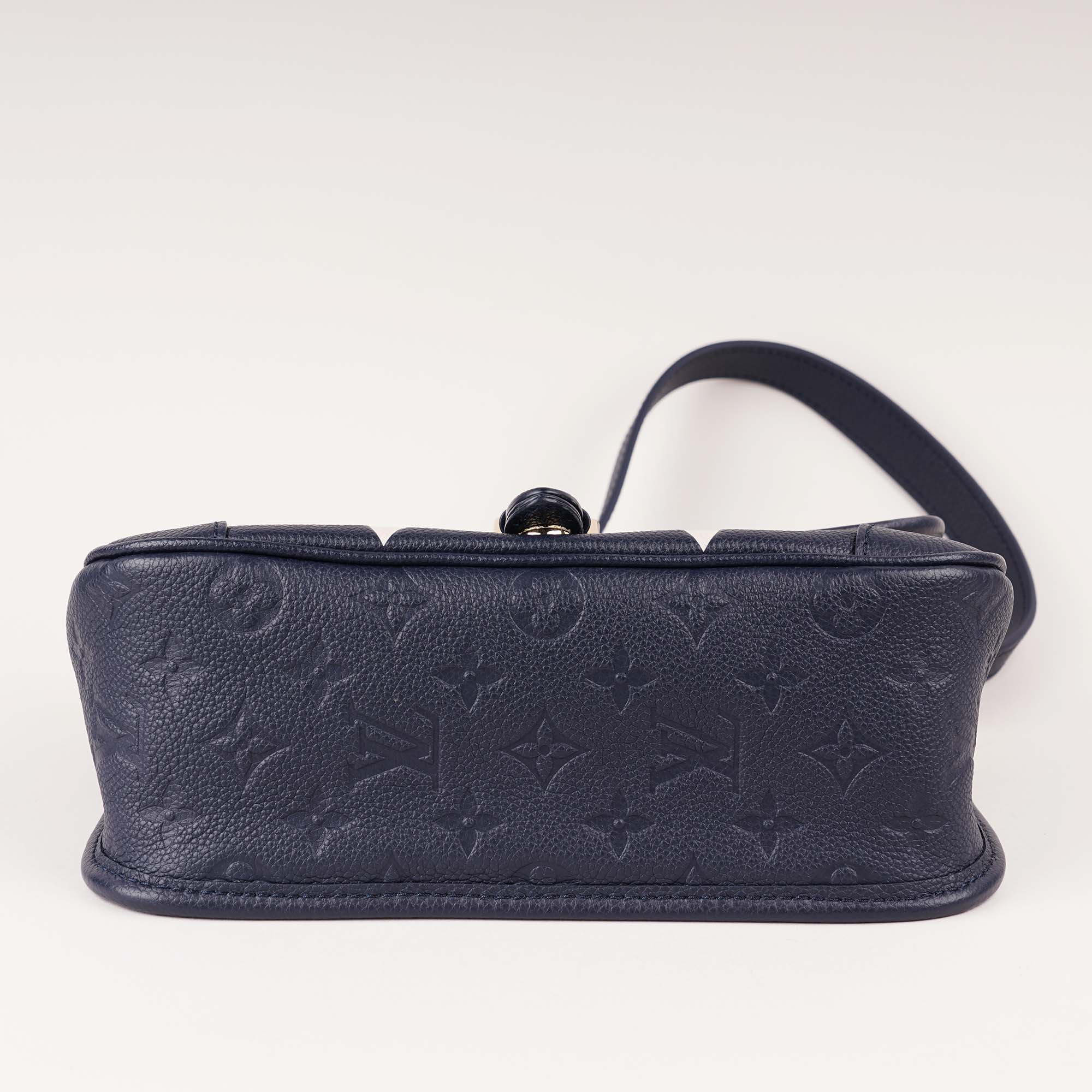 This is an authentic Louis Vuitton Diane Satchel Bag in navy Monogram Empreinte leather with contrasting bicolor details.
