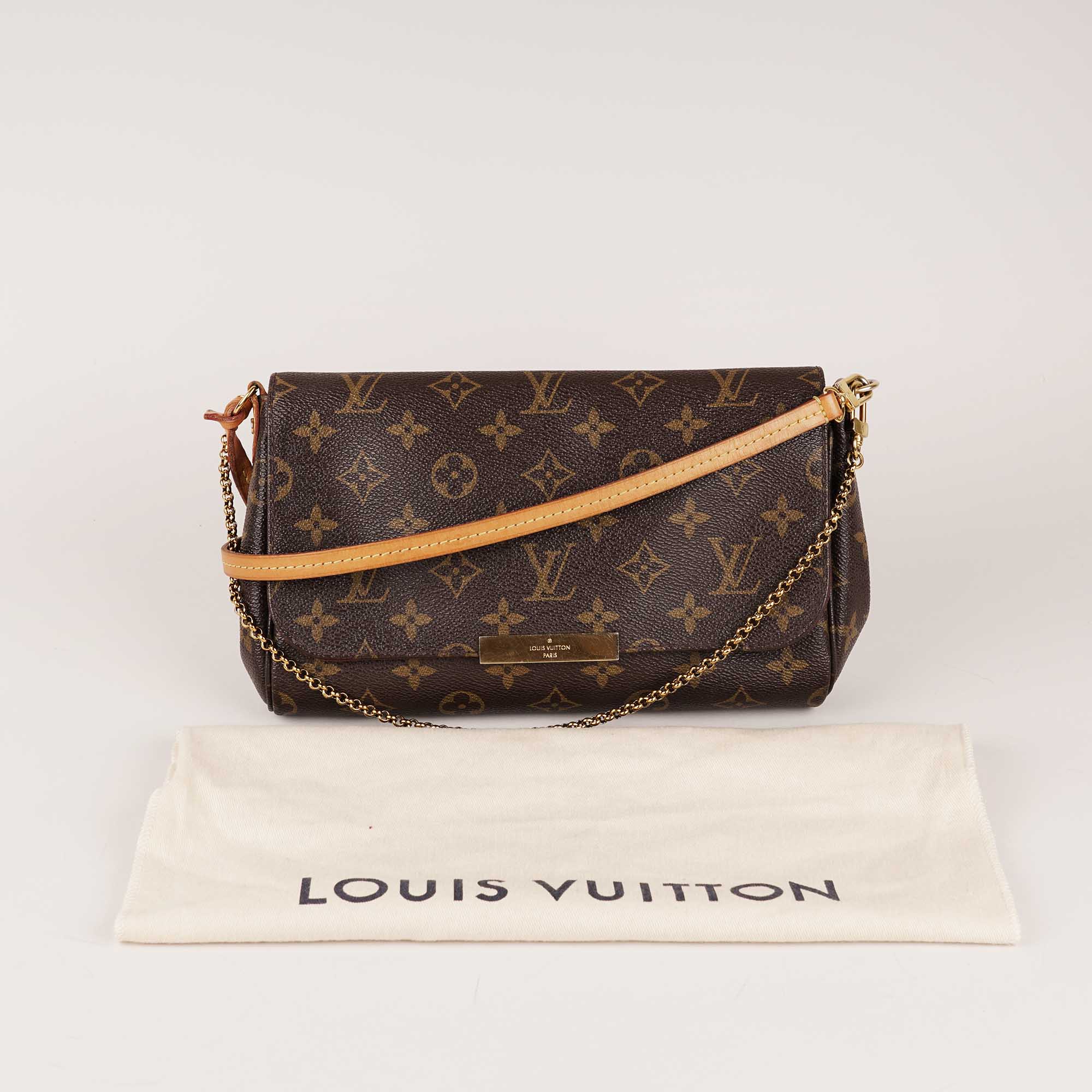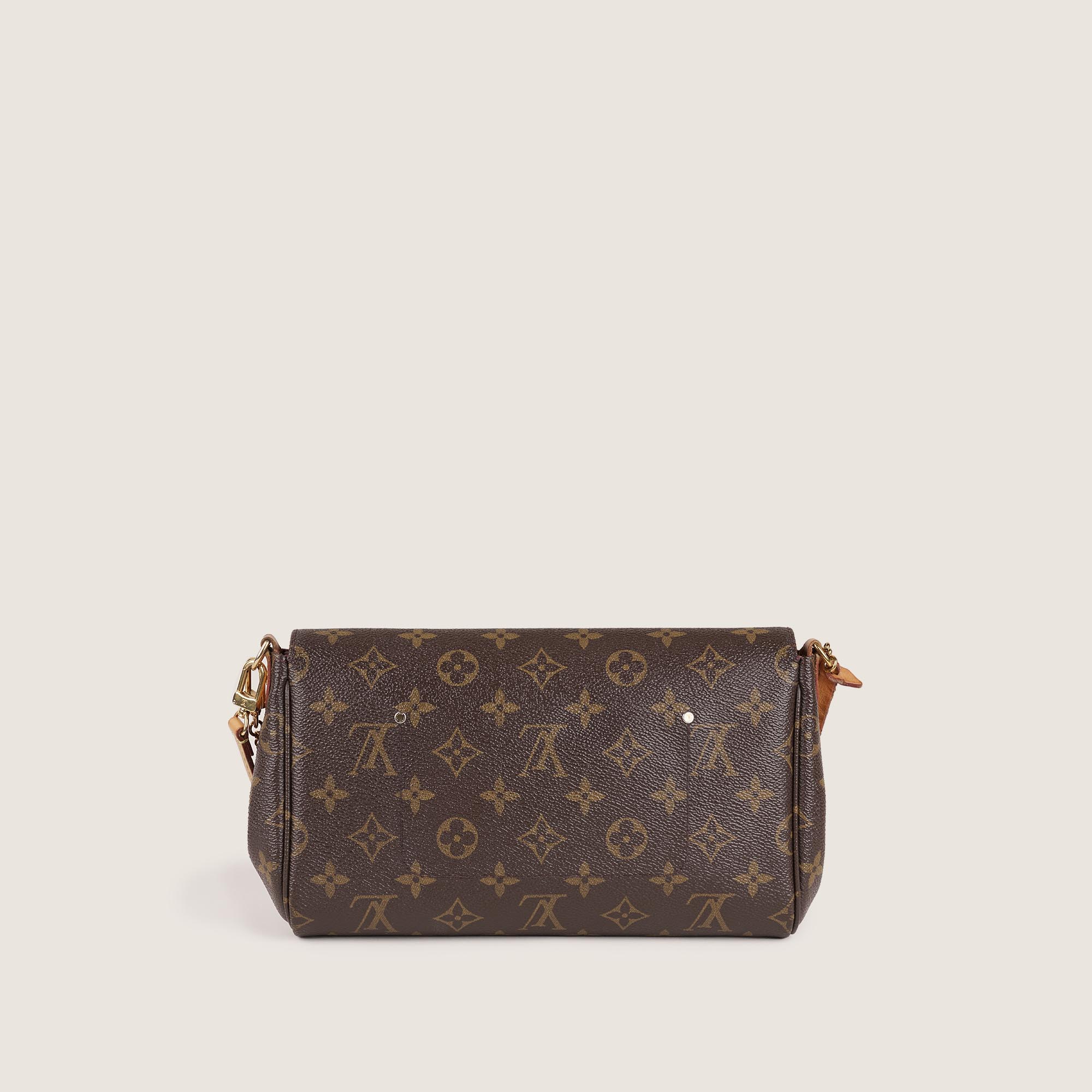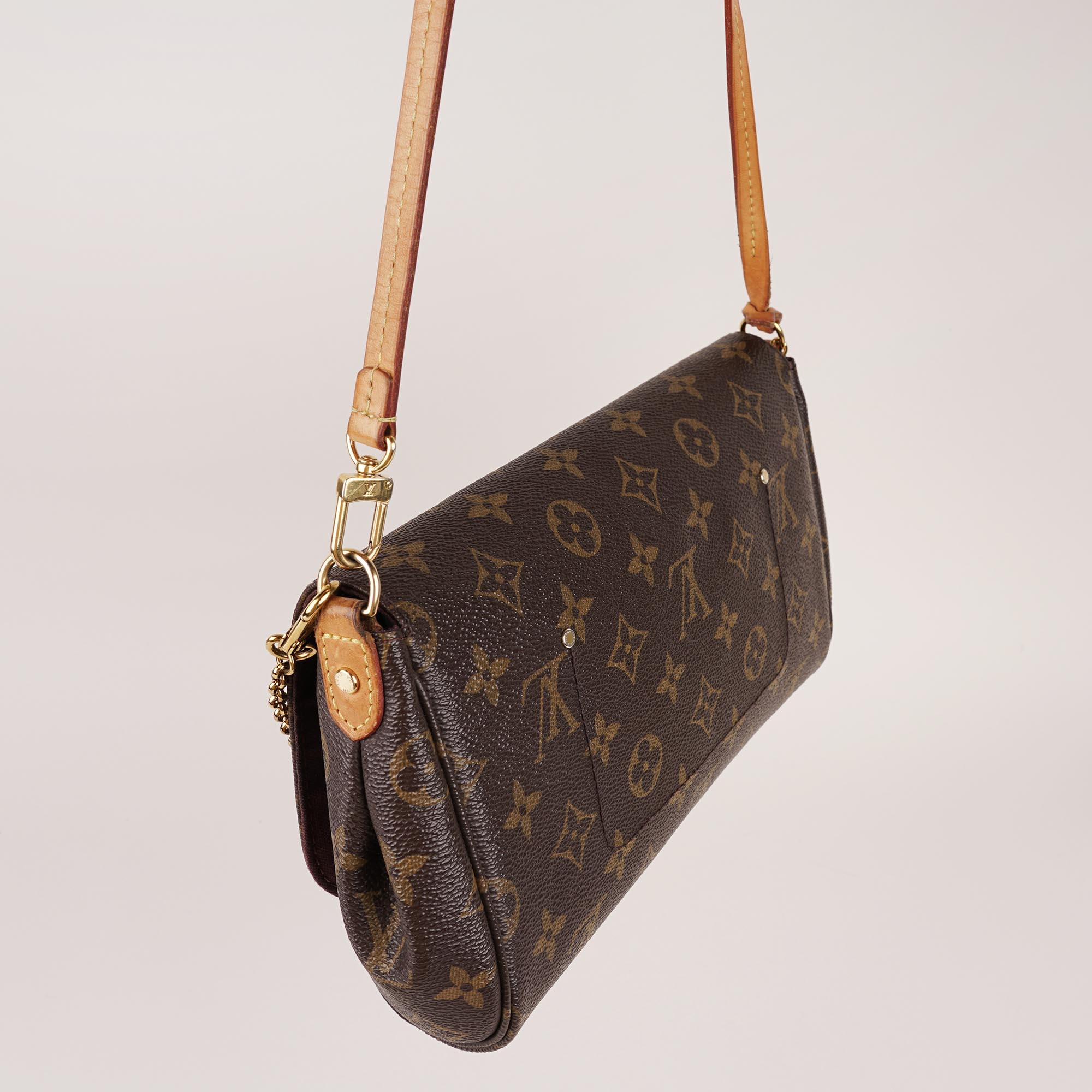 One of the most sought-after styles from the iconic French fashion house. Crafted from Louis Vuitton's signature Monogram coated canvas and accented with natural cowhide leather. this elegant shoulder bag combines timeless design with everyday practicality. The Favorite MM features a sleek. structured silhouette with a magnetic flap closure. gold-tone hardware. and a discreet Louis Vuitton logo plaque on the front.