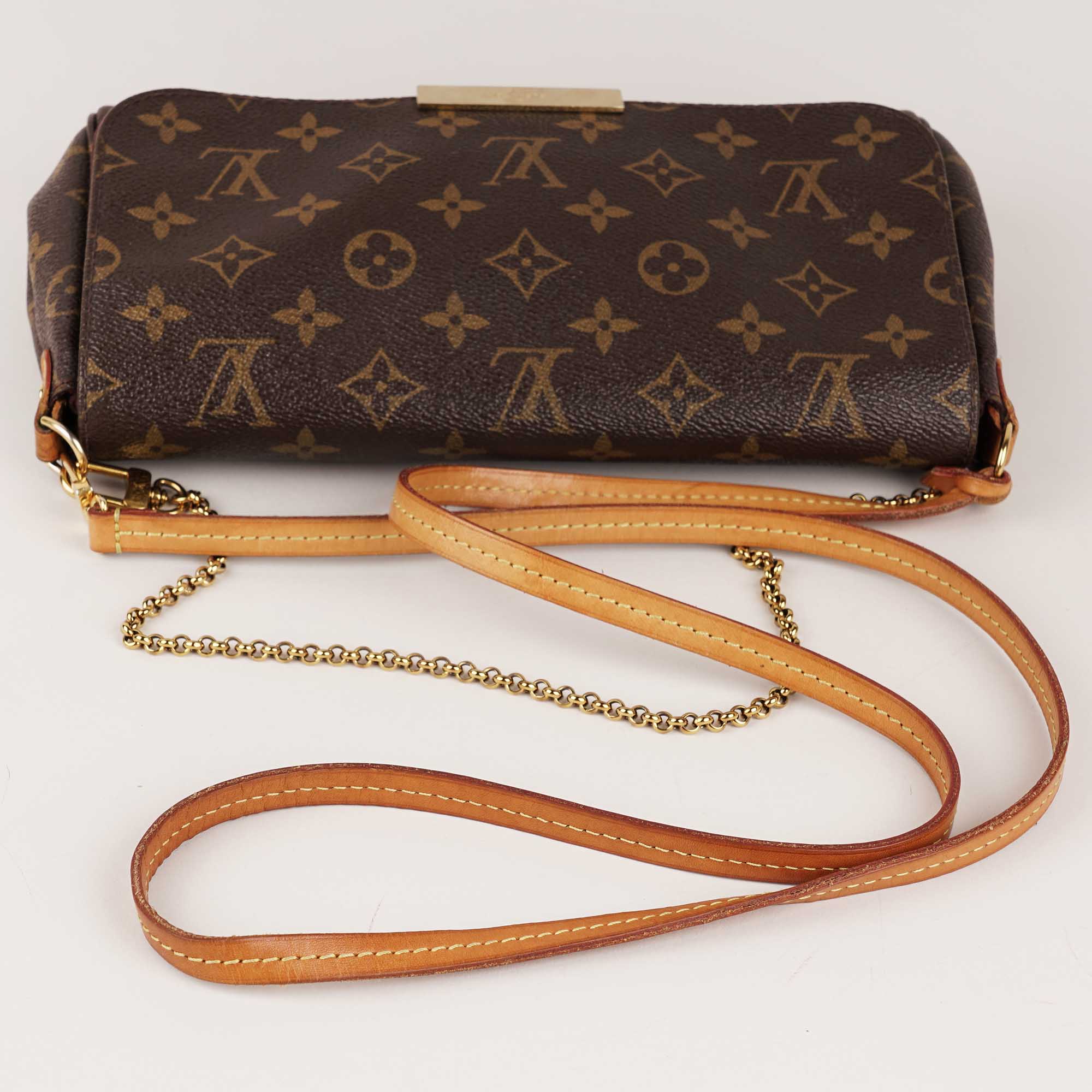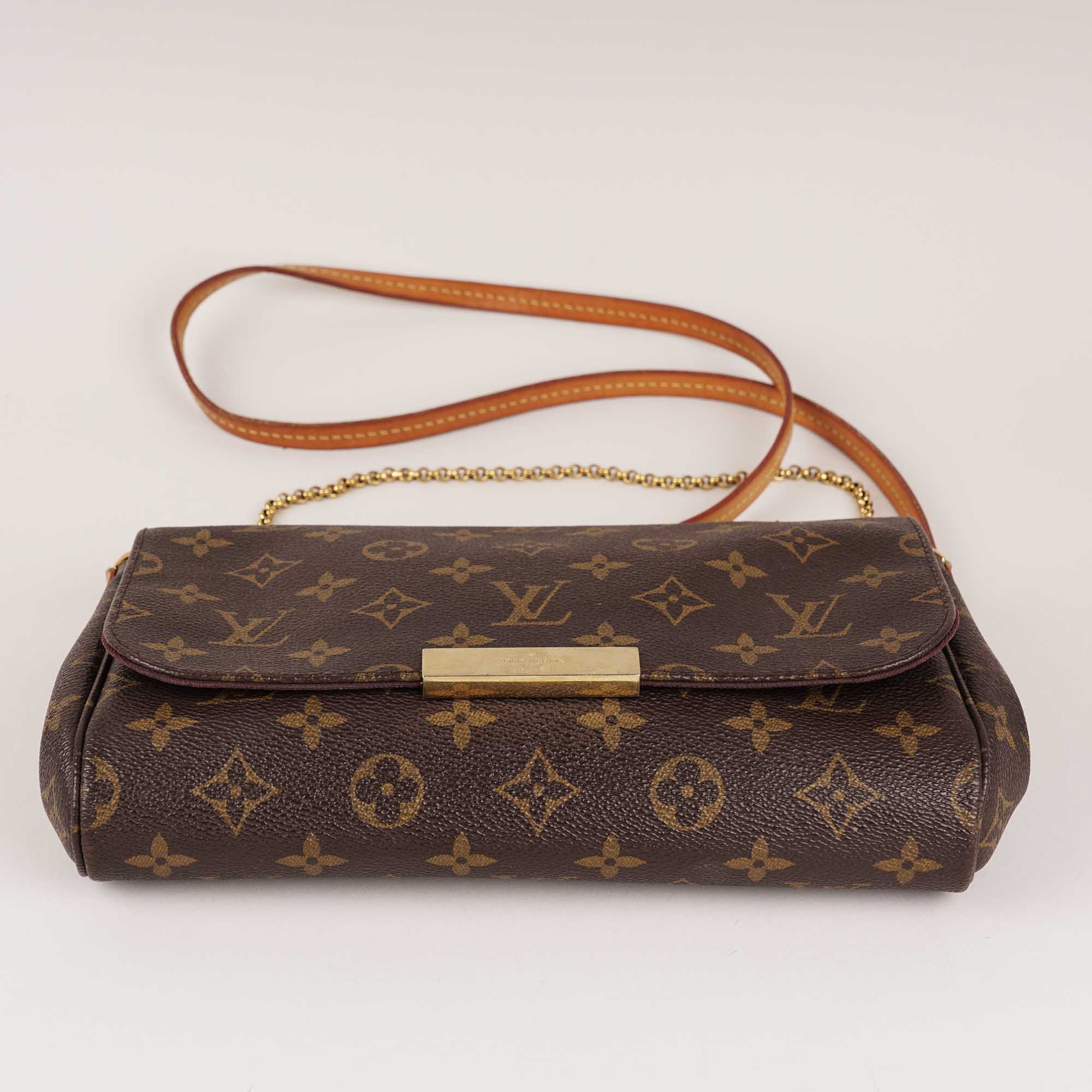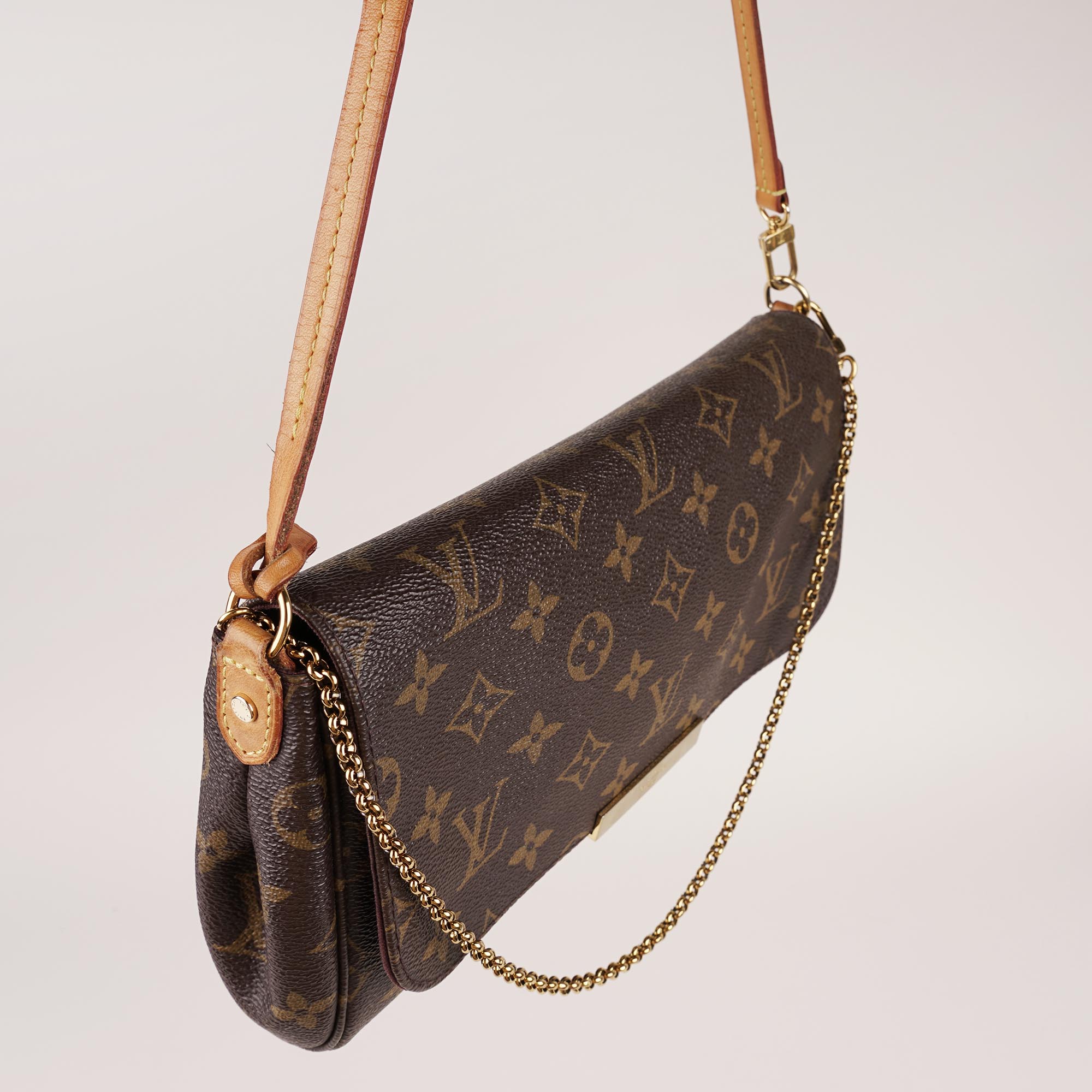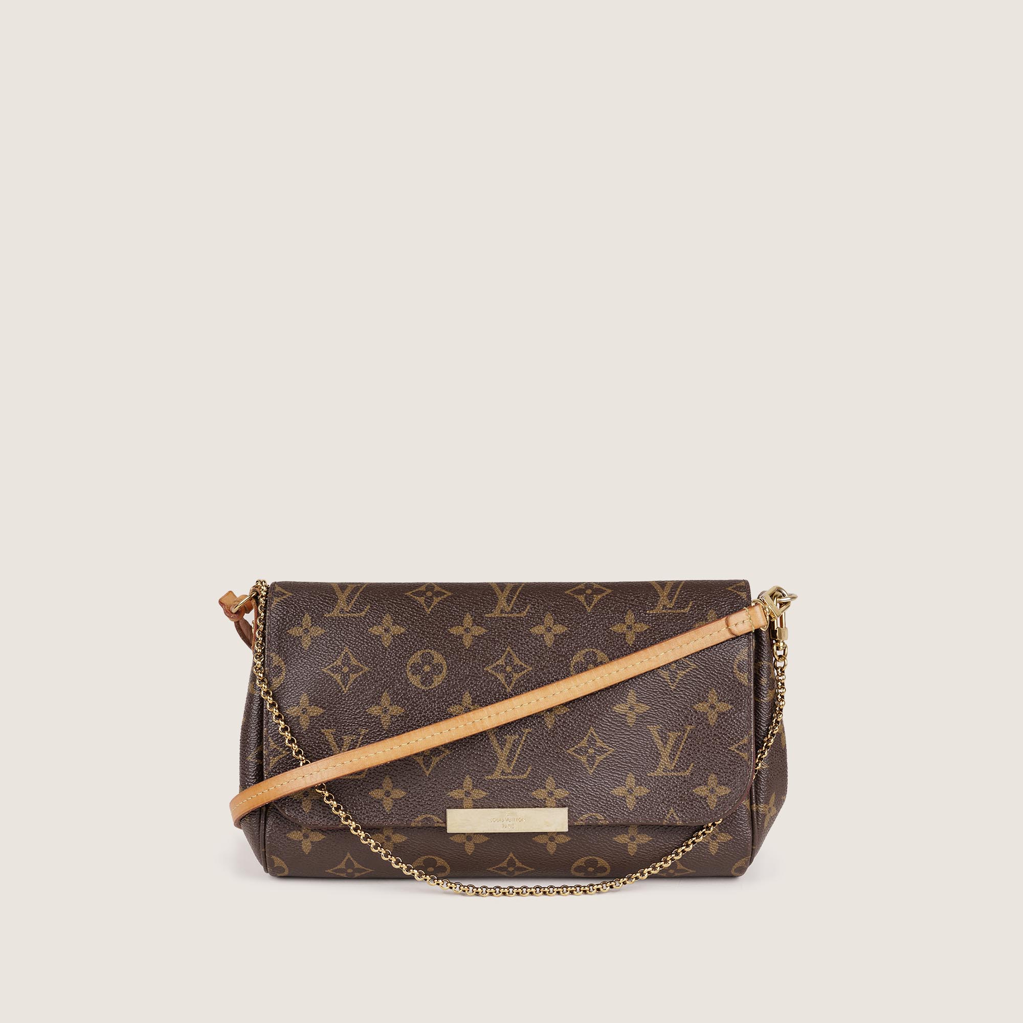 One of the most sought-after styles from the iconic French fashion house. Crafted from Louis Vuitton's signature Monogram coated canvas and accented with natural cowhide leather. this elegant shoulder bag combines timeless design with everyday practicality. The Favorite MM features a sleek. structured silhouette with a magnetic flap closure. gold-tone hardware. and a discreet Louis Vuitton logo plaque on the front.