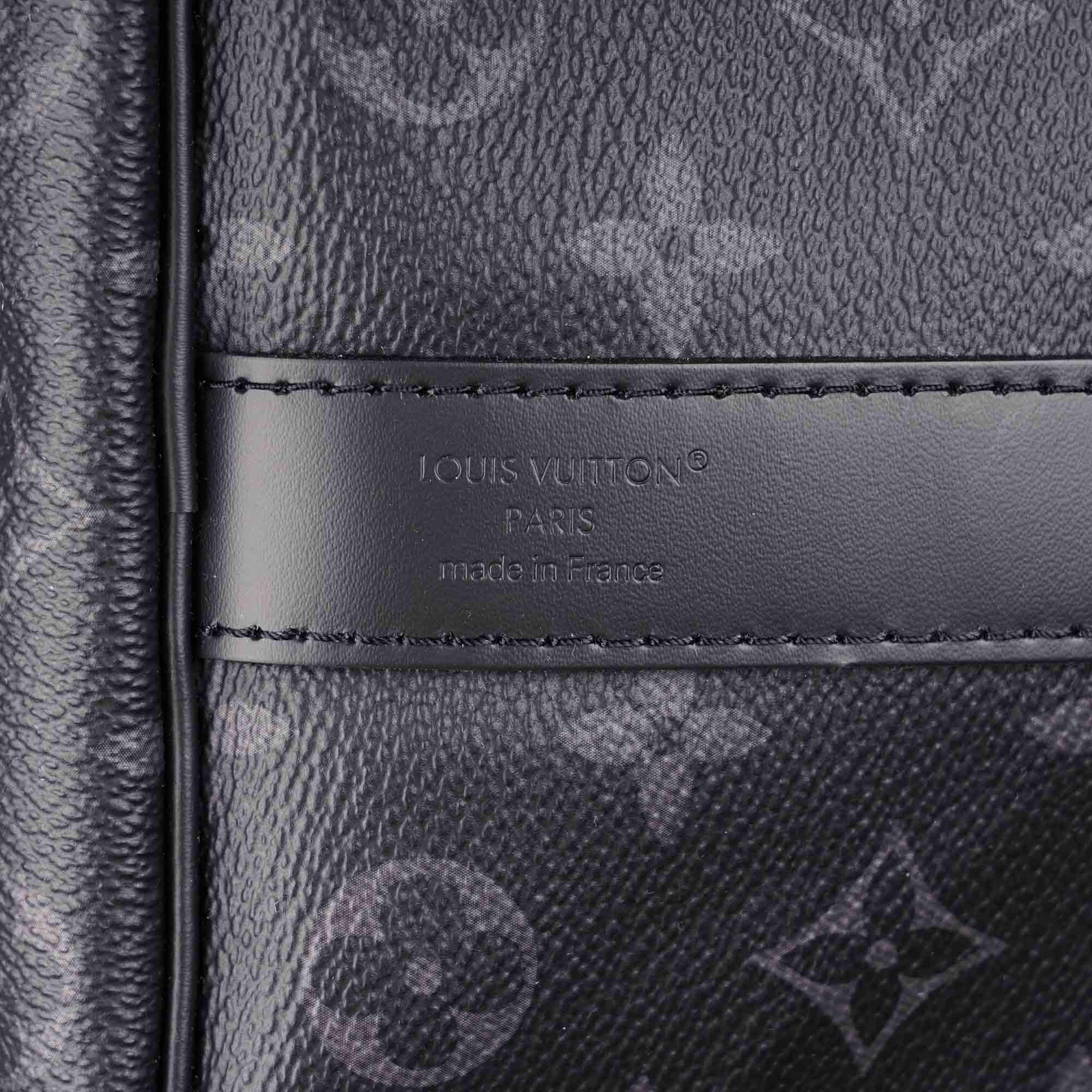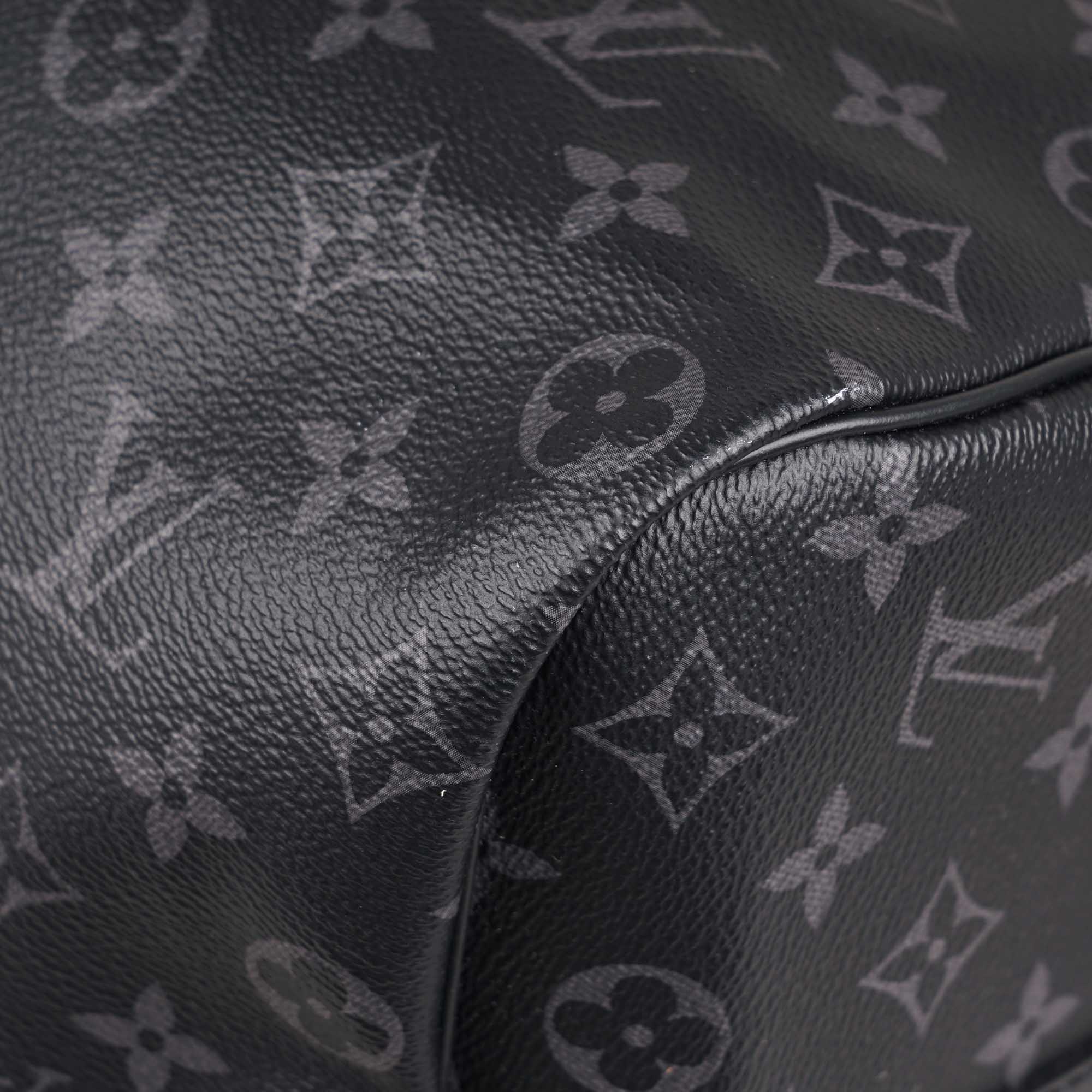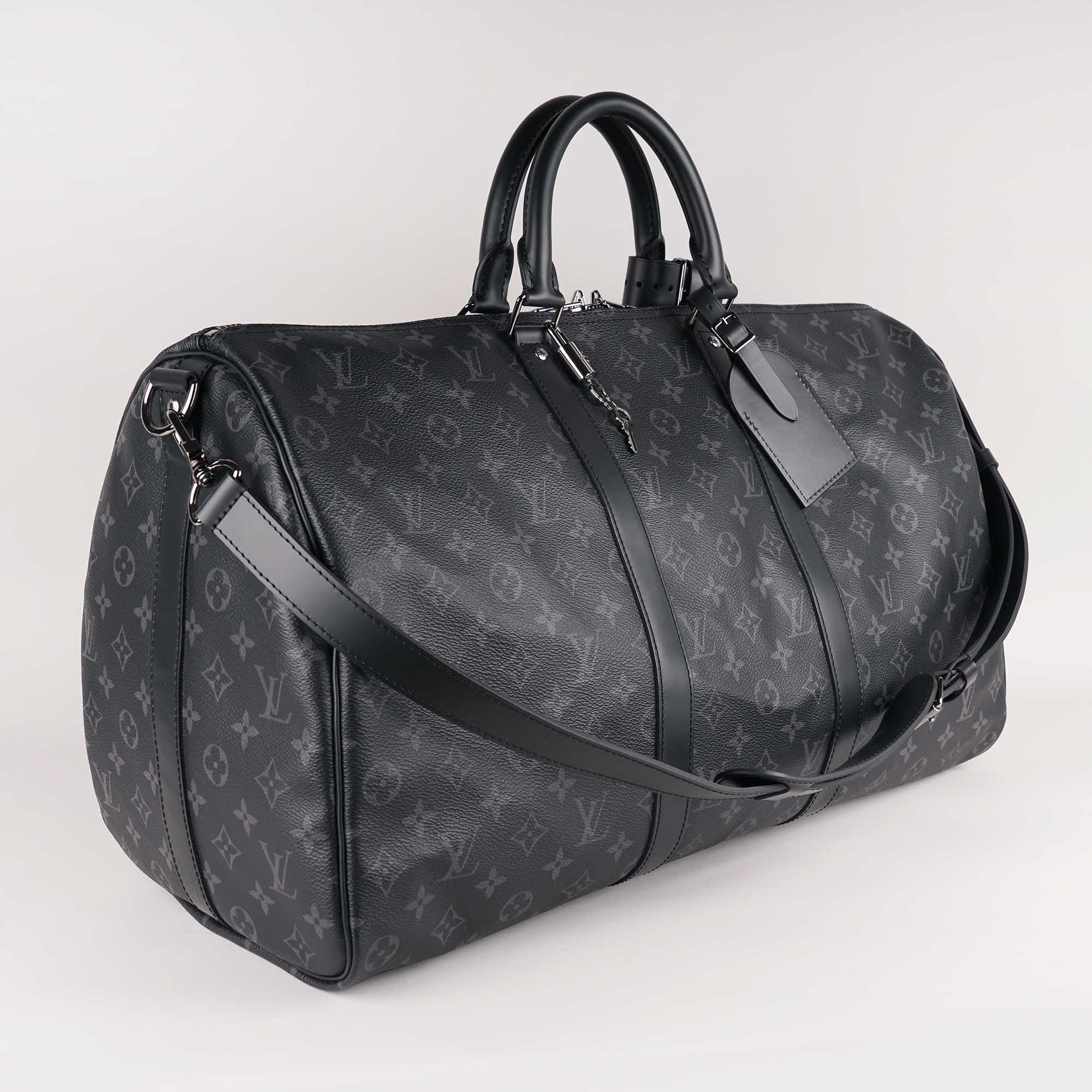 This is an authentic Louis Vuitton Keepall Bandoulière 55 Handbag in Monogram Eclipse Canvas.