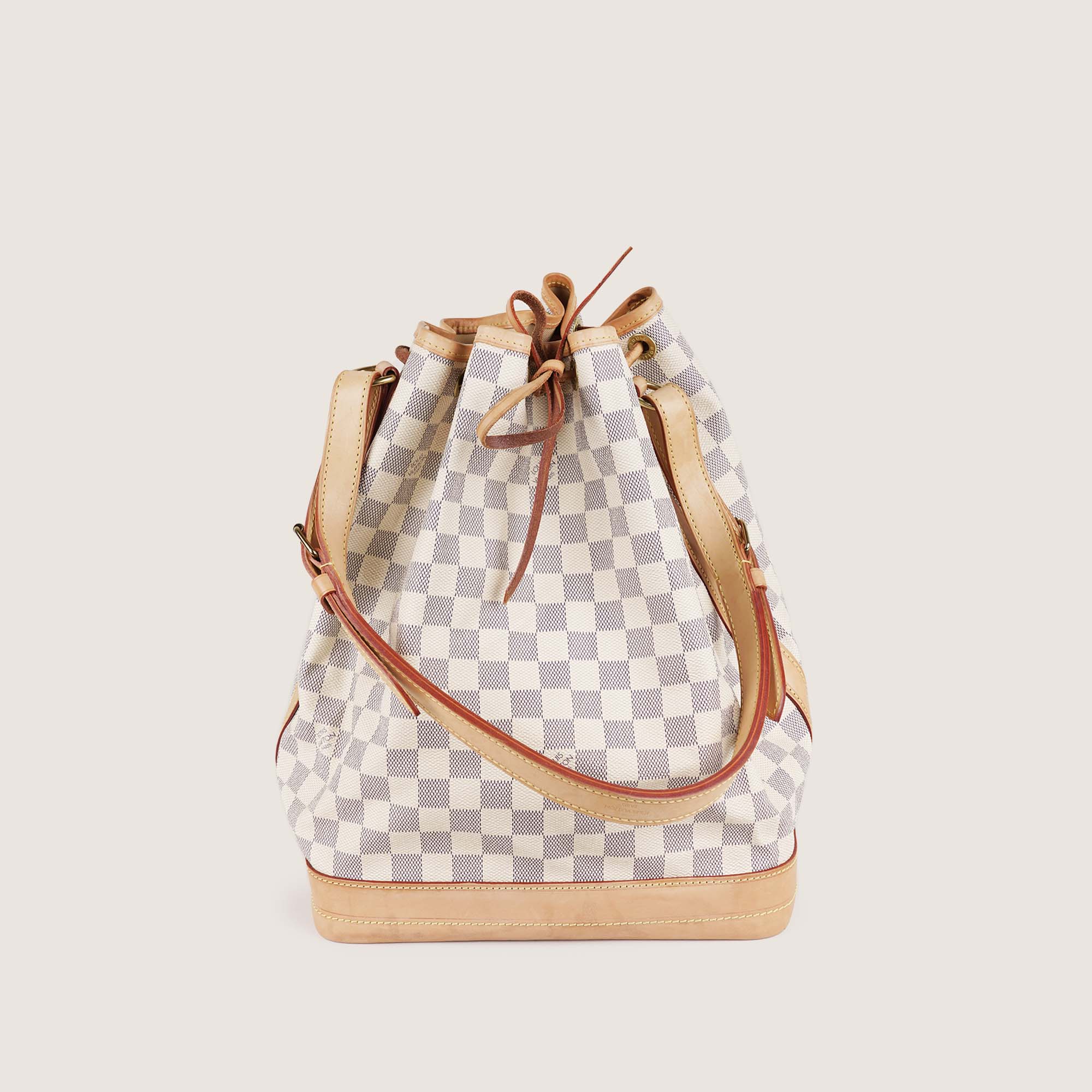 This is an authentic Louis Vuitton Large Noé Shoulder Bag in Damier Azur.