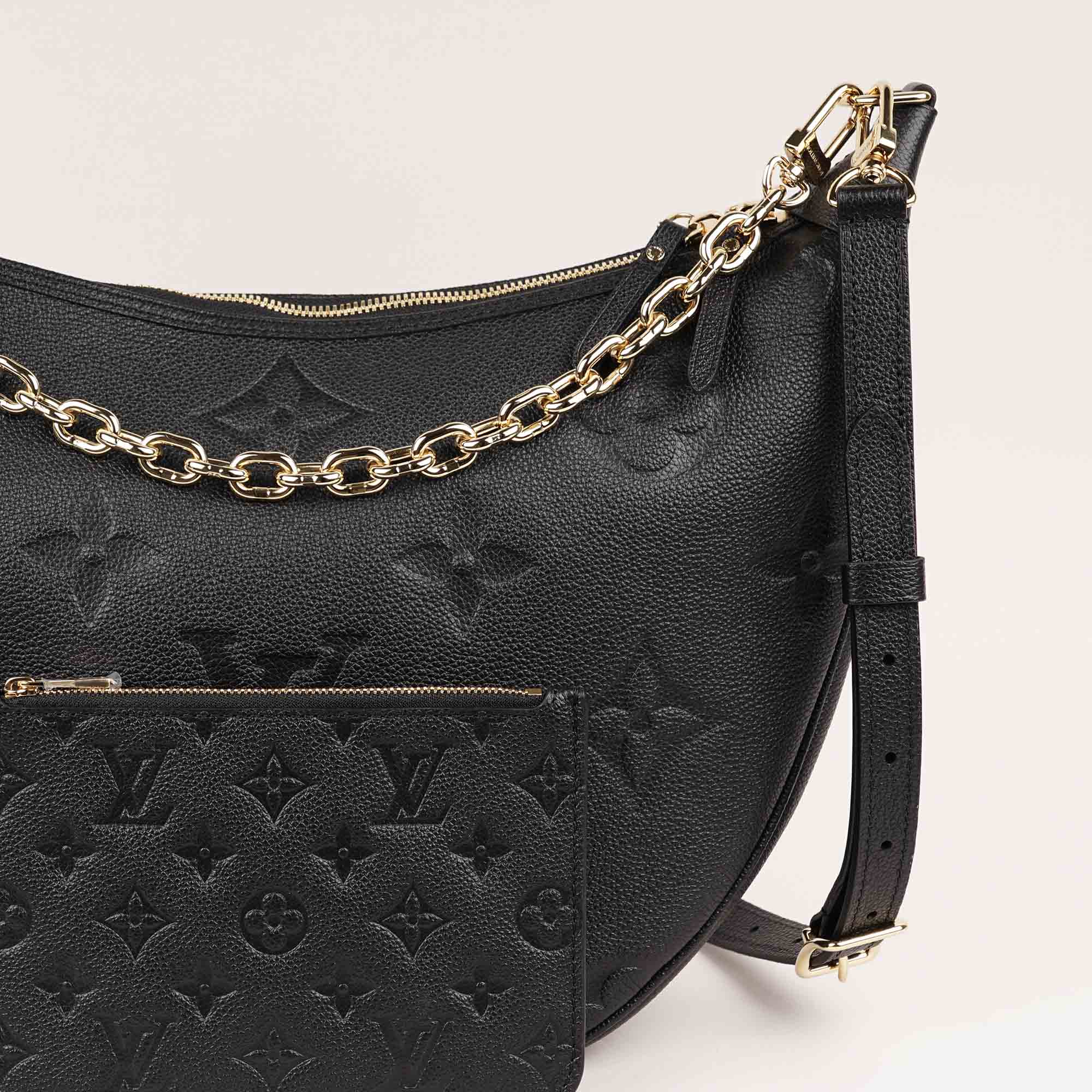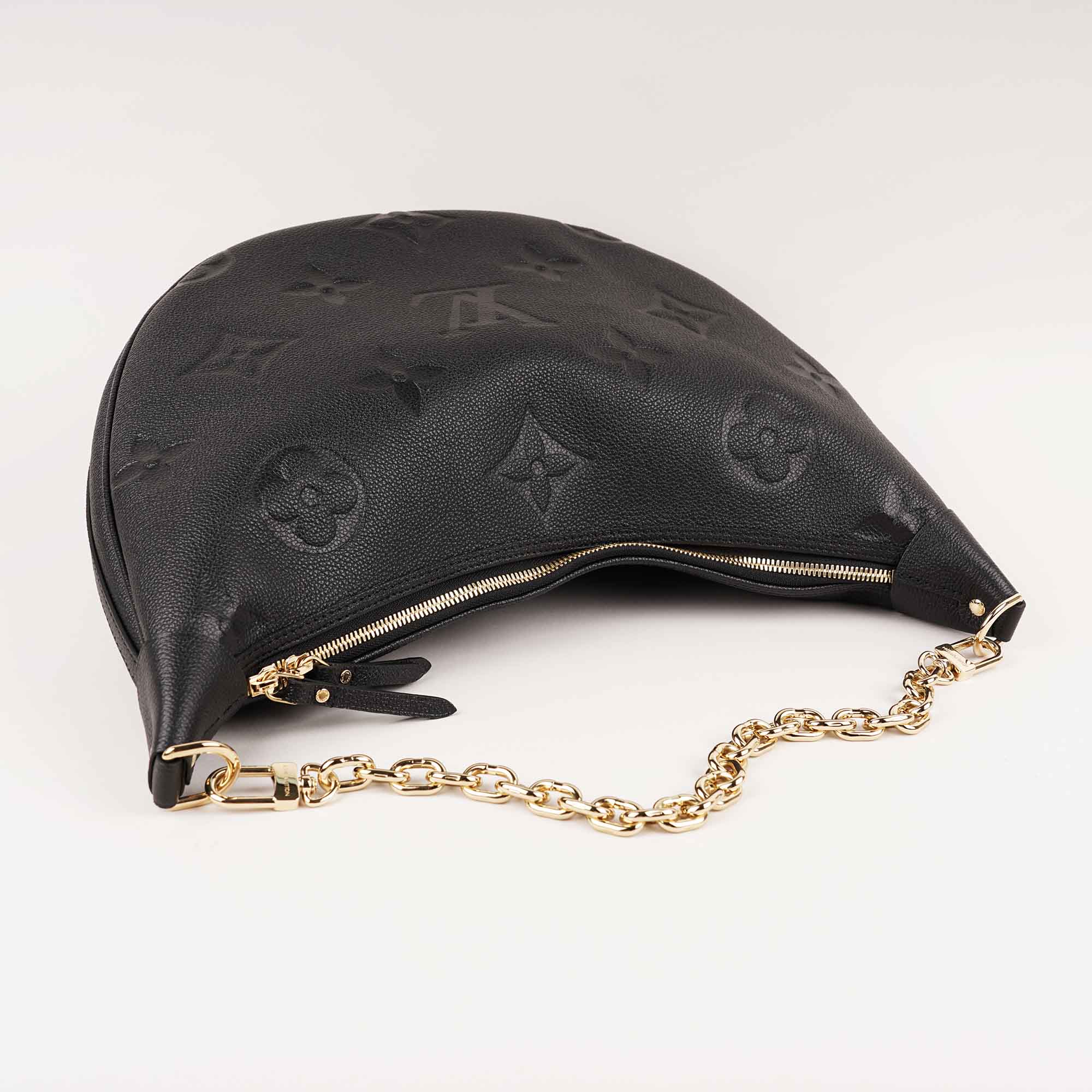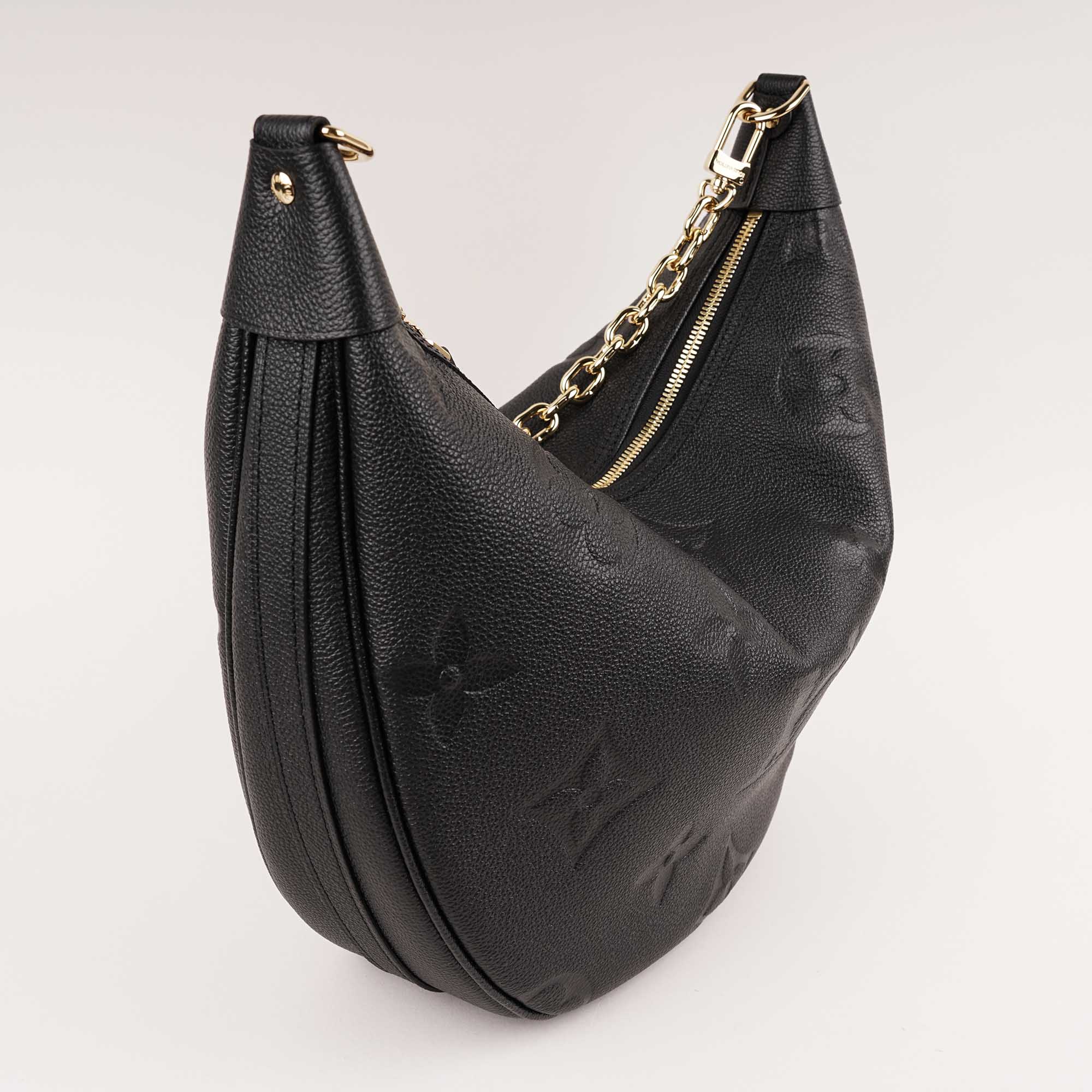 Crafted from supple black Monogram Empreinte leather. the Louis Vuitton Loop Hobo Bag combines elegance with function. This versatile shoulder bag features a signature gold-tone chain handle and an adjustable leather strap. allowing for both shoulder and crossbody wear. The distinctive LV Circle zip closure opens to a spacious. microfiber-lined interior—perfect for daily essentials. Lightweight. hands-free. and ultra-modern. the Louis Vuitton Loop Hobo is a must-have for any luxury lover. Don't miss out!