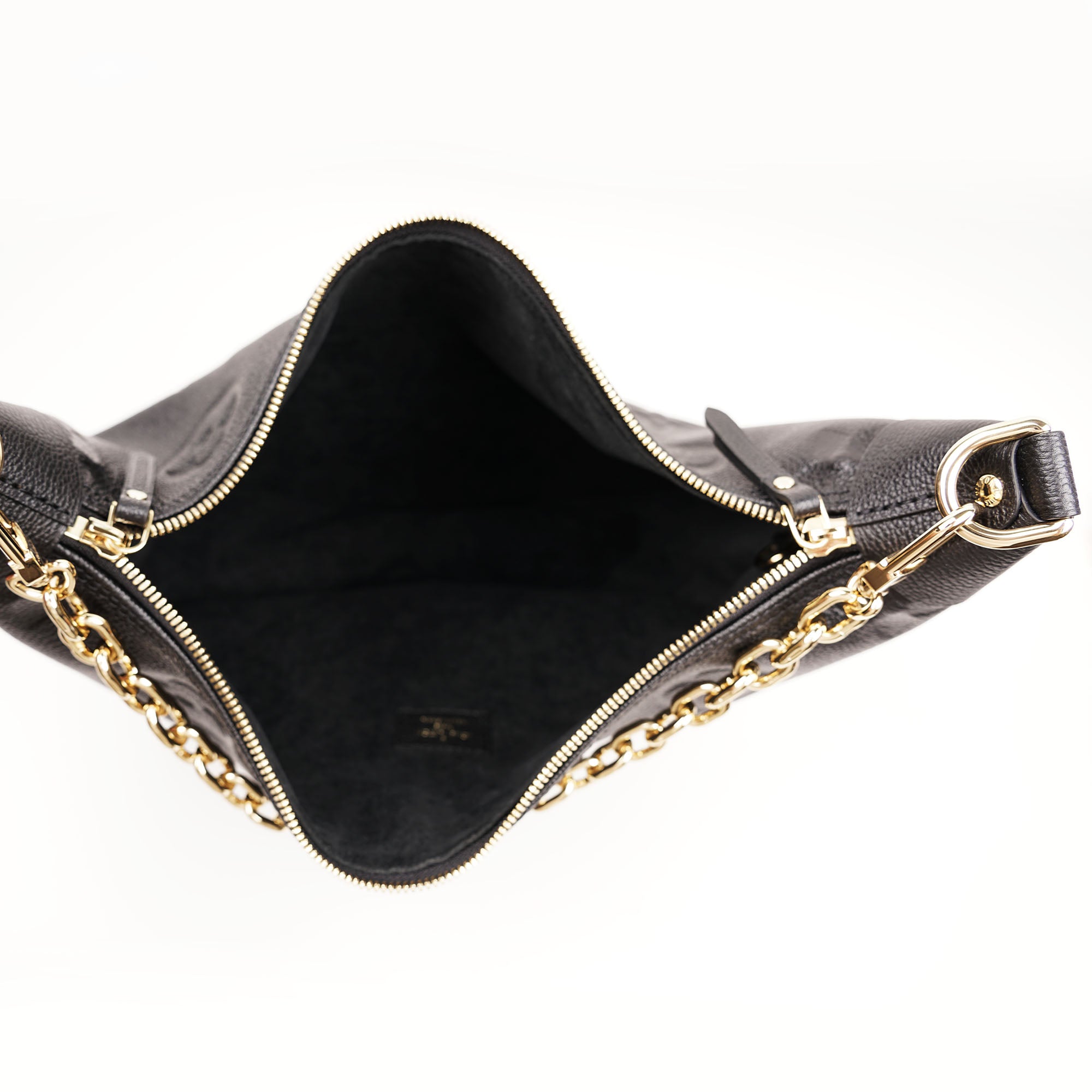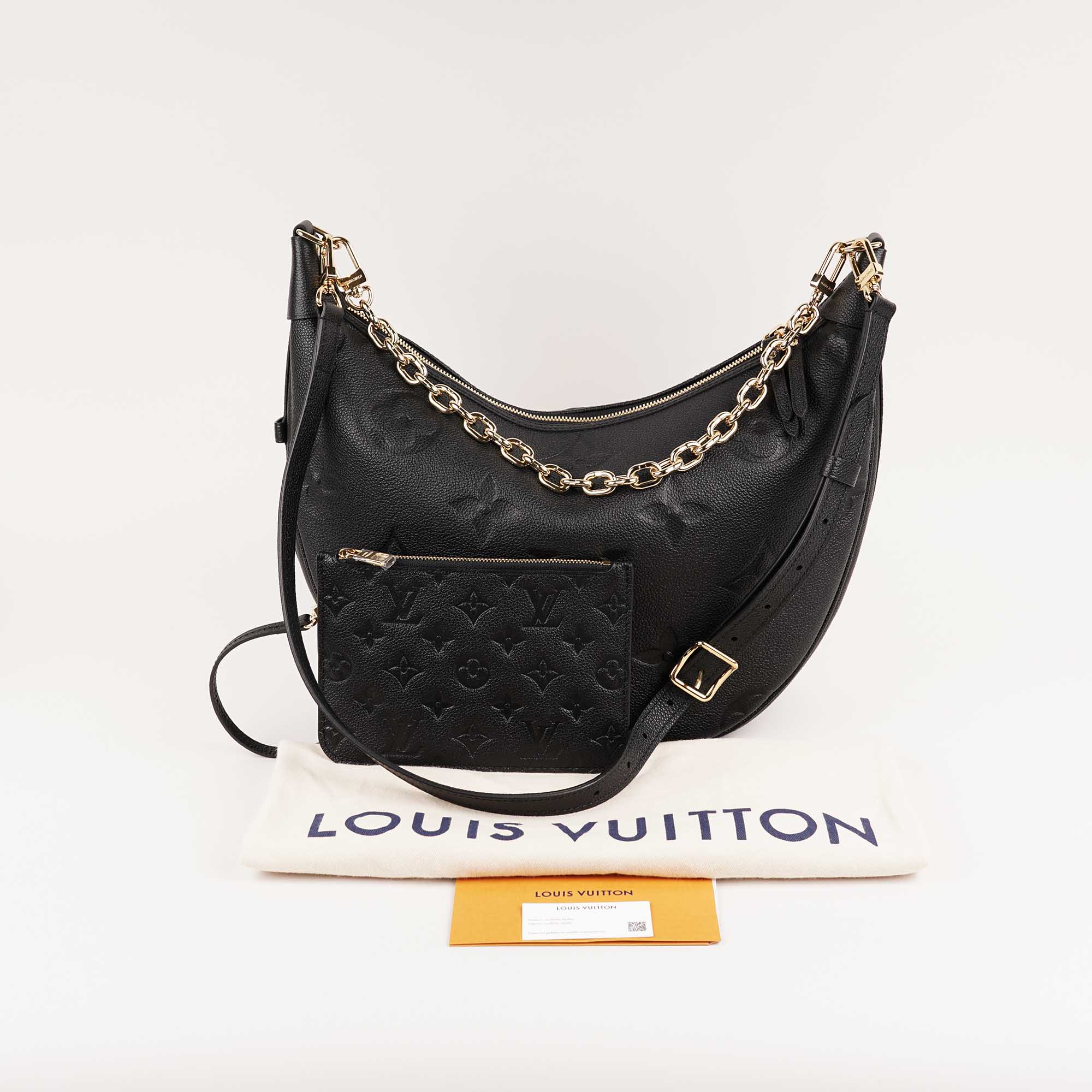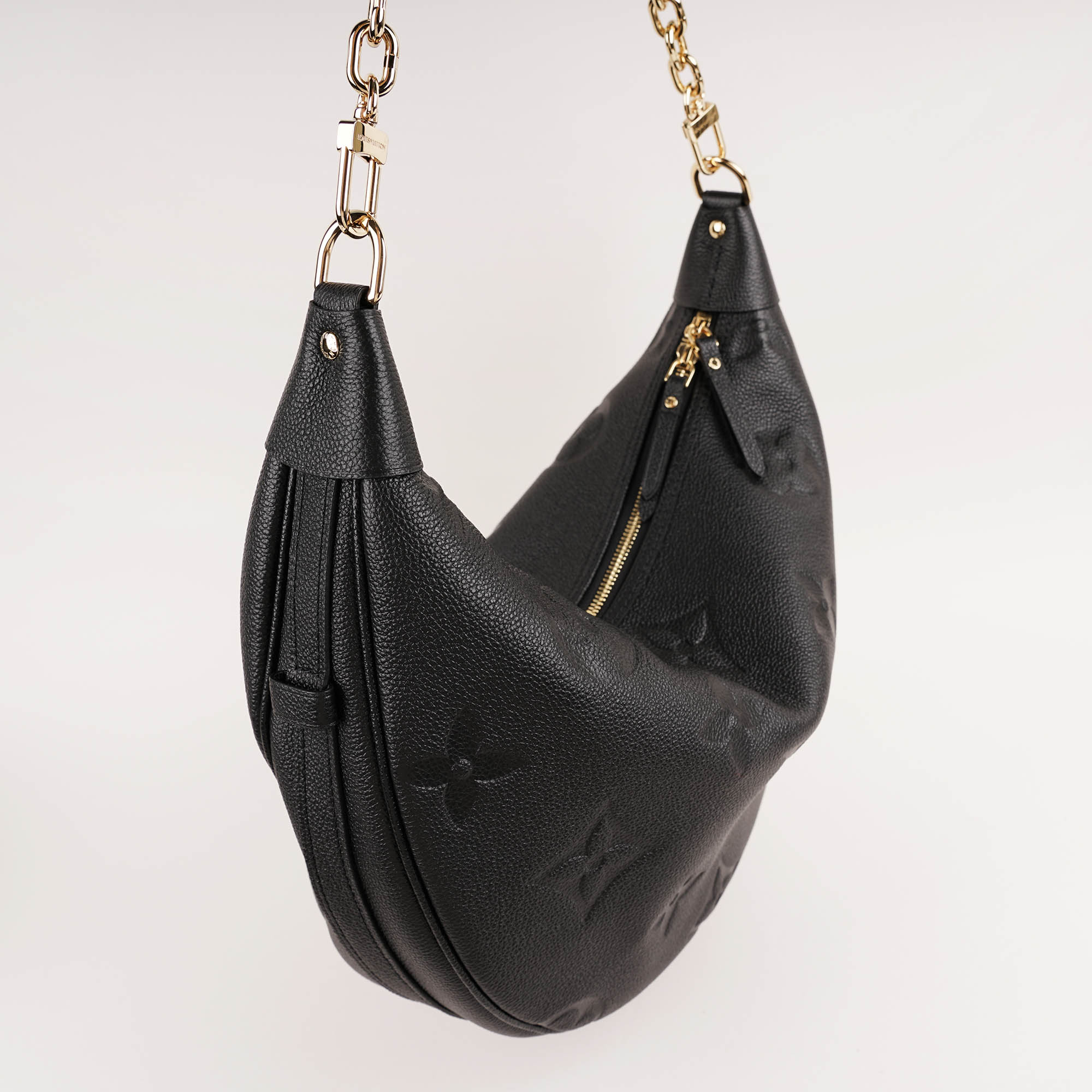 Crafted from supple black Monogram Empreinte leather. the Louis Vuitton Loop Hobo Bag combines elegance with function. This versatile shoulder bag features a signature gold-tone chain handle and an adjustable leather strap. allowing for both shoulder and crossbody wear. The distinctive LV Circle zip closure opens to a spacious. microfiber-lined interior—perfect for daily essentials. Lightweight. hands-free. and ultra-modern. the Louis Vuitton Loop Hobo is a must-have for any luxury lover. Don't miss out!