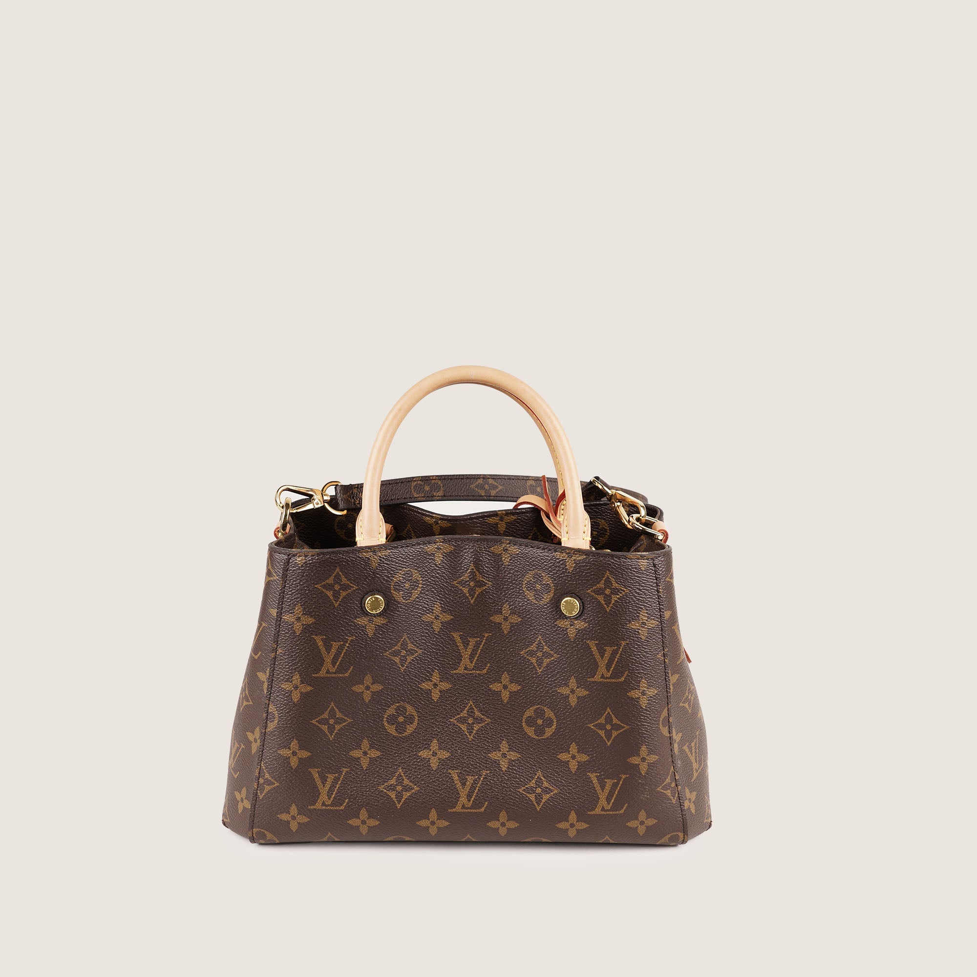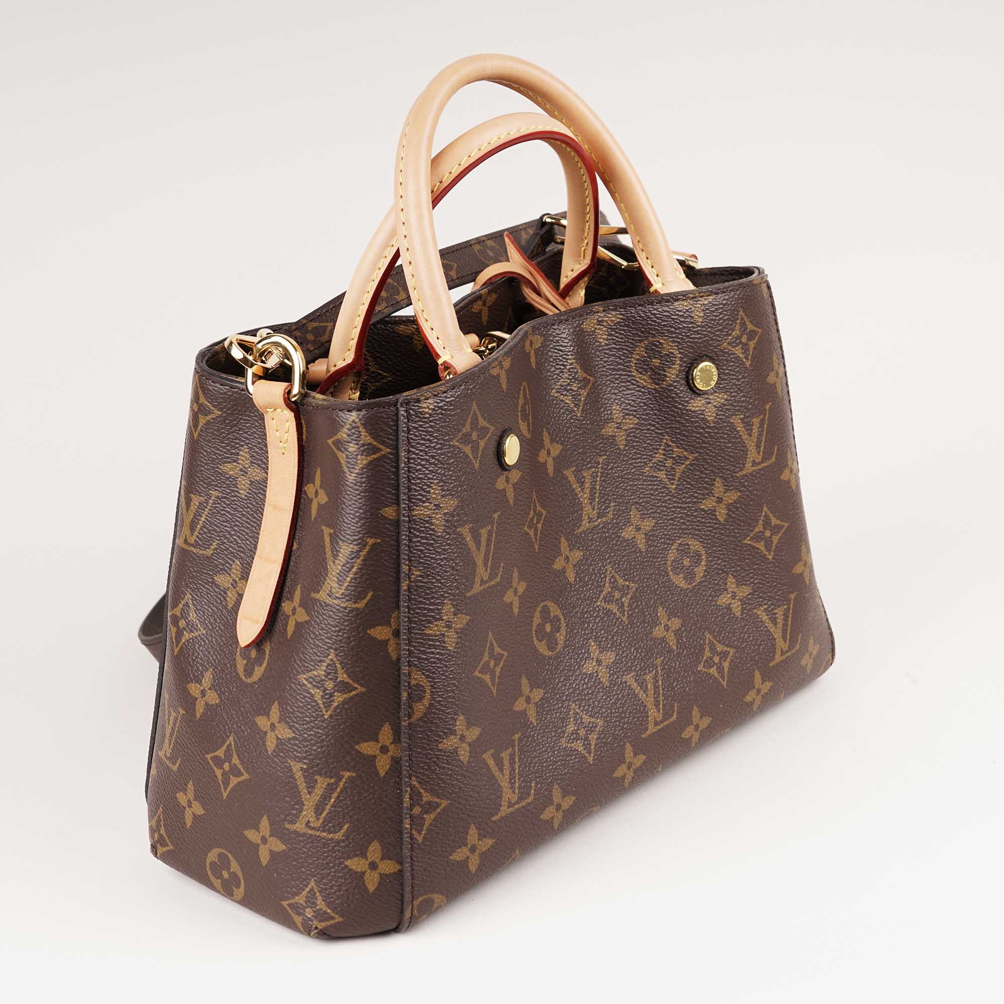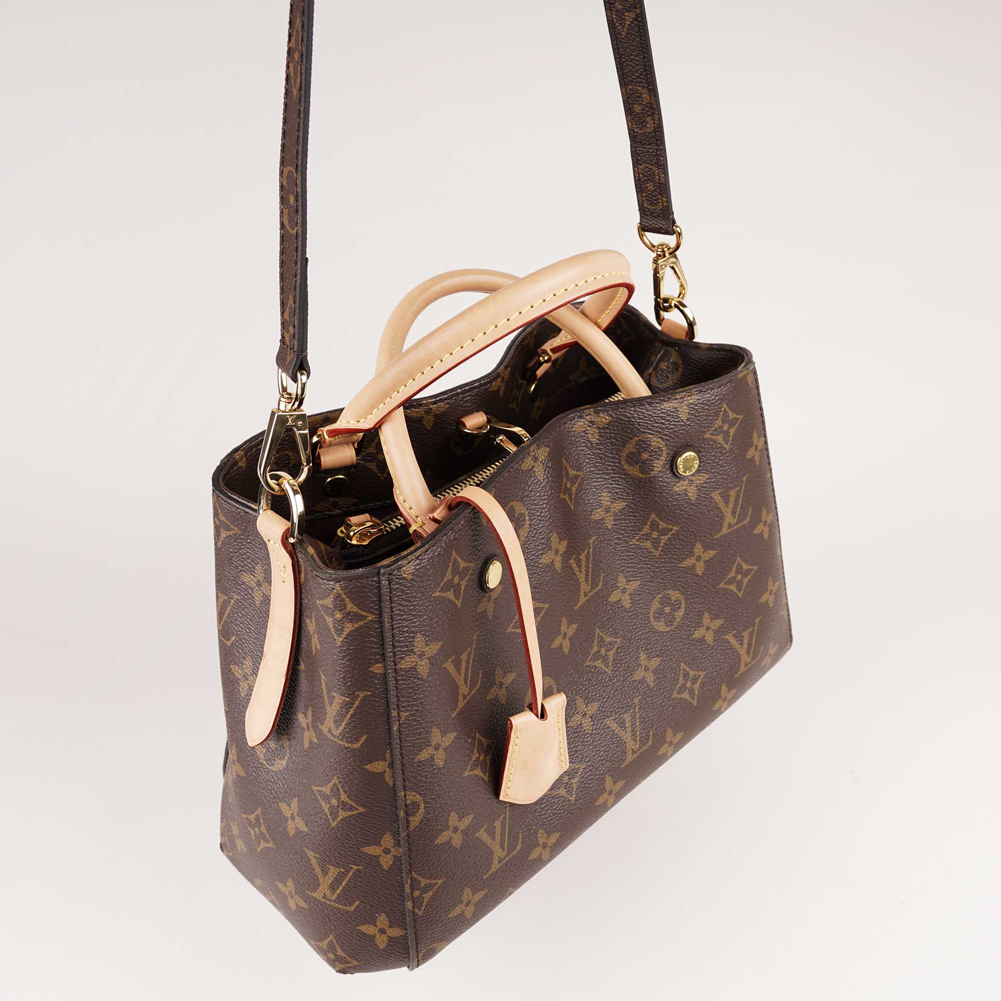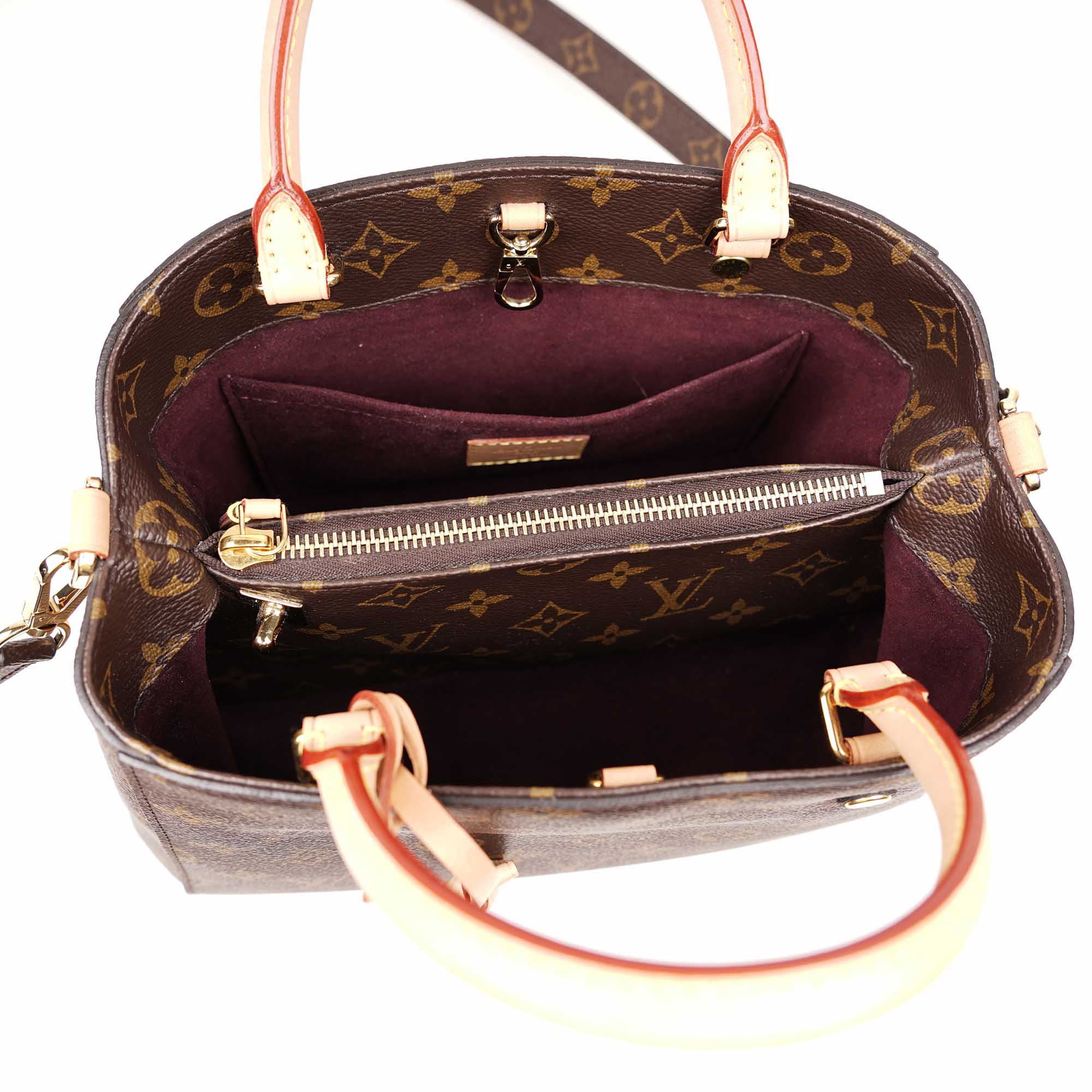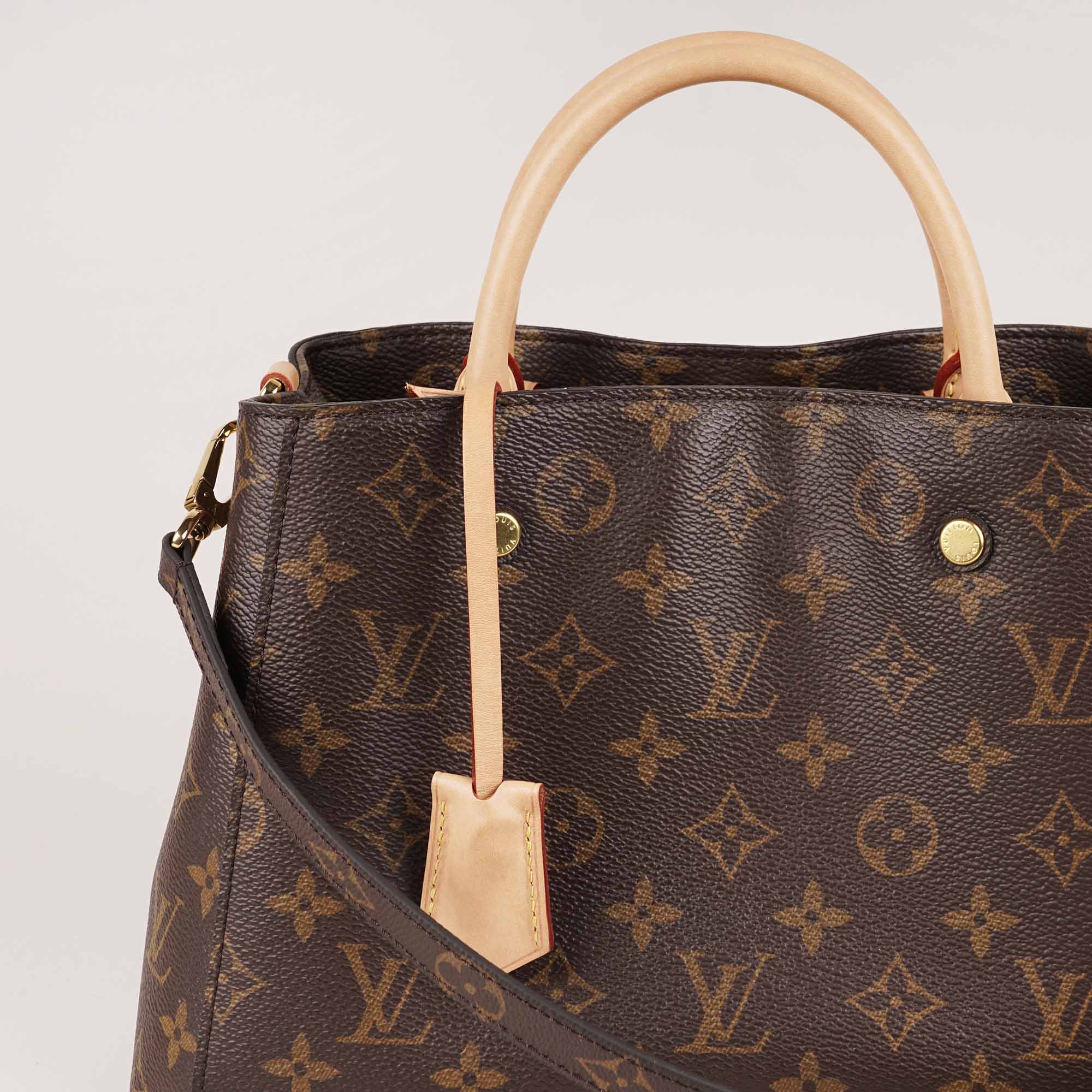 The Louis Vuitton Montaigne MM Tote Bag is a stylish and versatile handbag designed with classic and durable Monogram Canvas. rolled natural cowhide leather handles and details. as well as a removable shoulder strap in canvas. The spacious interior offers organization with a central zipper compartment and patch pockets. The Louis Vuitton Montaigne BB can be carried on your shoulders or by hand and is ideal for everyday wear. Elevate your look with this timeless. elegant and versatile bag. Don't miss out!