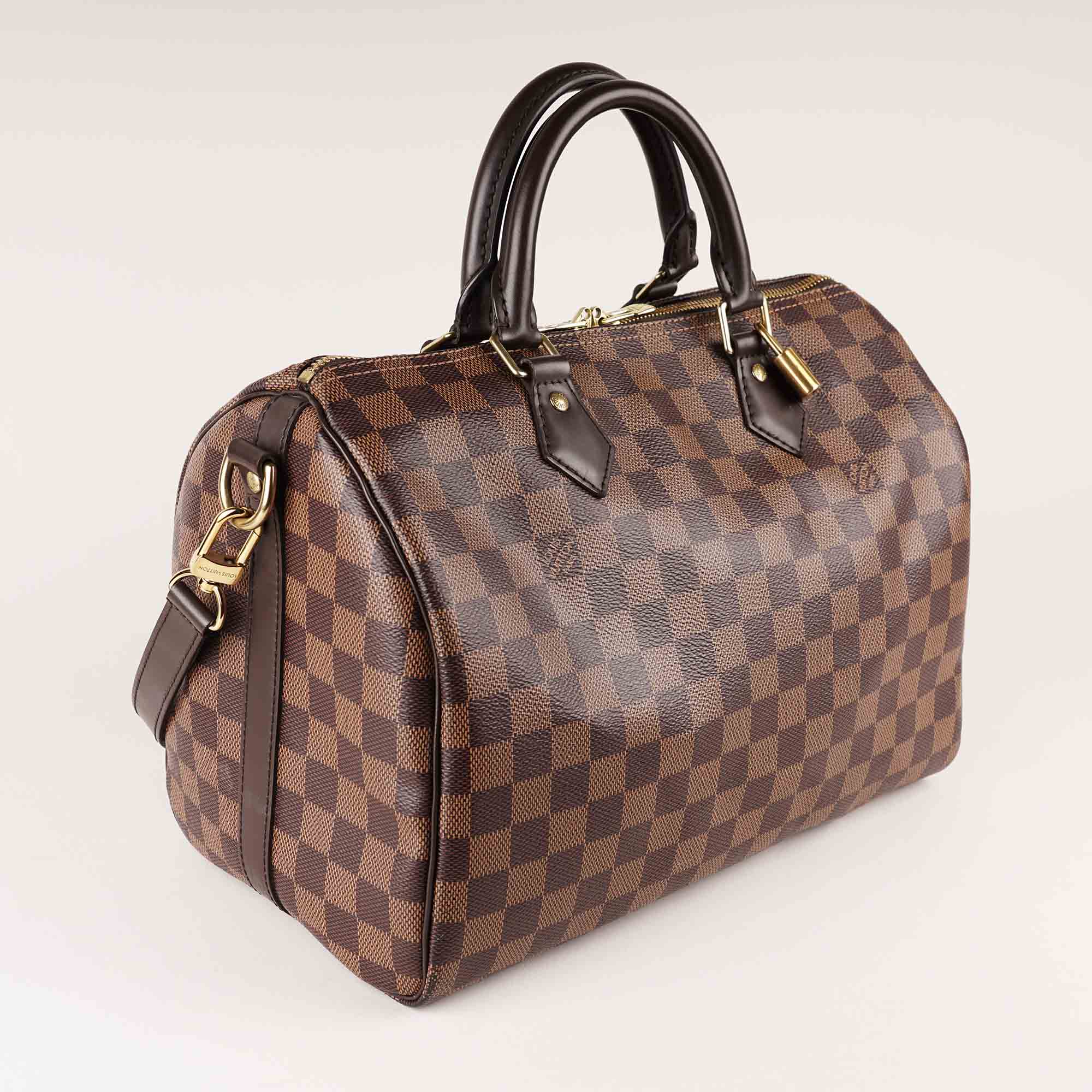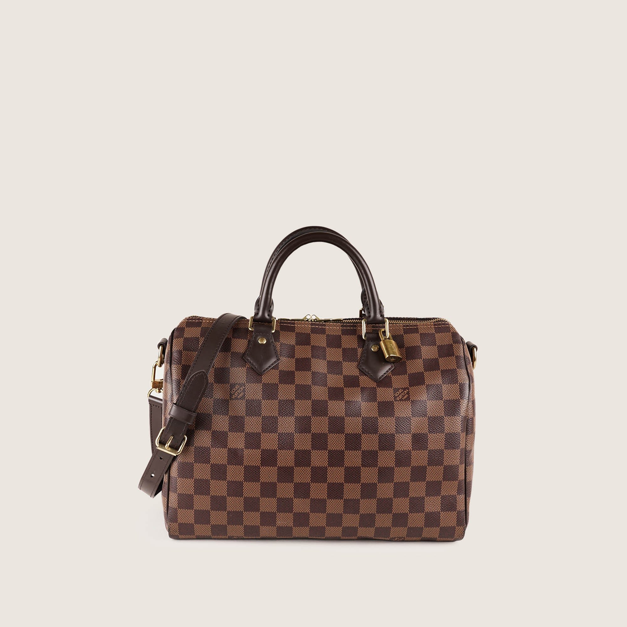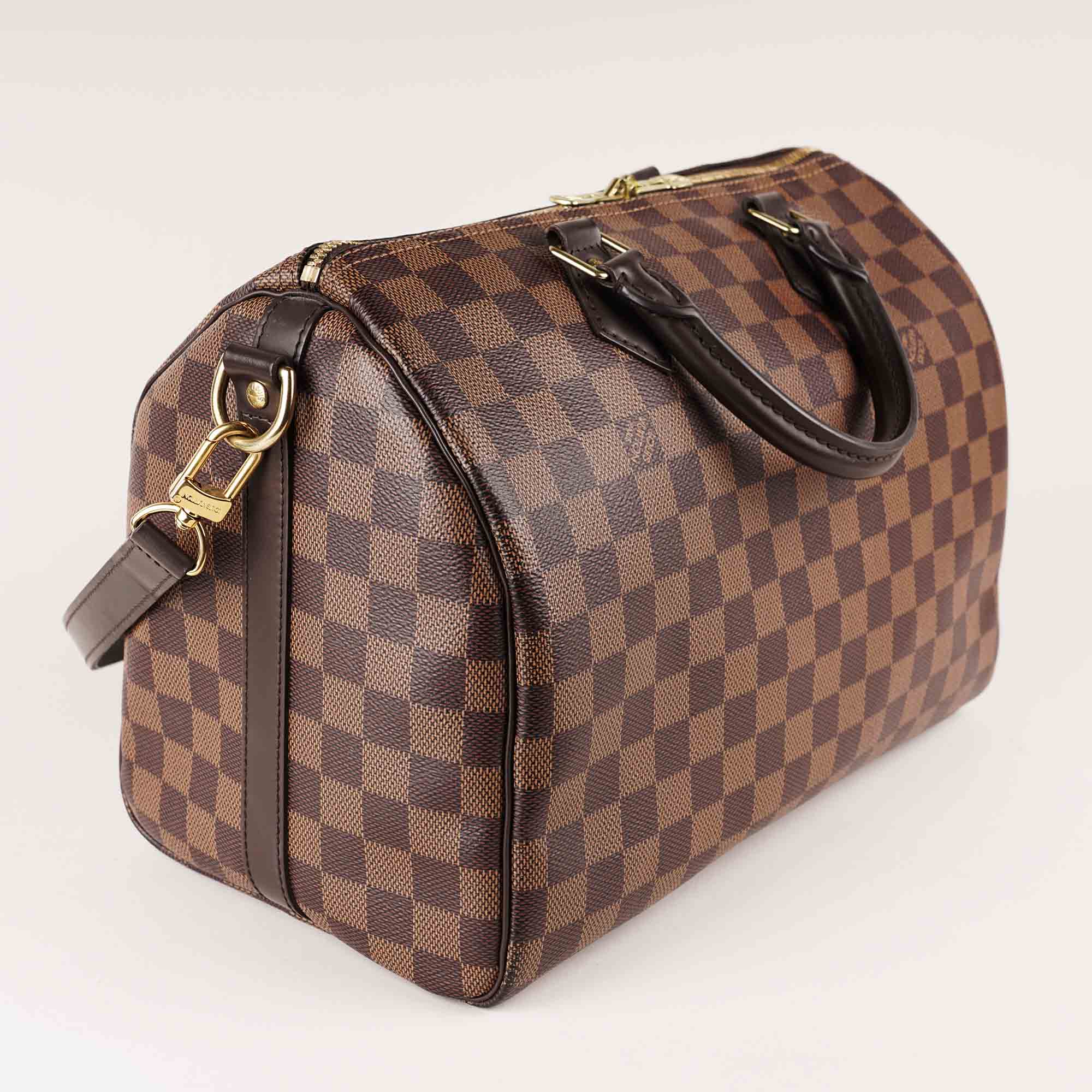 This is an authentic Louis Vuitton Speedy 30 Bandoulière Handbag in Damier Ebene Canvas.