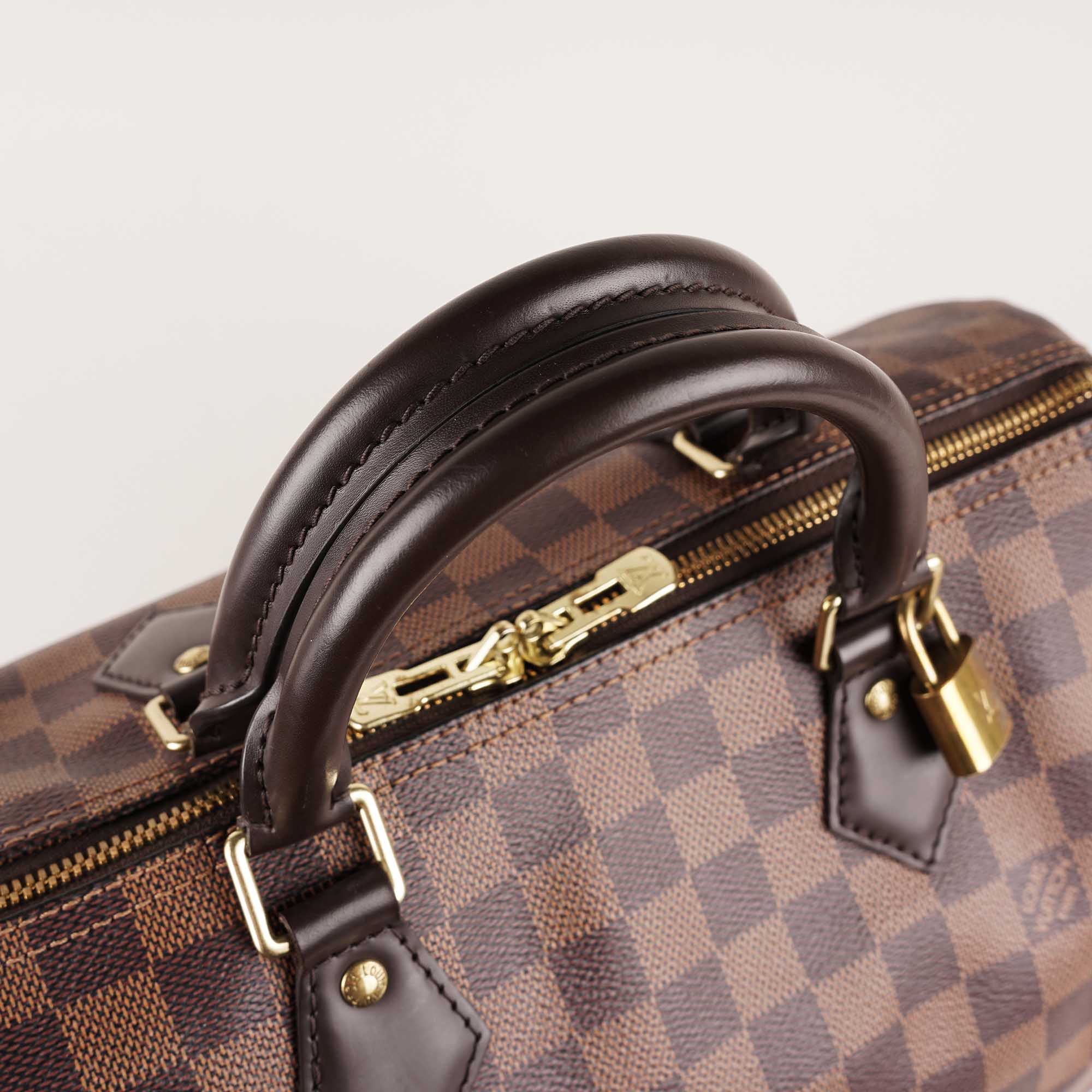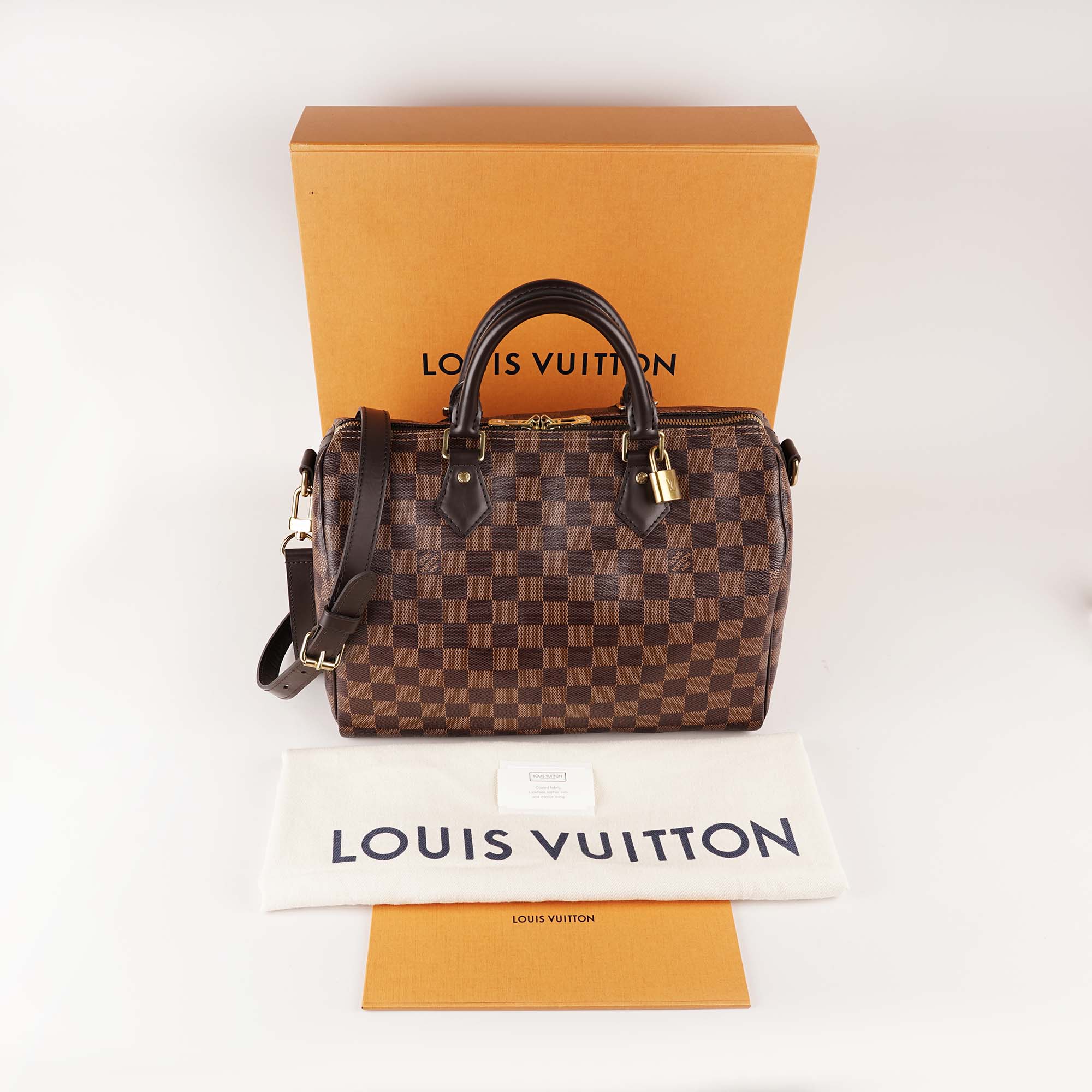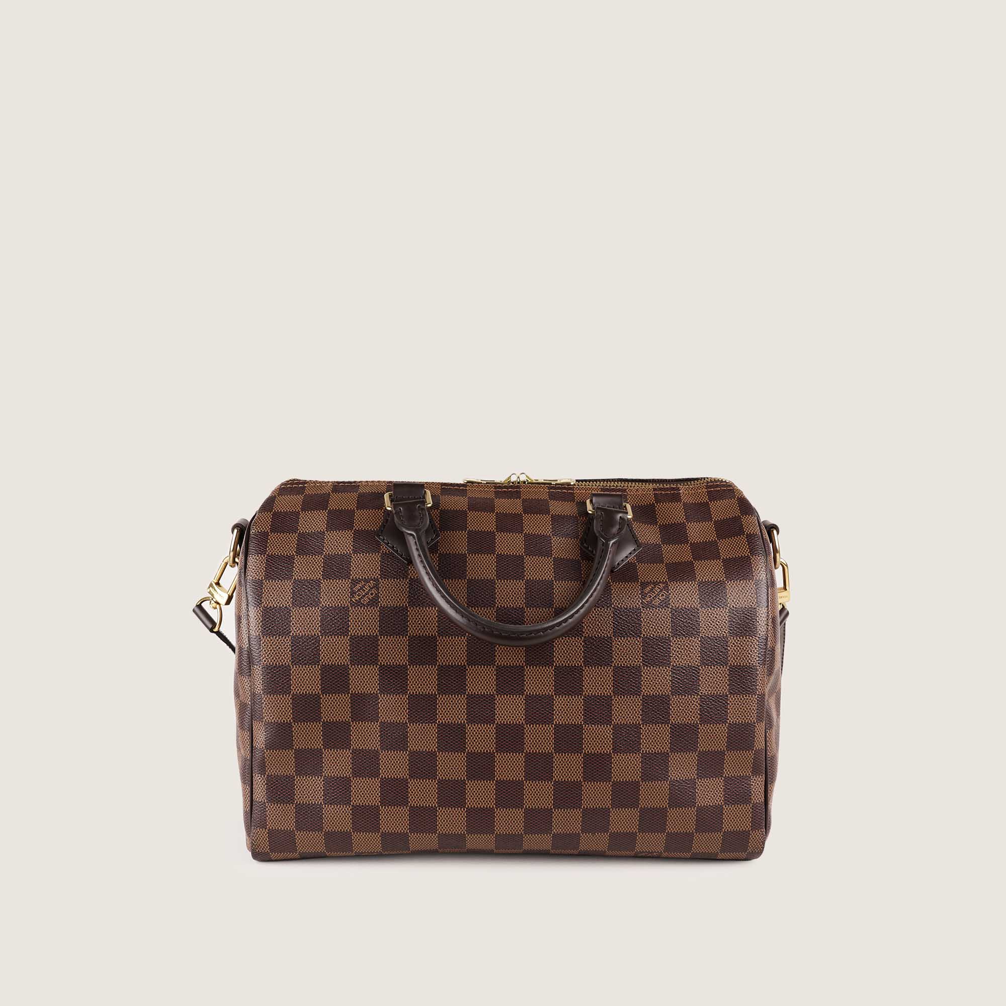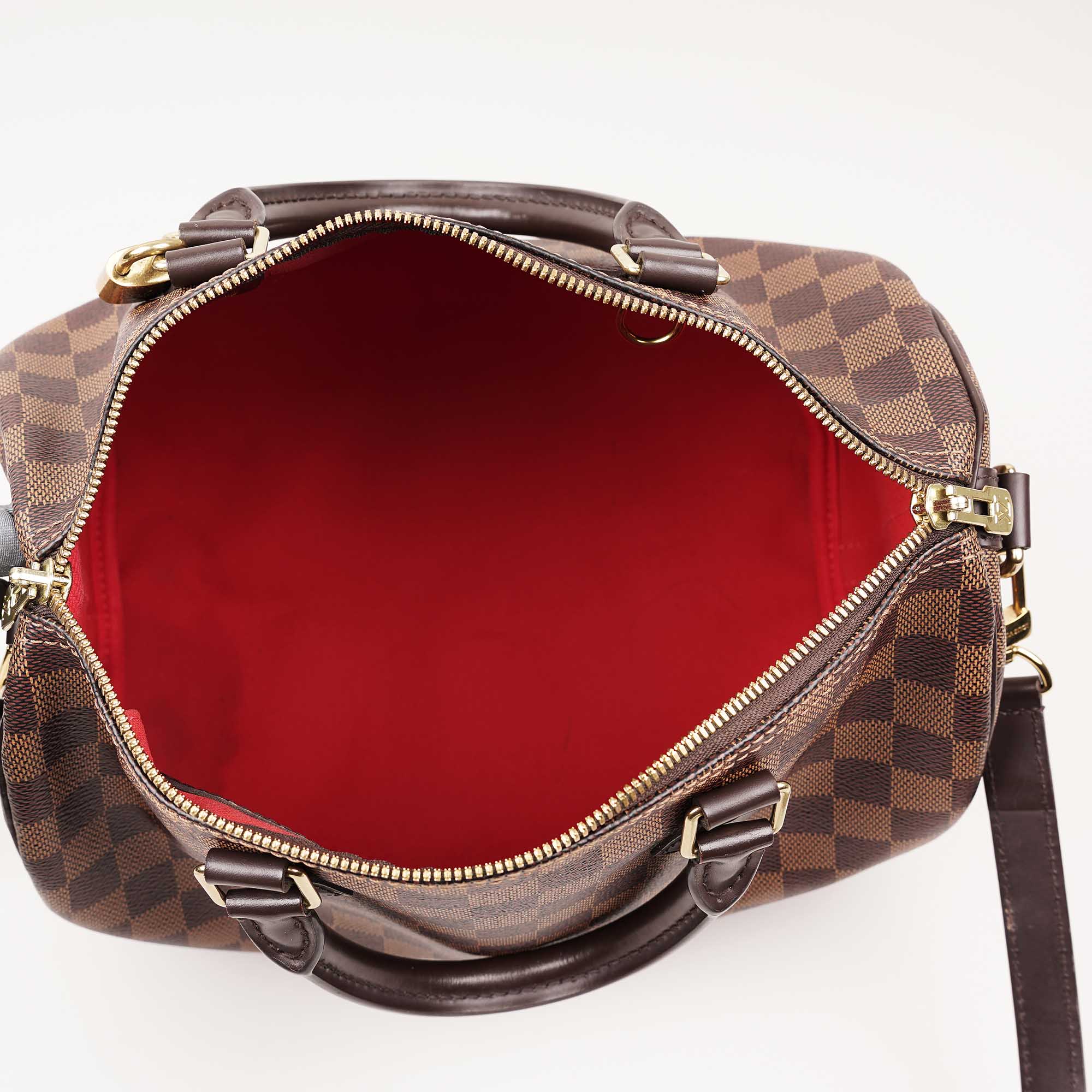 This is an authentic Louis Vuitton Speedy 30 Bandoulière Handbag in Damier Ebene Canvas.