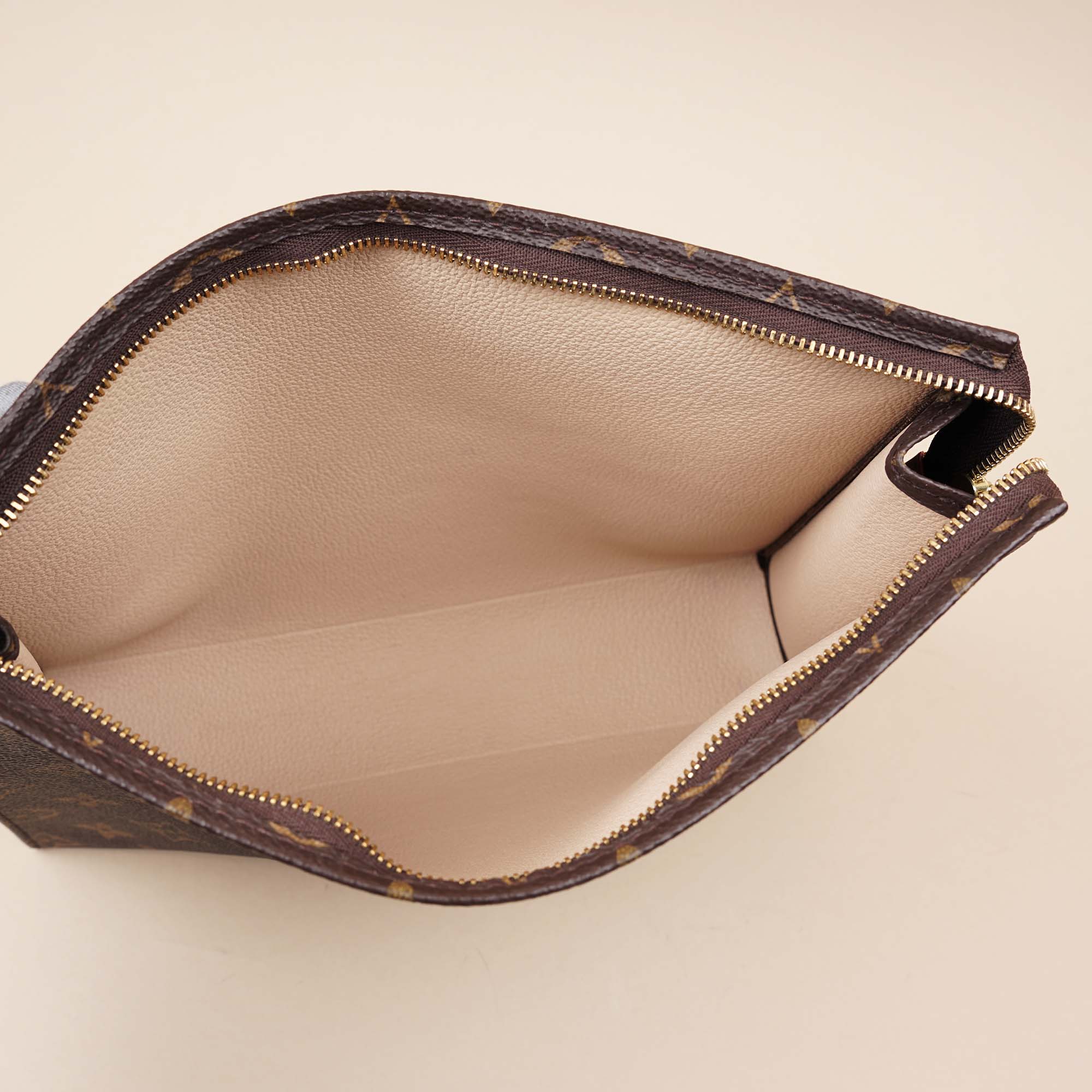 This Toilet Pouch is the perfect blend of style and functionality. Made from beautiful Monogram canvas. it features a washable interior lining and elegant cowhide-leather trim. The zipped closure keeps your belongings secure. while the gold-colored hardware adds a touch of sophistication. Practical and chic. it's the perfect accessory for any traveler. Don't miss out!