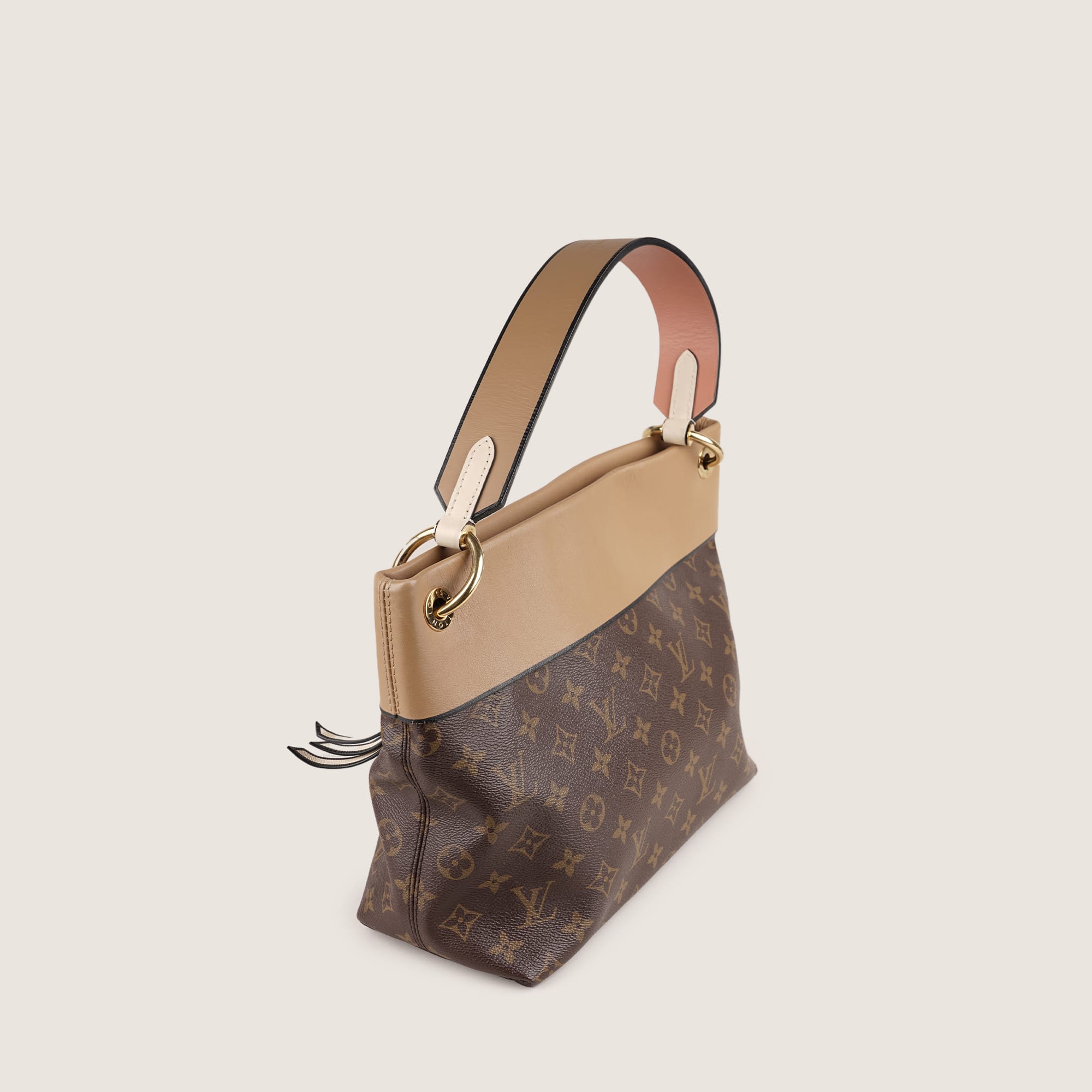 Classic brown Monogram-coated canvas meets soft cowhide leather for a lightweight. slouchy shoulder bag. The Louis Vuitton Tuileries Hobo Bag Monogram Canvas opens to a spacious interior with a zip pocket and slip pocket—ideal for keeping your essentials organized. Gold-tone hardware and a magnetic snap closure add polish. making this versatile hobo perfect for everyday carry. Don't miss out!