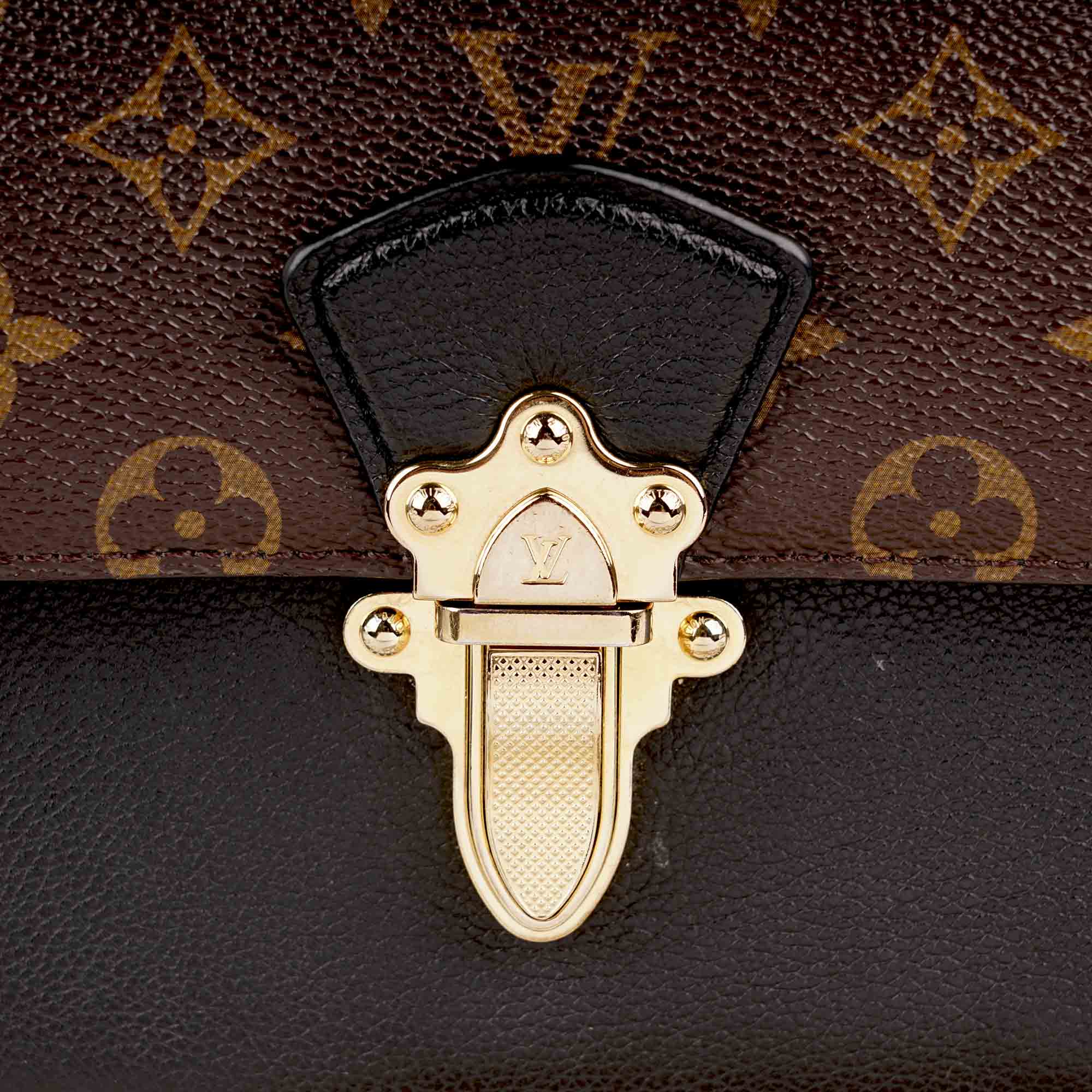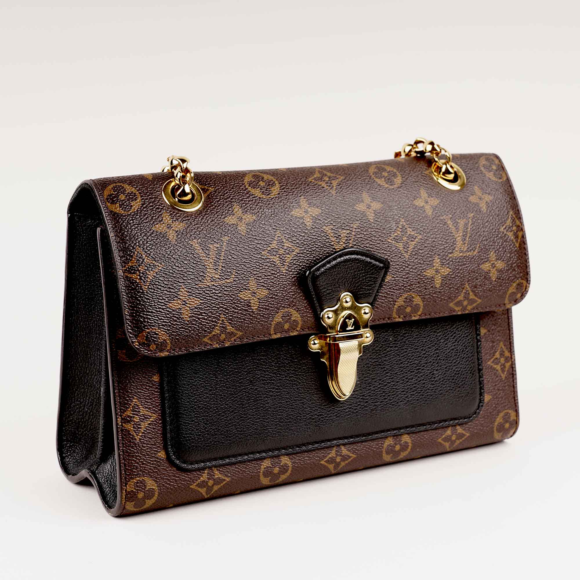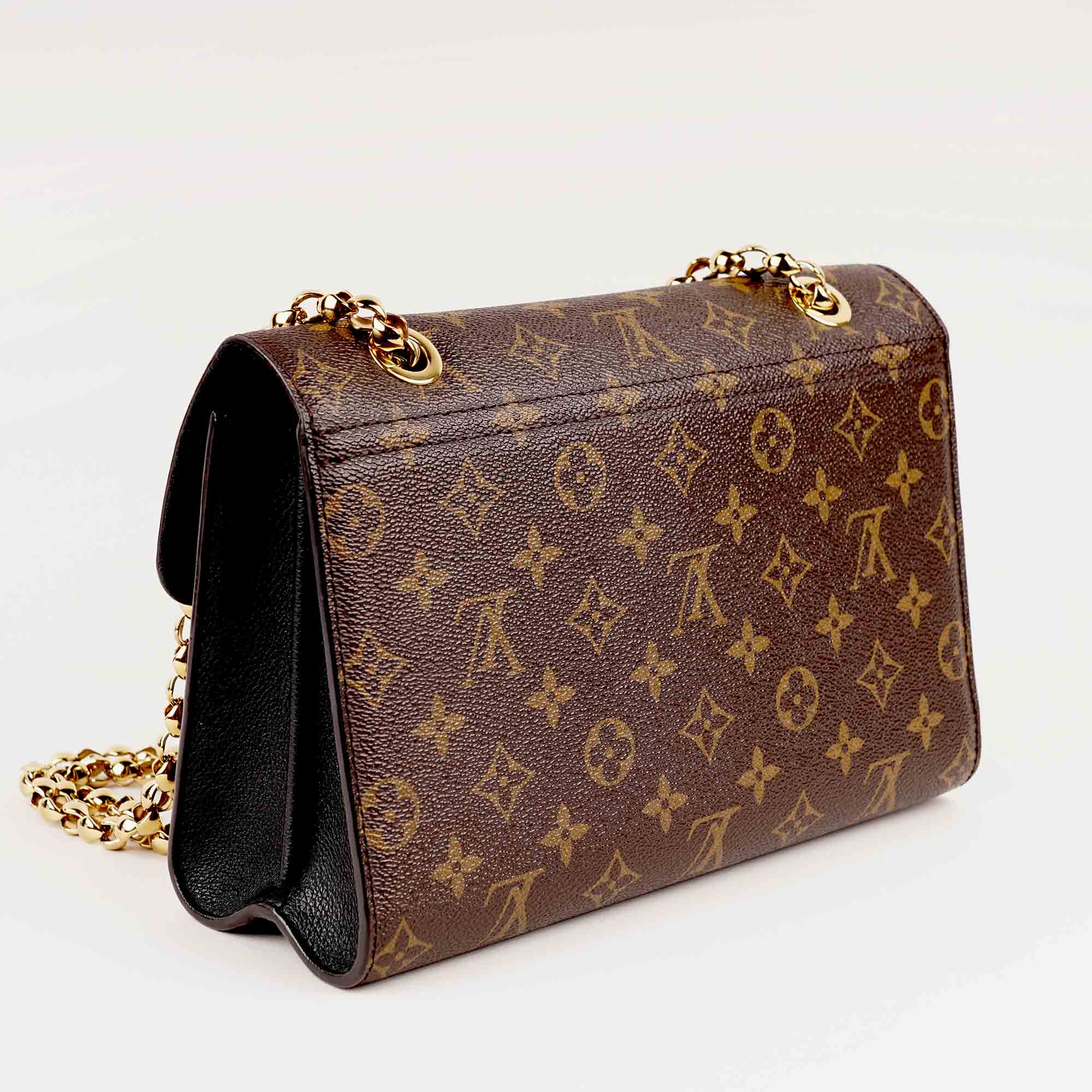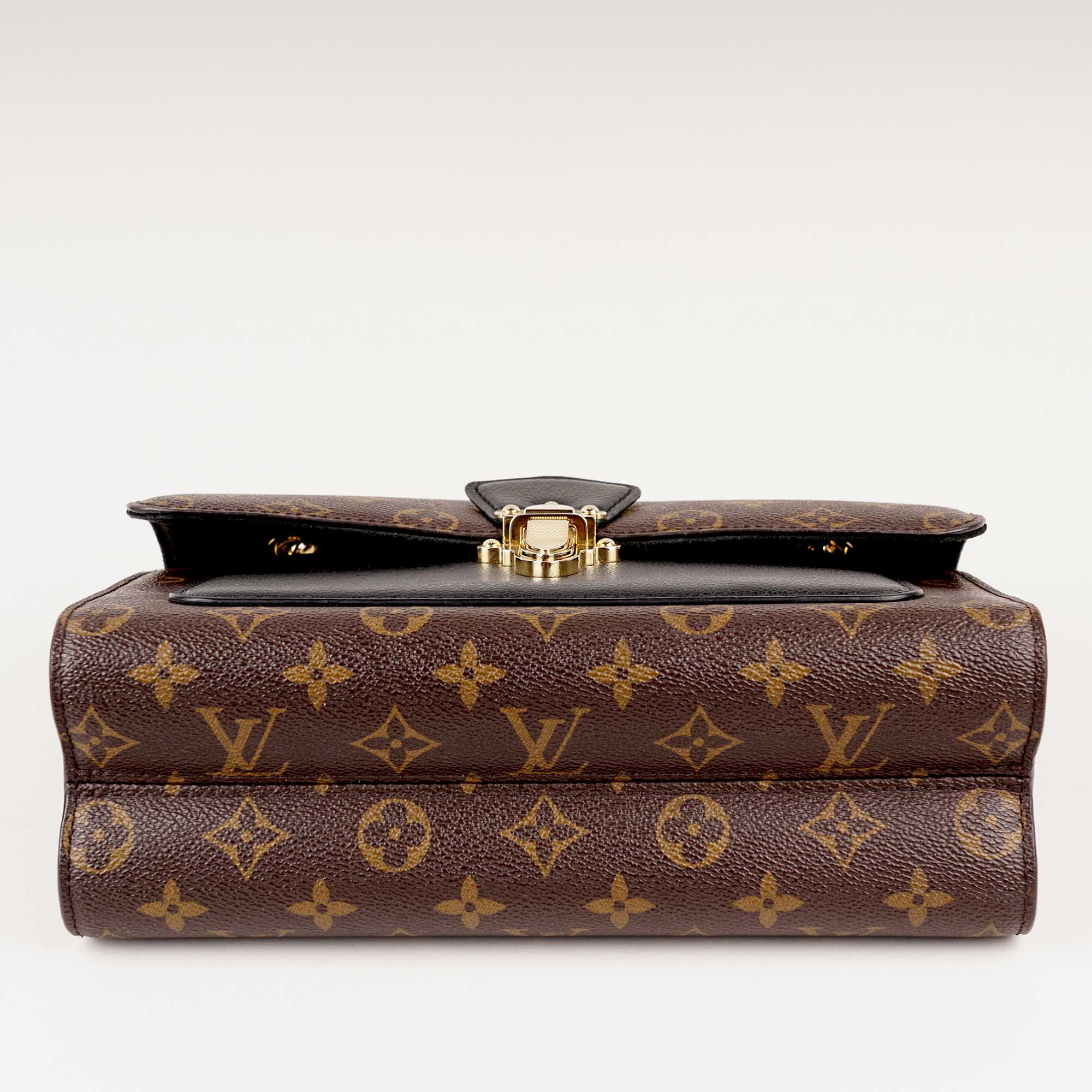 Crafted from Louis Vuitton's iconic Monogram canvas with smooth black calf leather trim and gold colored hardware. the Victoire is a refined shoulder bag that blends classic style with modern elegance.