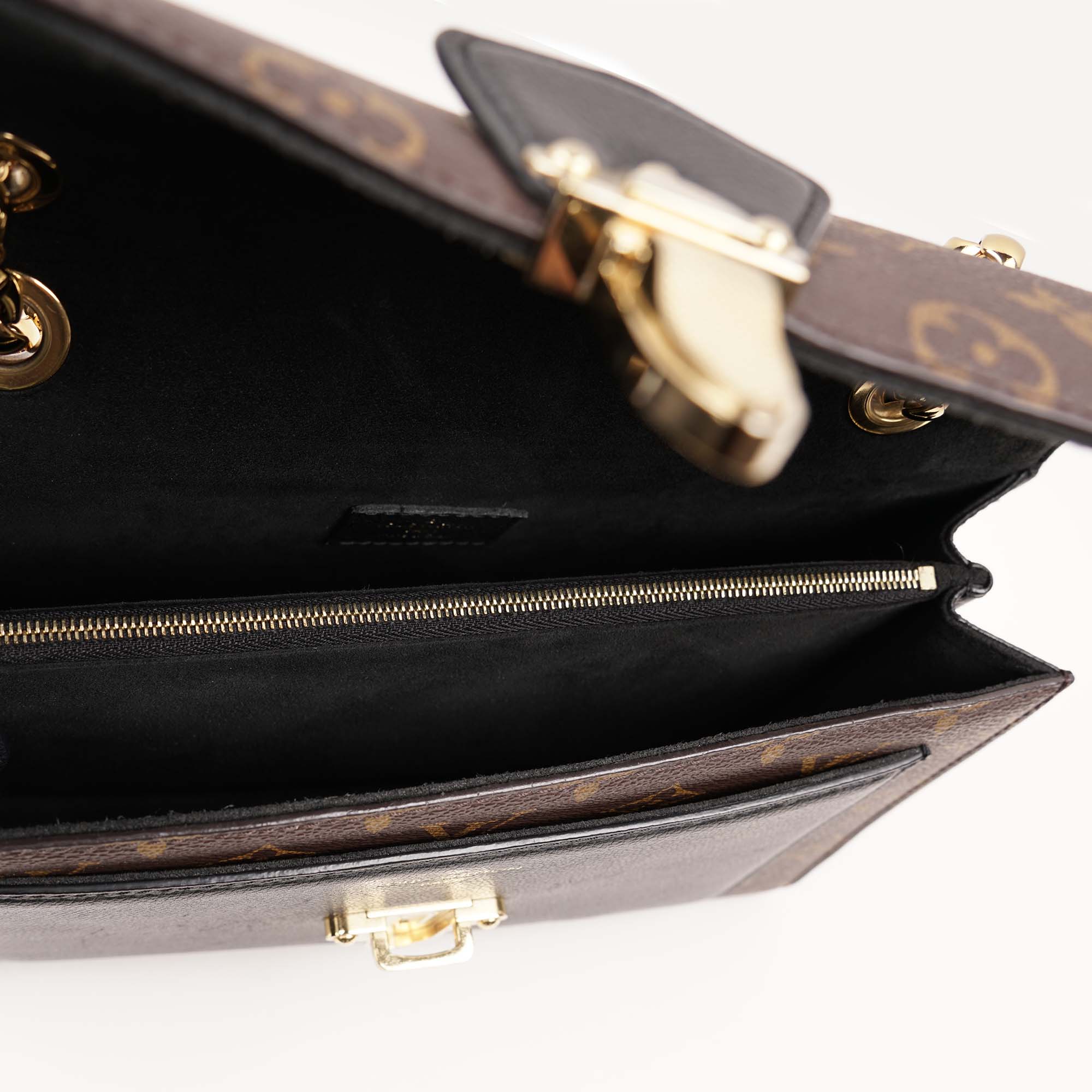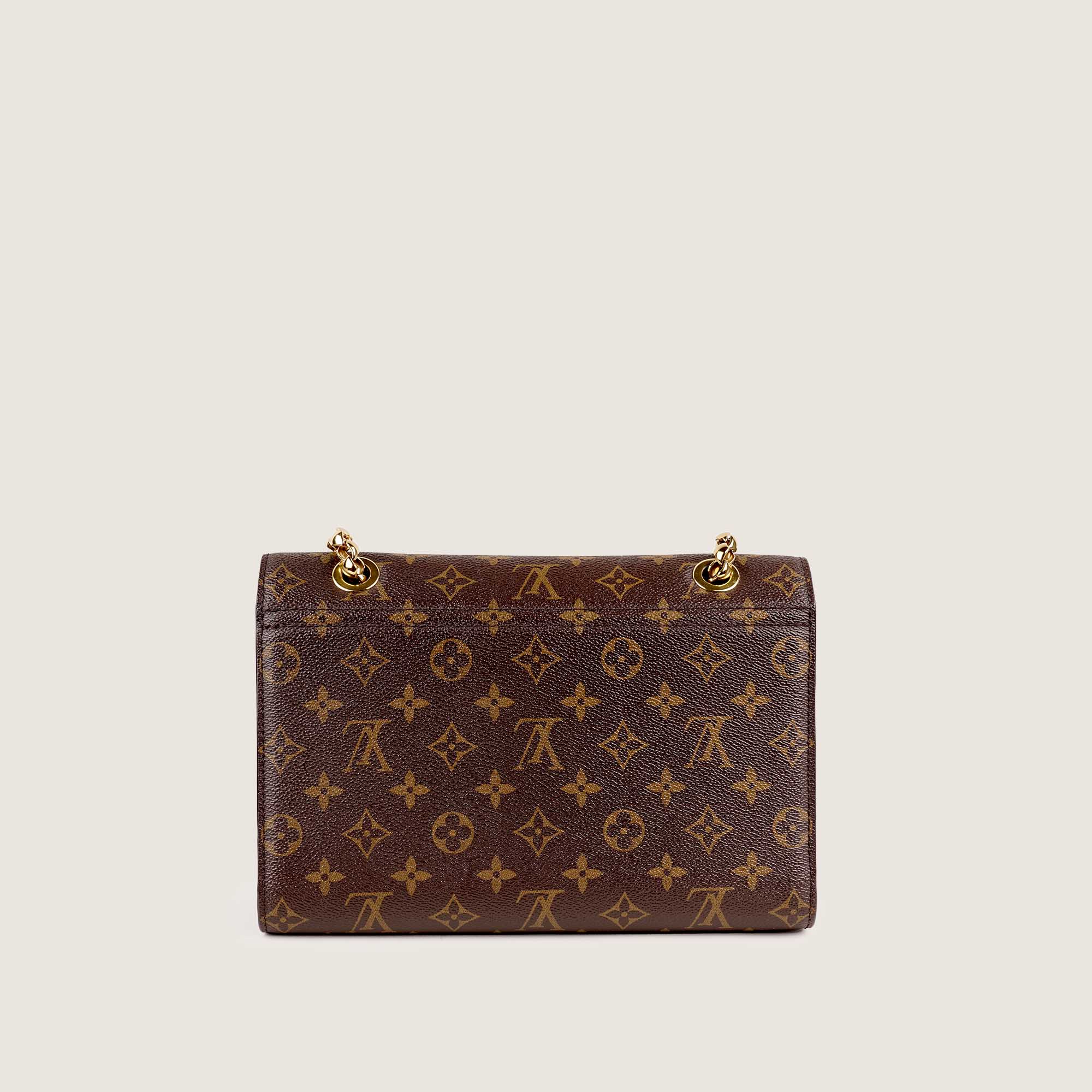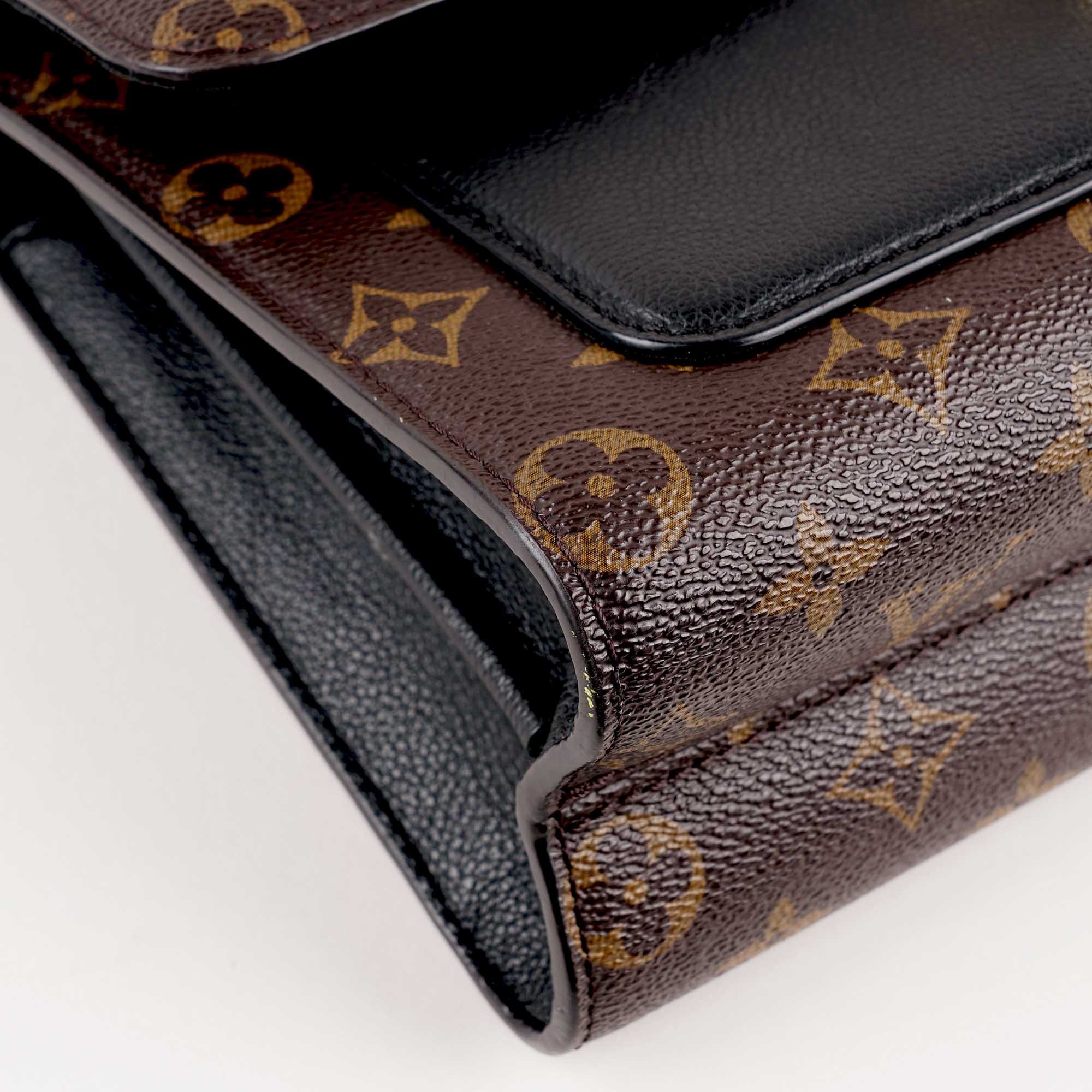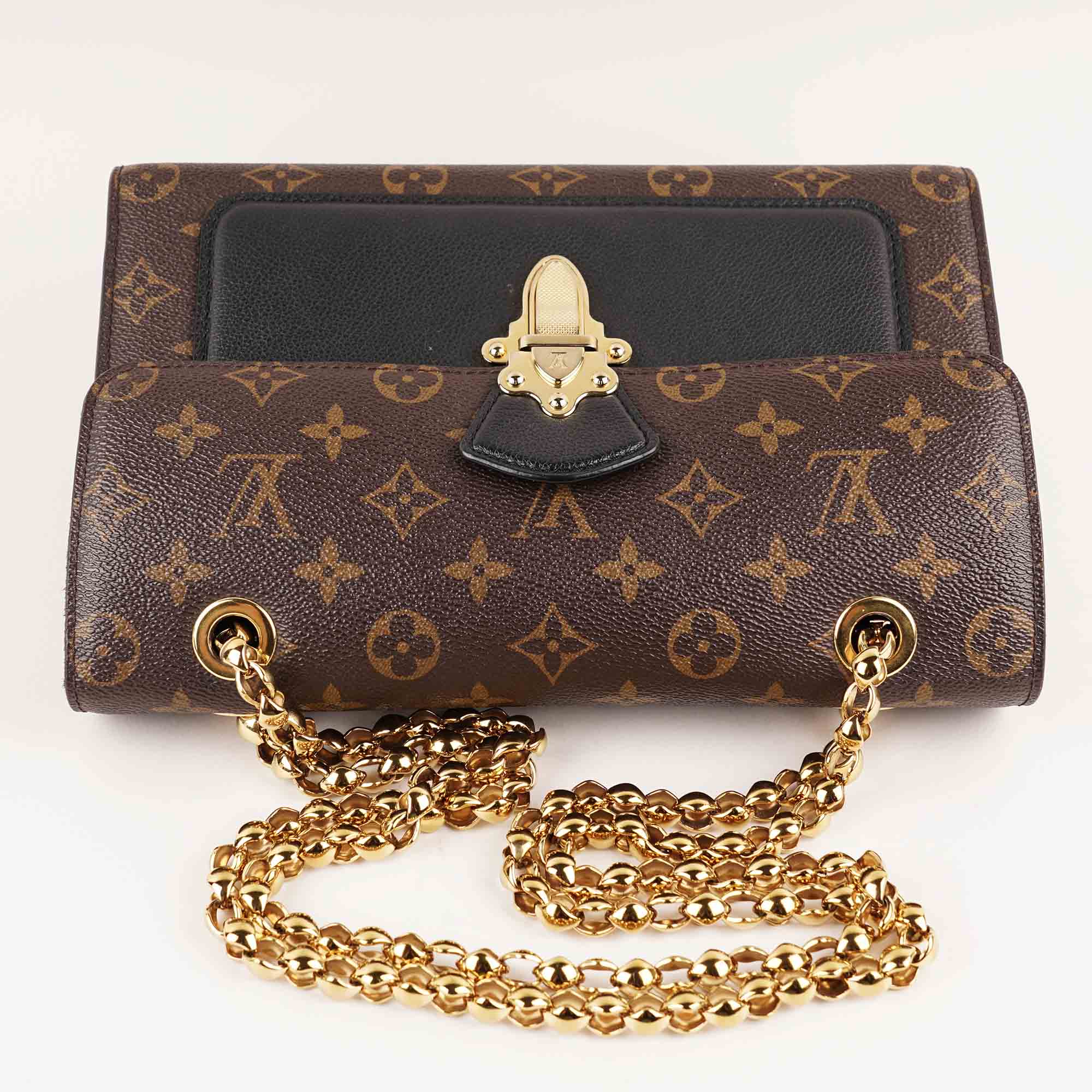 Crafted from Louis Vuitton's iconic Monogram canvas with smooth black calf leather trim and gold colored hardware. the Victoire is a refined shoulder bag that blends classic style with modern elegance.