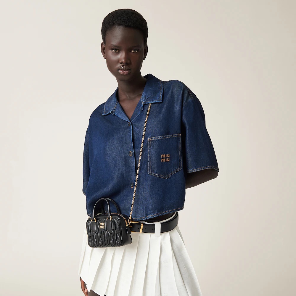 Miu Miu re-examines classic elements. plays with iconic shapes. and re-conceives functions. $ This mini Arcadie handbag is made of Miu Miu's iconic Matelass茅 soft sheepskin leather. It is a versatile handbag with a modern and elegant atmosphere. suitable for day and night. Exquisite color details make this handbag more beautiful.