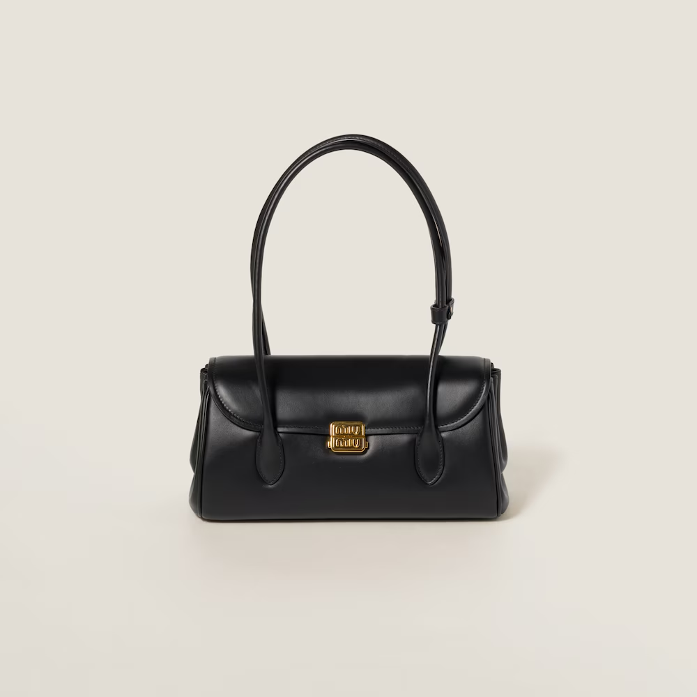 This shoulder bag continues the classic design. the gold-plated metal letter logo adds contemporary flavor. and it is unique with light and filled leather design. With elegant front flip and unique double handles. it shows the contrast between innovative experimental spirit and classic elements. and has distinctive Miu Miu characteristics.