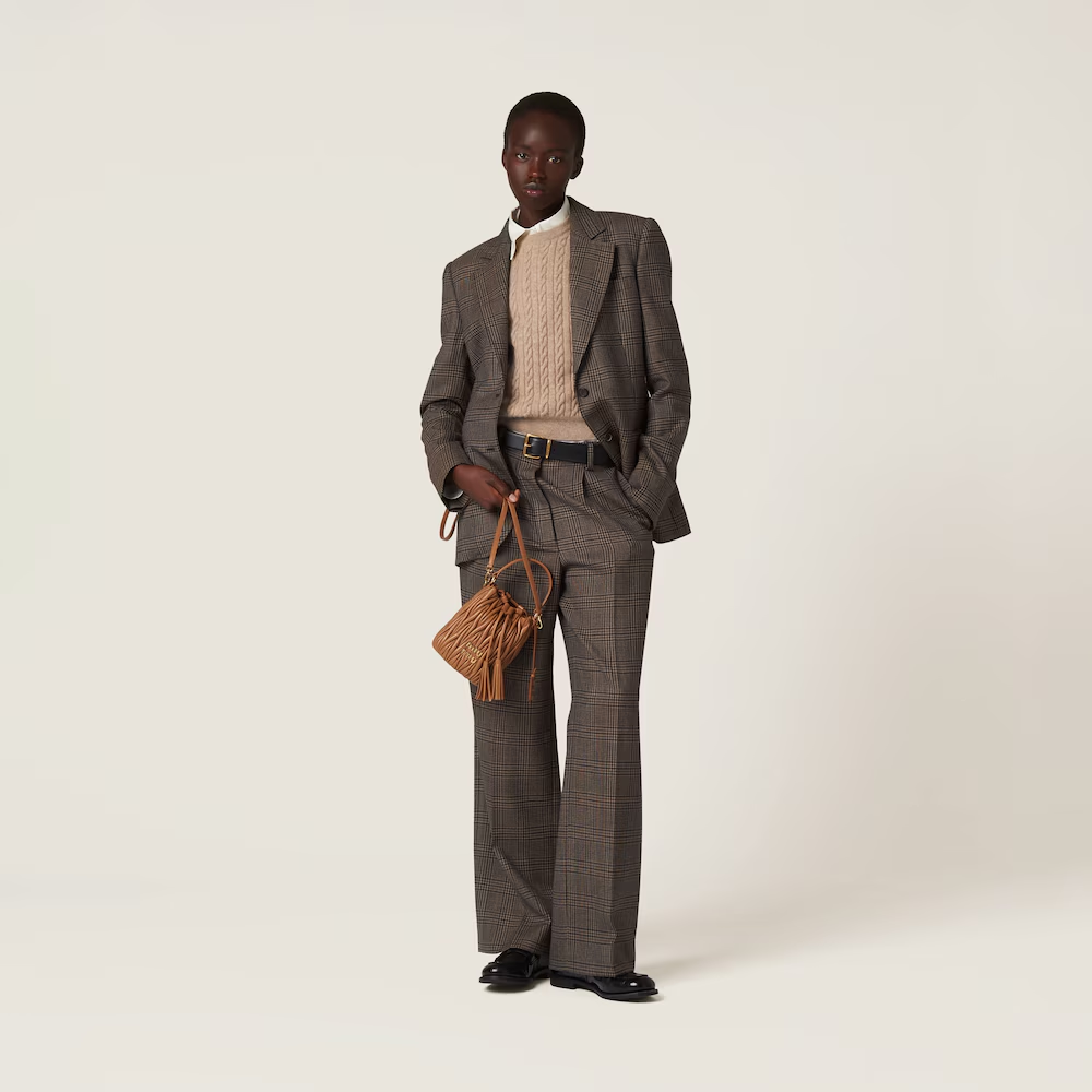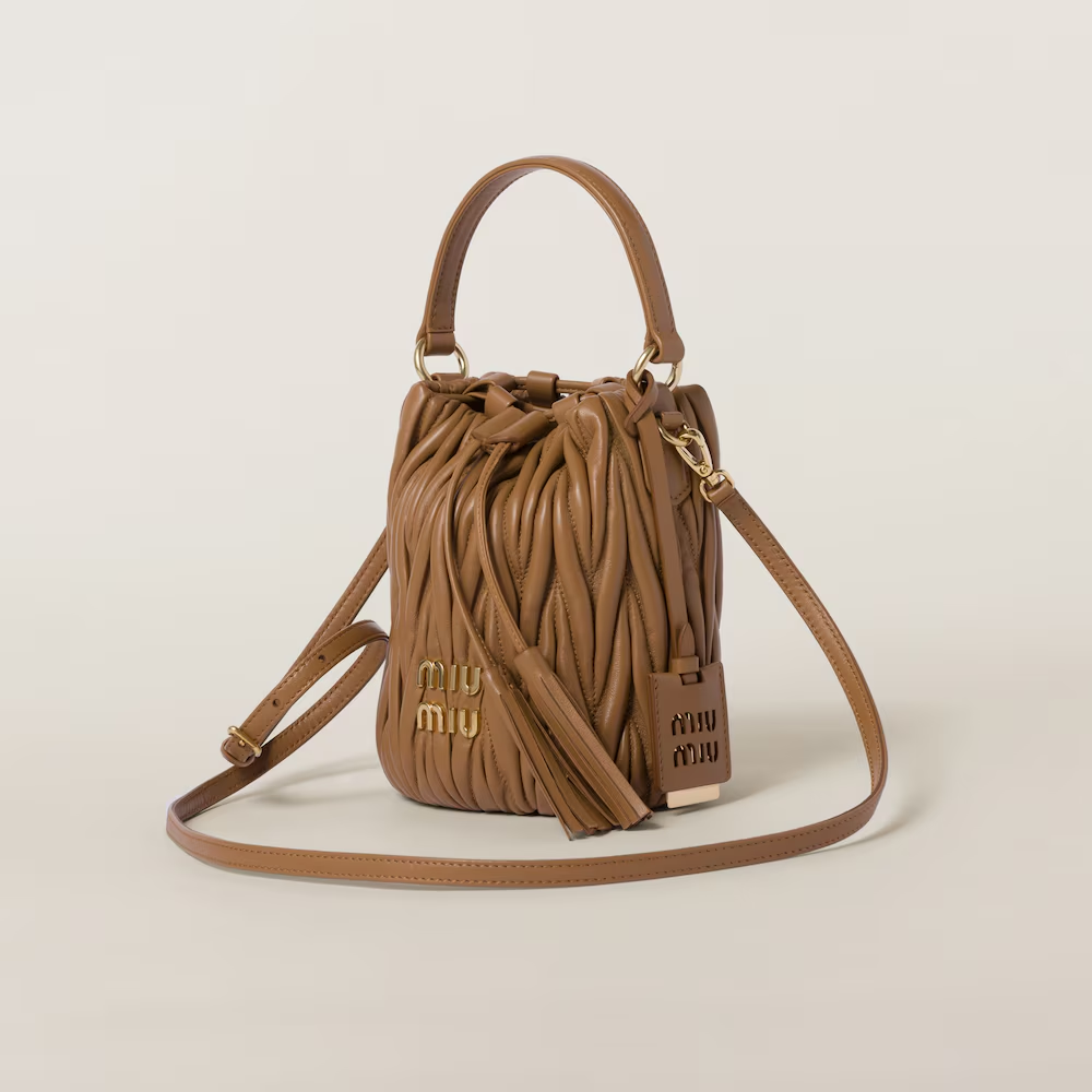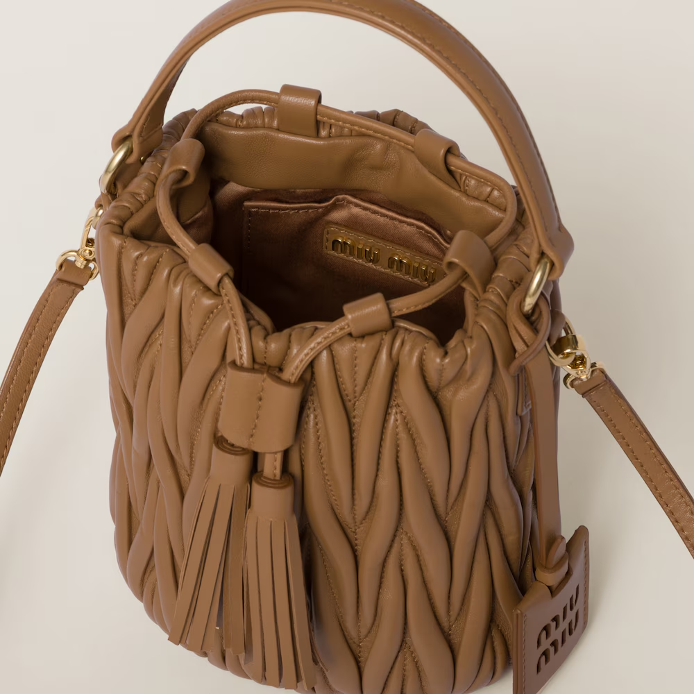 MIUMIU Matelass茅 soft sheepskin leather bucket bag Color:Caramel color