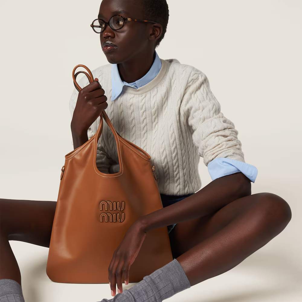 MIUMIU large Aventure Nappa leather handbag Color: Heather wood color