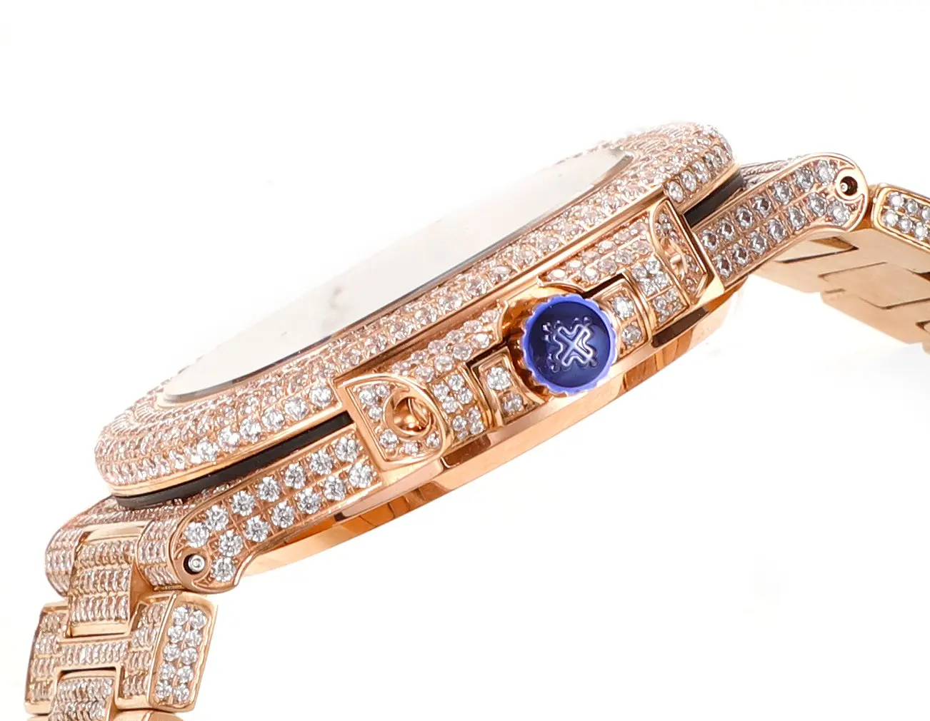 – **Dial:** Diamond-studded dial. showcasing a luxurious full diamond setting