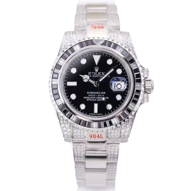 Experience unparalleled luxury with this custom Rolex Submariner. featuring a black diamond-set design. Crafted from 904L stainless steel with Swarovski crystals. it’s the epitome of exclusivity and sophistication.