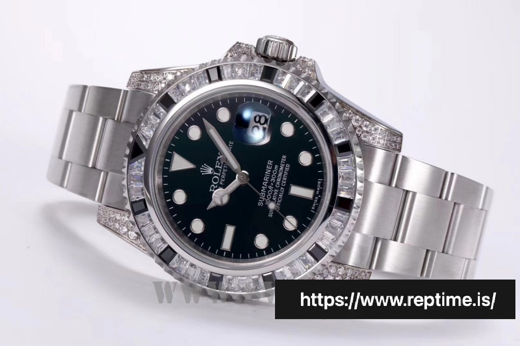 – **Diamond-Set Bezel and Bracelet:** Both the bezel and bracelet are adorned with diamonds. enhancing the watch’s opulence.