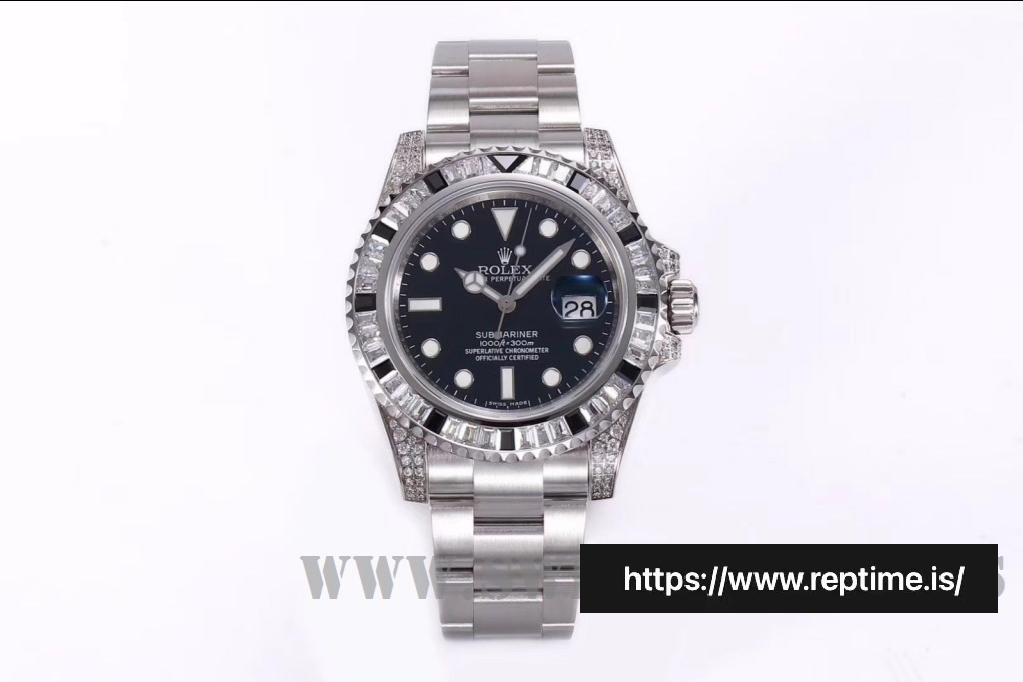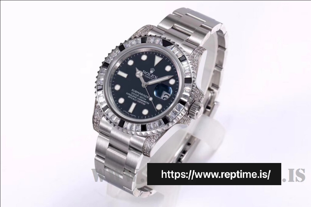 – **Custom Design:** This Rolex Submariner features a unique custom design with black and diamond elements. setting it apart from standard models.