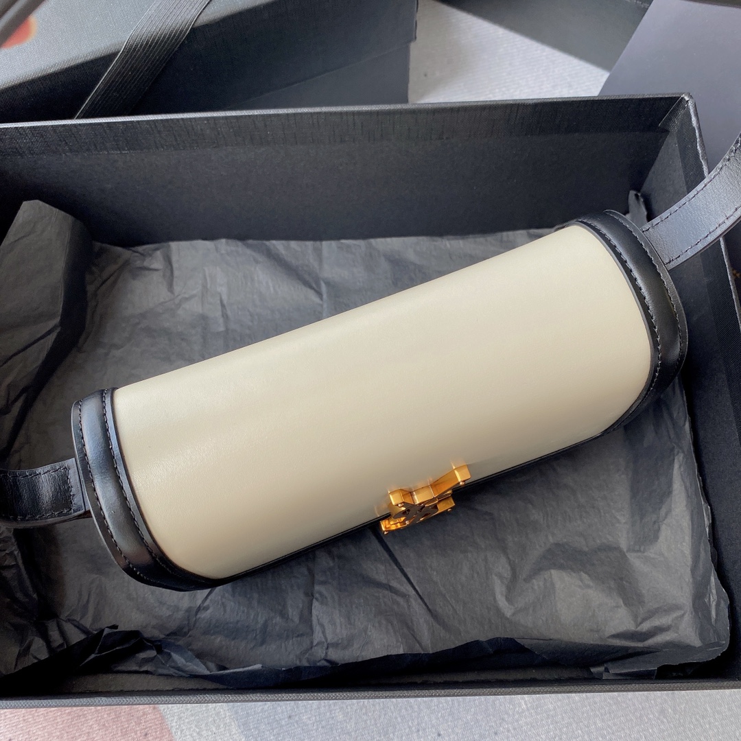 BORSA SATCHEL MONOGRAM SAINT LAURENT PICCOLA CON PATTA SUL DAVANTI. CARATTERIZZATA DA UNA CHIUSURA IN METALLO YSL GIREVOLE E DA UNA TRACOLLA REGOLABILE.