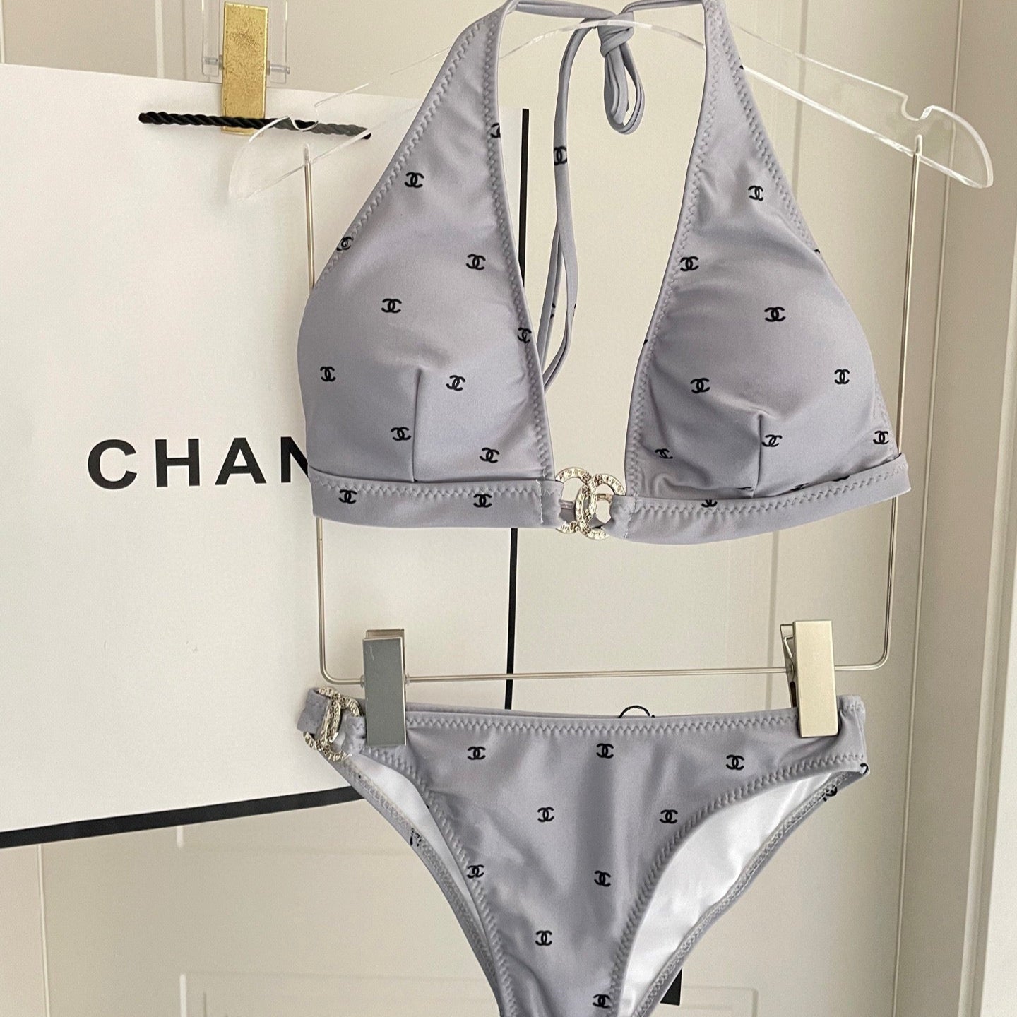 CC BIKINI SWIMSUIT SET IN GREY PRINTED LOGO 629237