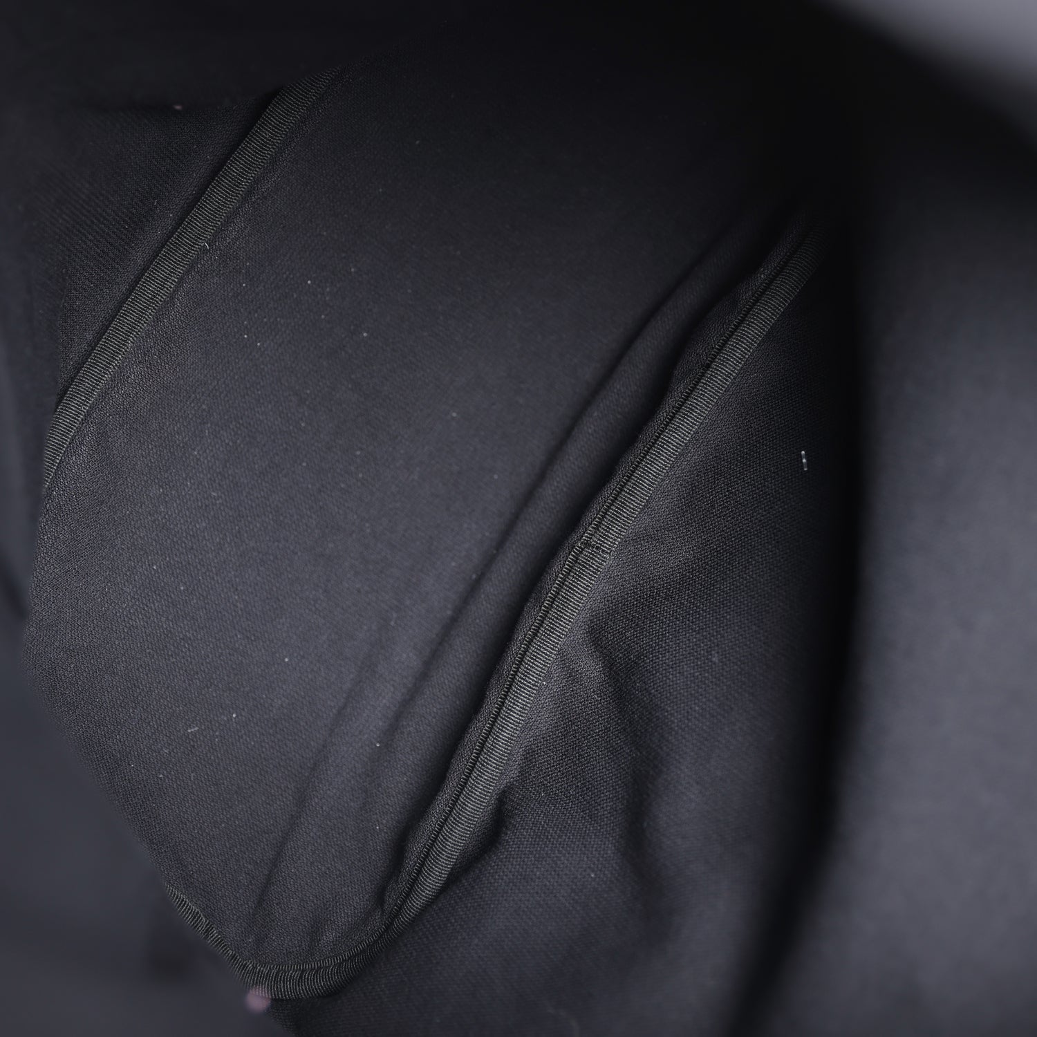 The interior is lined in a black cotton fabric and has one open pocket on the rear wall.