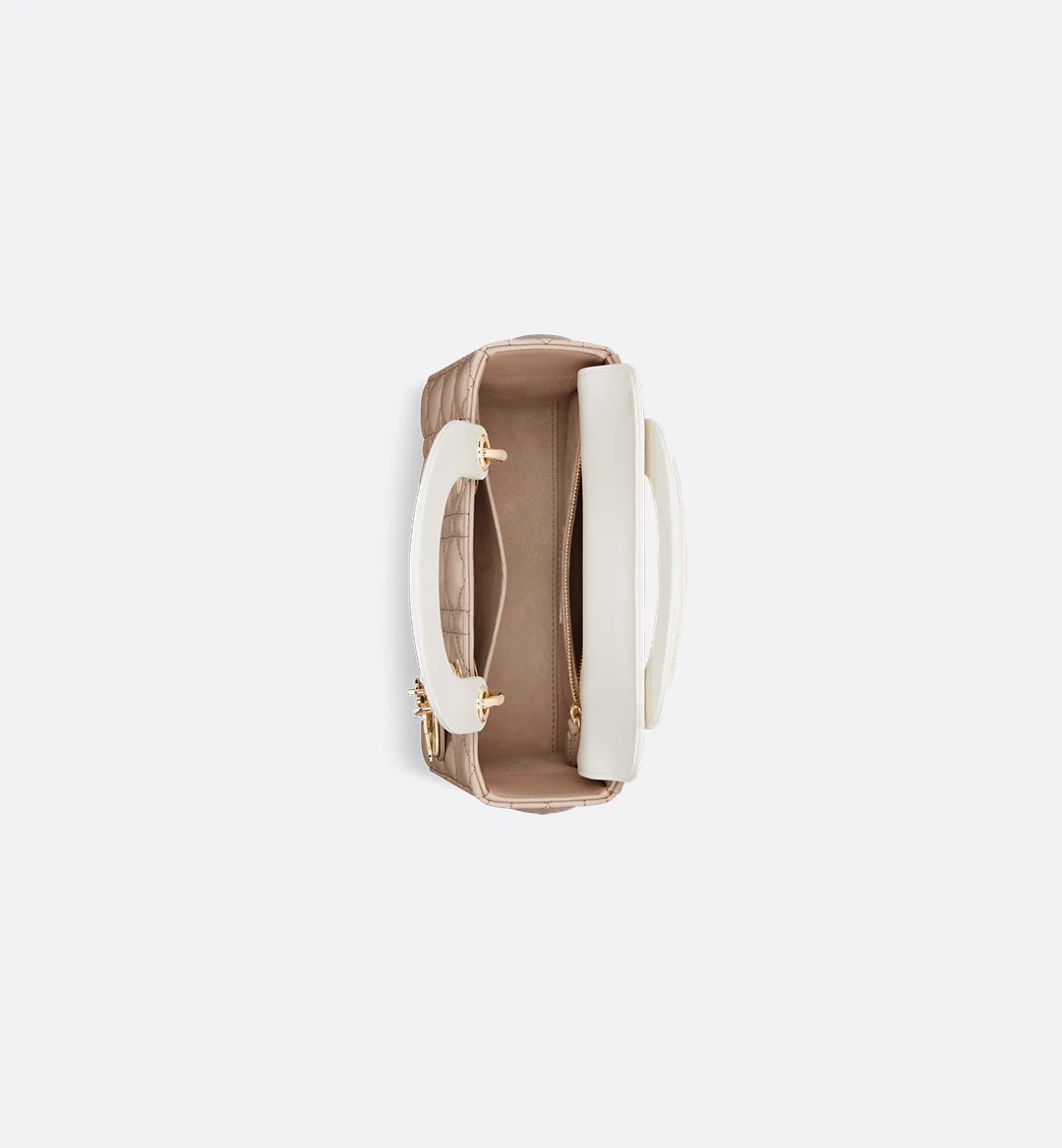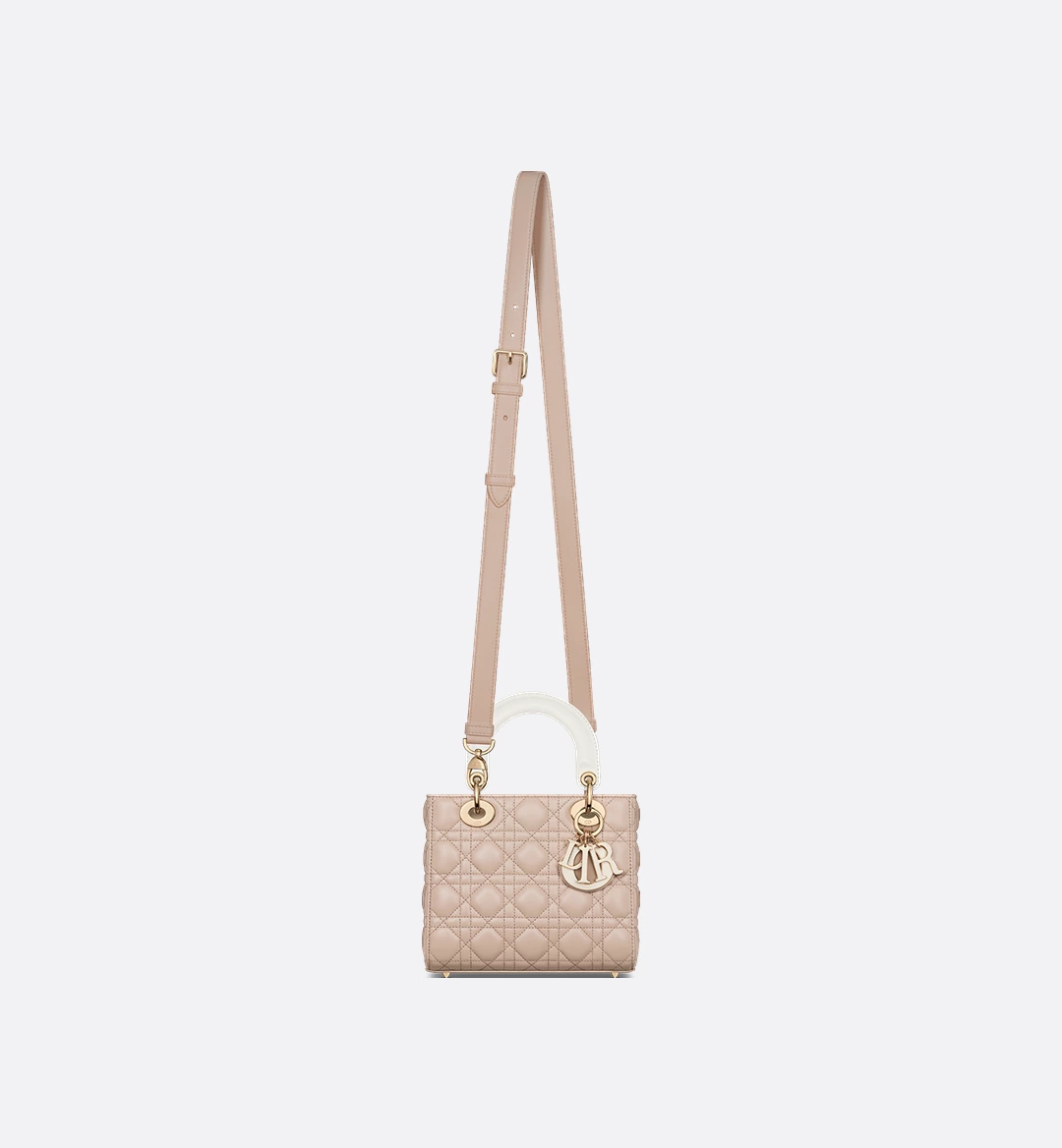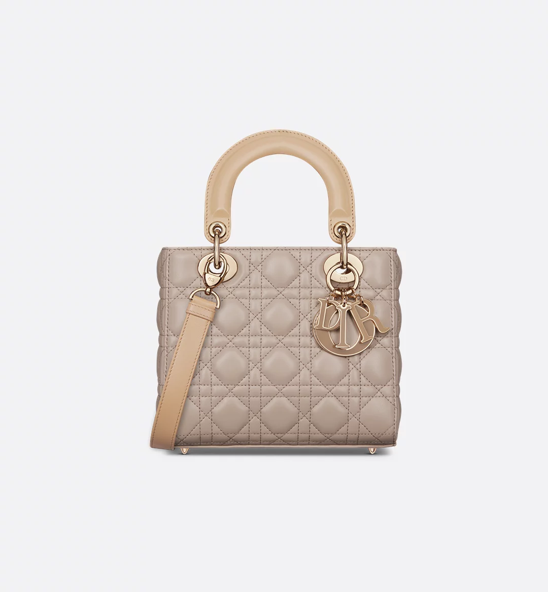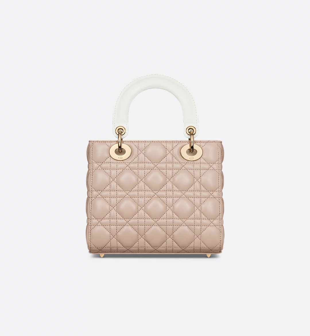 Description: This Lady Dior handbag embodies Dior's profound insight into elegance and beauty. Made of beige and biscuit-colored sheep leather. it uses rattan grain to make eye-catching quilting texture. and the fashionable and elegant design is enduring. The D.I.O.R pendant is decorated with enamel that matches the tone of the top handle. adding a touch of agility to the exquisite outline. Small style. with detachable leather shoulder straps. can be carried or slung.
