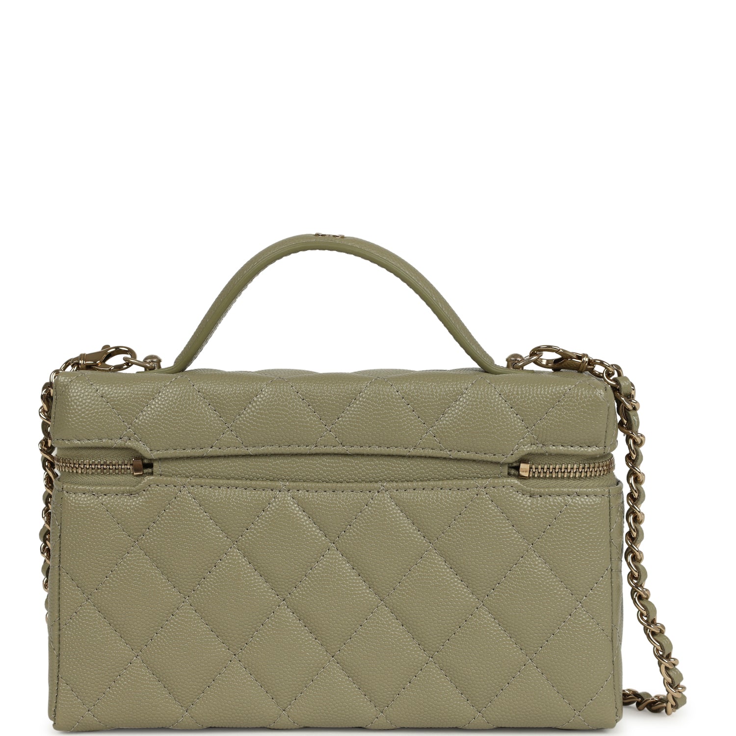 • Chanel Trendy Top Handle Long Vanity Case with Chain Khaki Caviar Light Gold Hardware