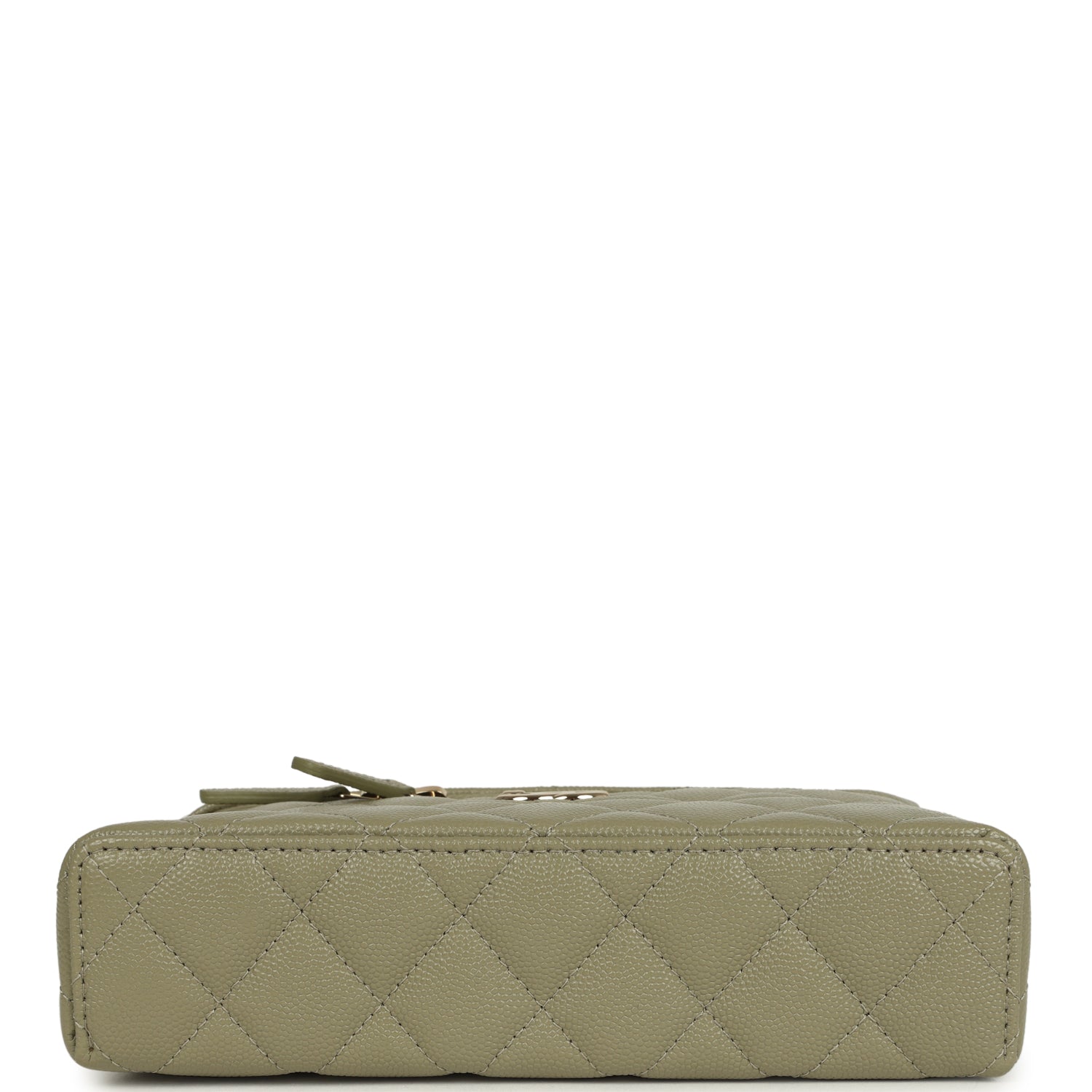 Chanel Trendy Top Handle Long Vanity Case with Chain Khaki Caviar Light Gold Hardware