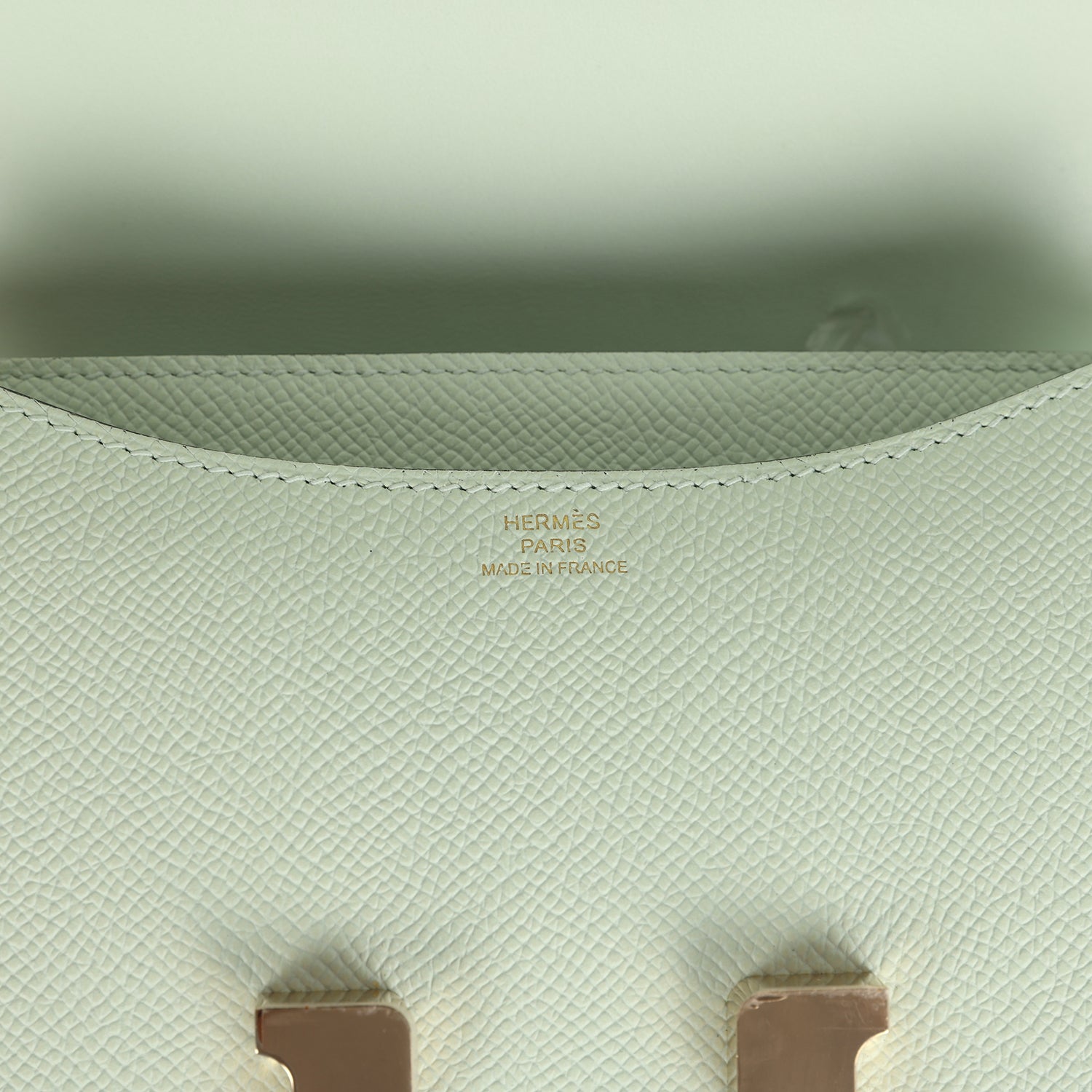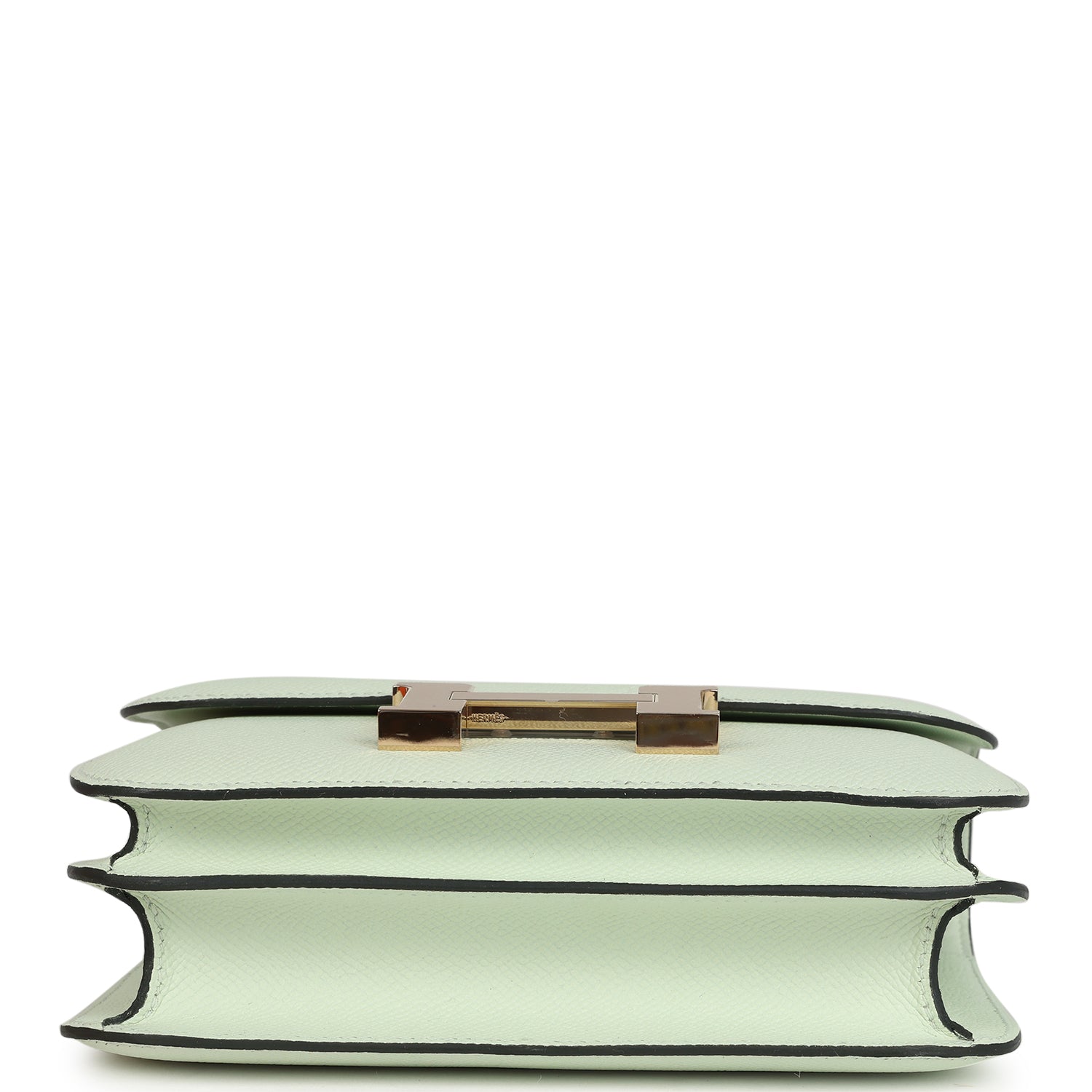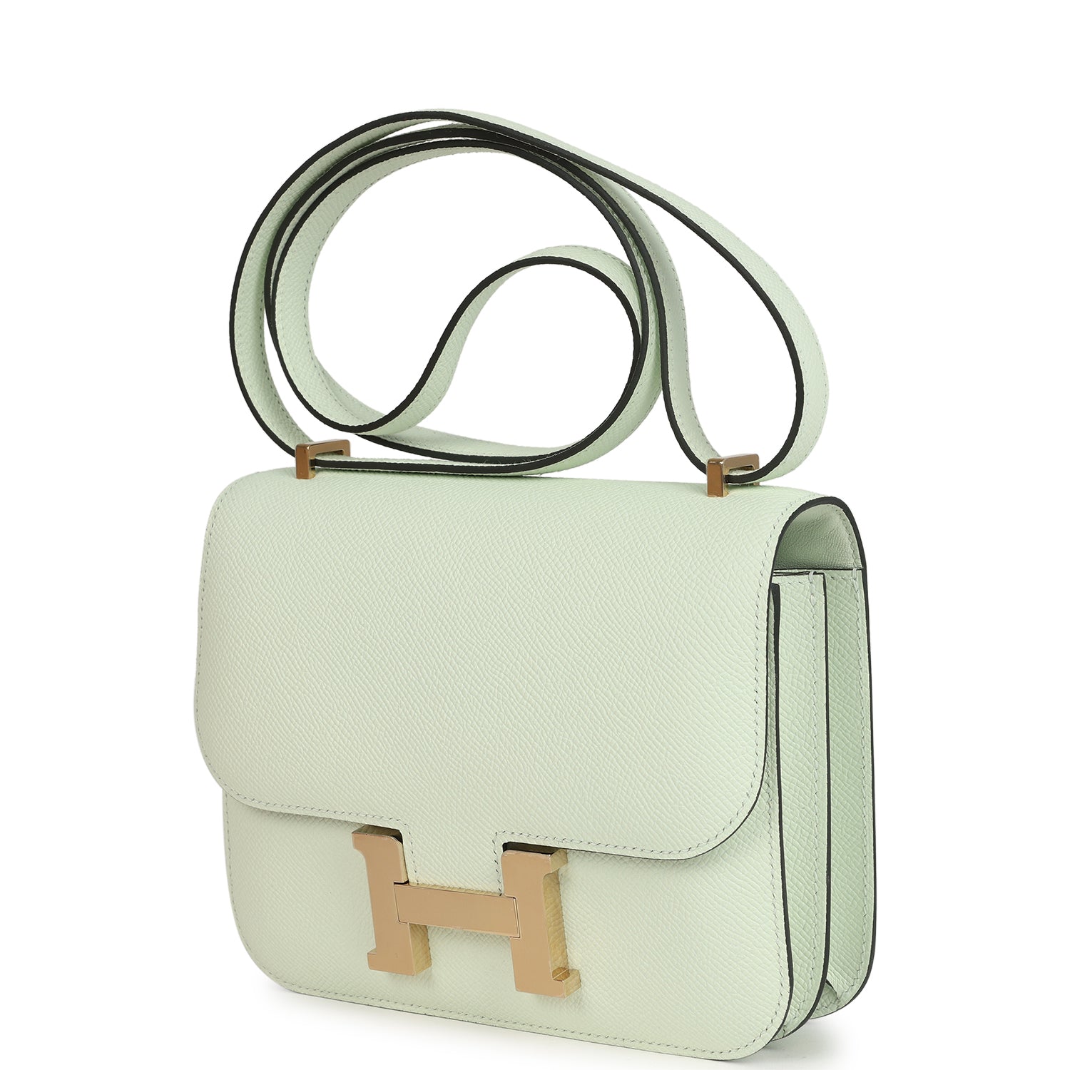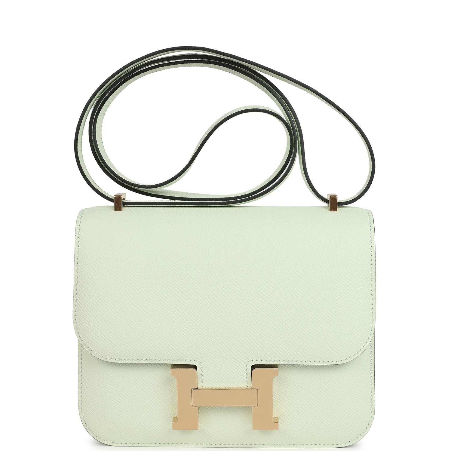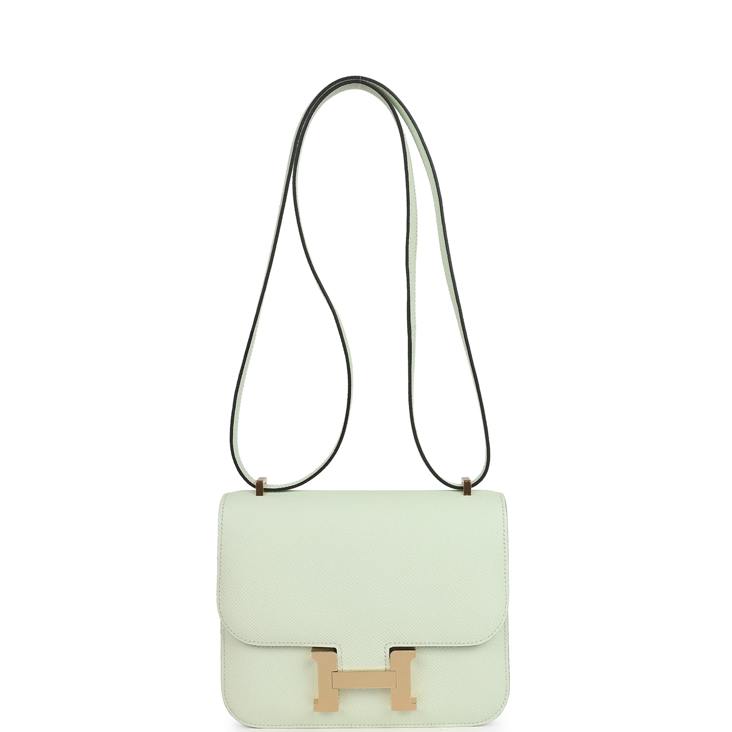 This Constance 1-18. is in Vert Fizz epsom with palladium hardware and features tonal stitching. a "H" snap lock closure. and an adjustable shoulder strap.