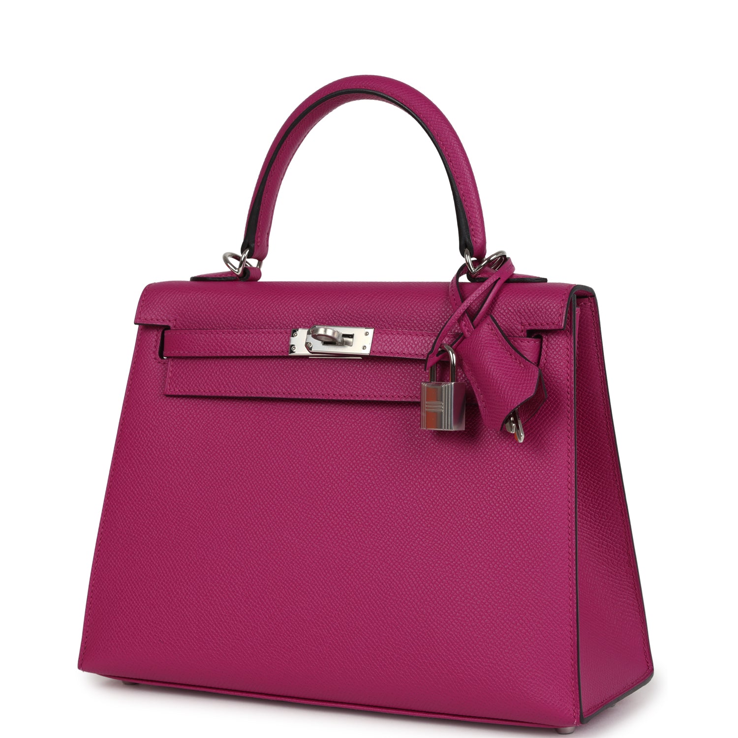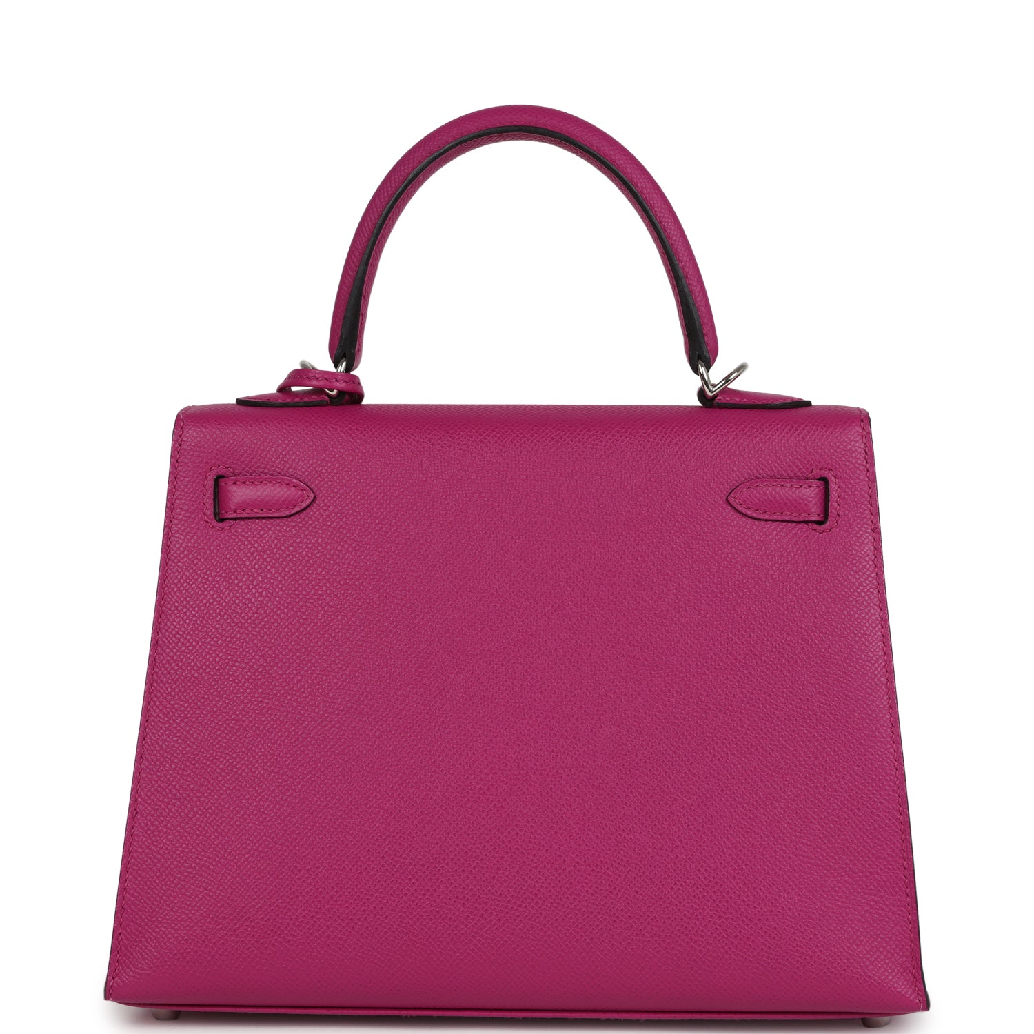 • Hermes Kelly Sellier 25 Rose Pourpre Epsom Palladium Hardware