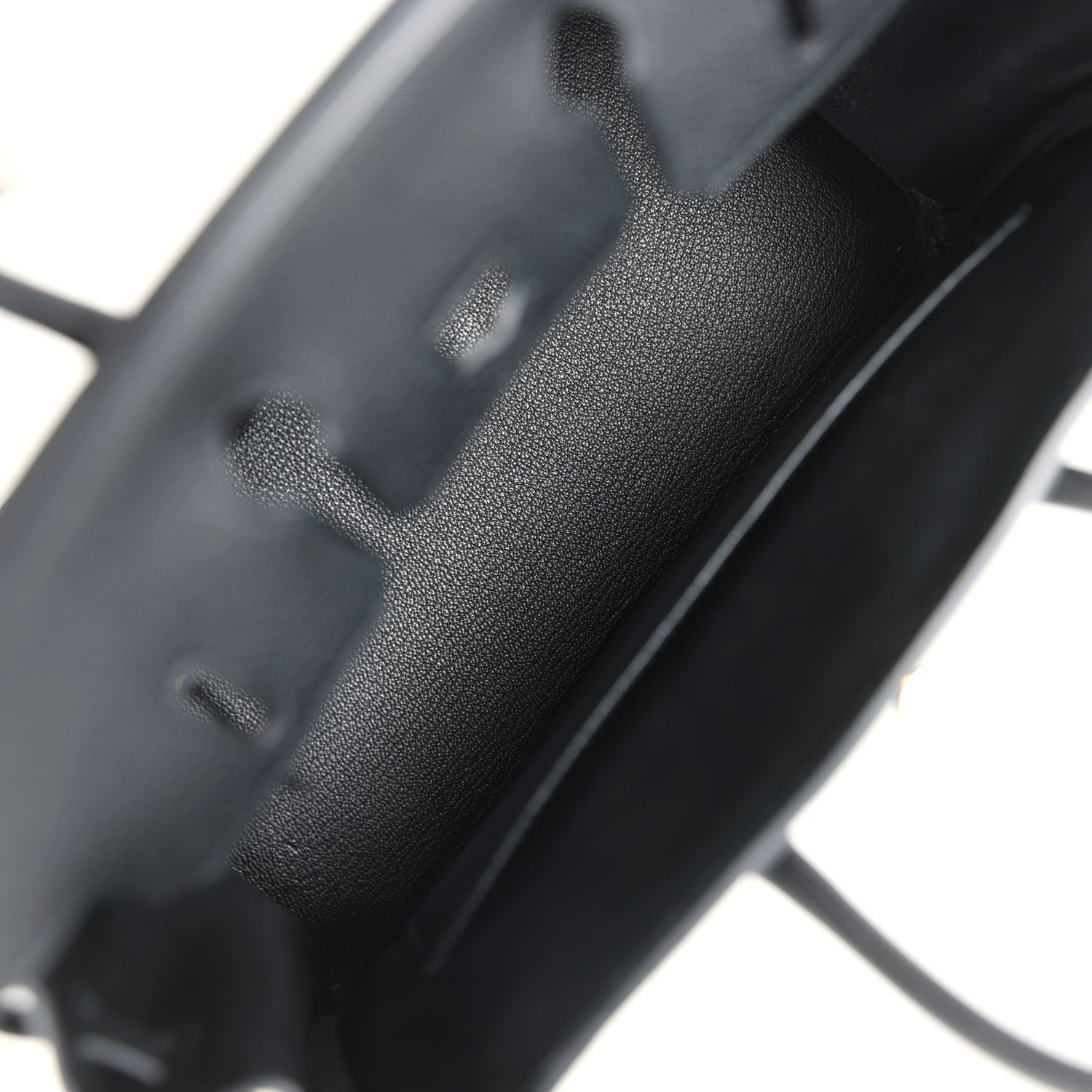 The interior is lined with Black chevre and has a zip pocket with an Hermes engraved zipper pull and an open pocket on the opposite side.